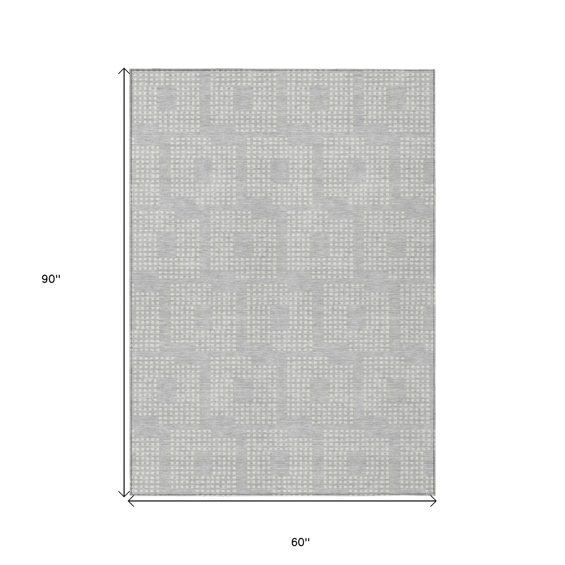 Tabselect Home Line 5' X 8' Silver And Ivory Geometric Washable Indoor Outdoor Area Rug