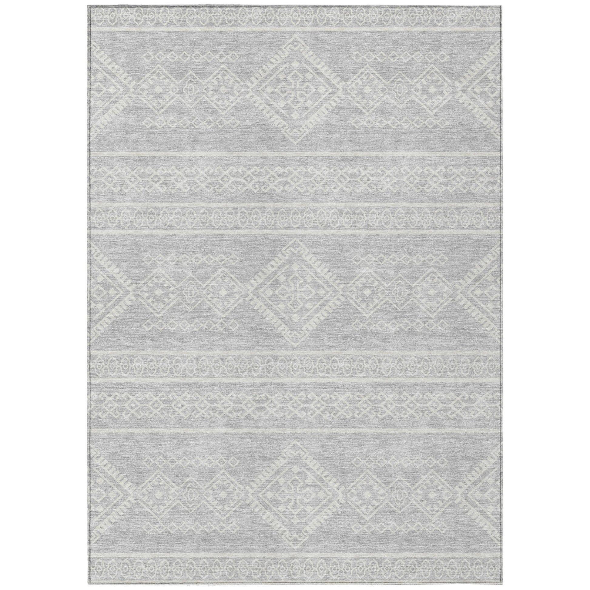 Tabselect Home Line 5' X 8' Silver And Ivory Southwestern Washable Indoor Outdoor Area Rug