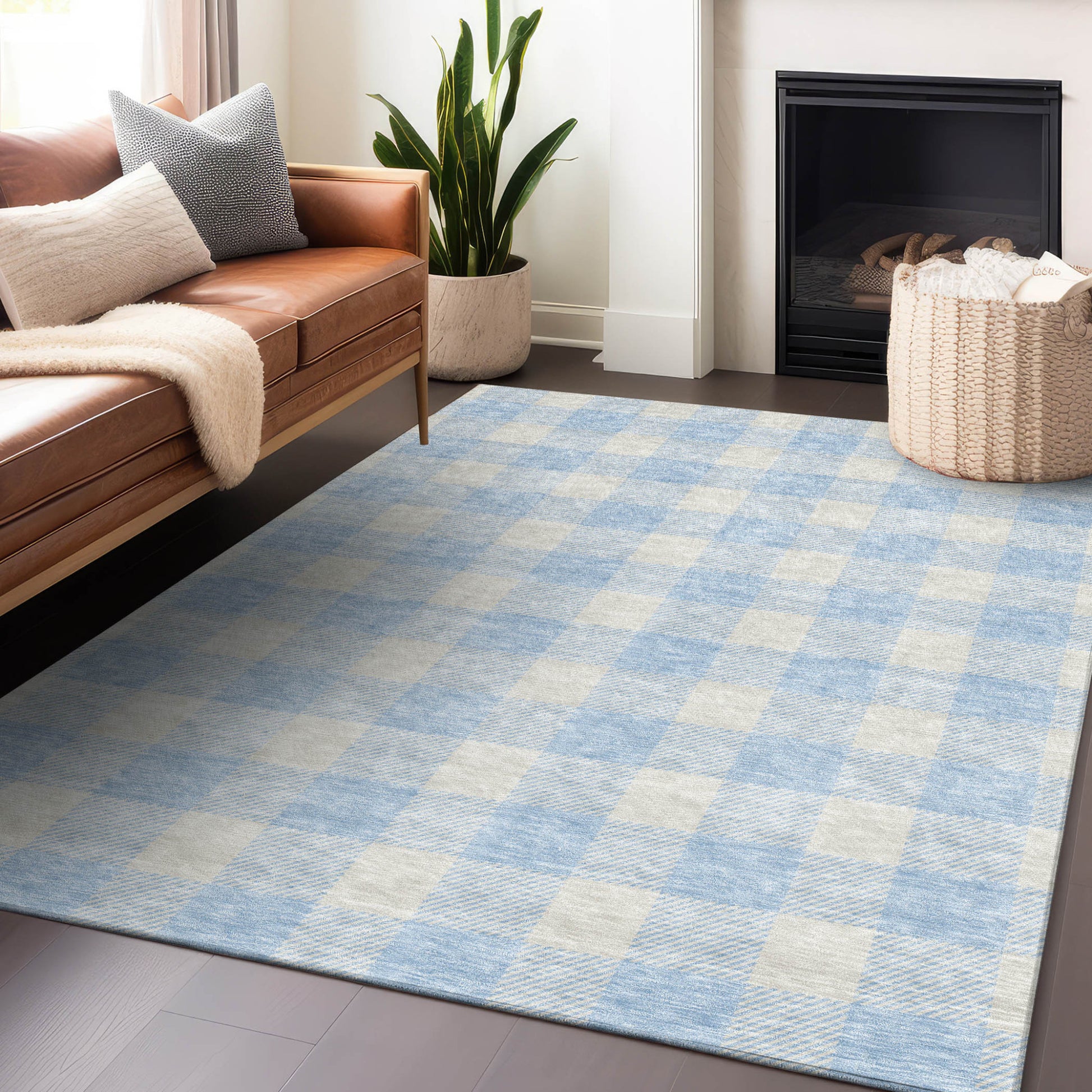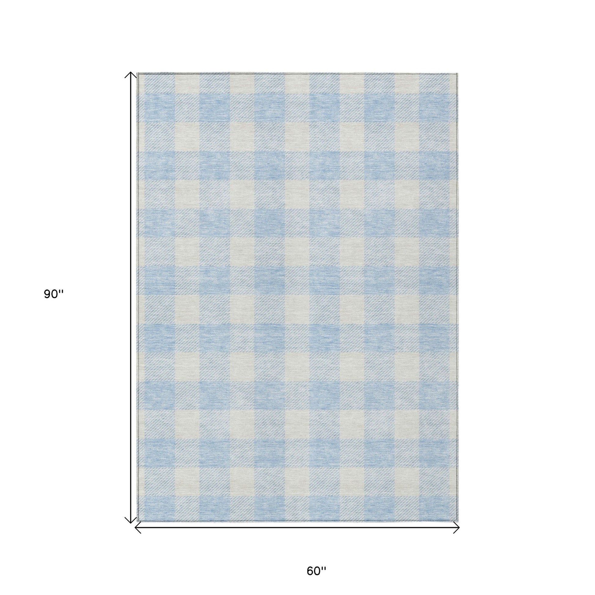 Tabselect Home Line 5' X 8' Sky Blue And Gray Plaid Washable Indoor Outdoor Area Rug