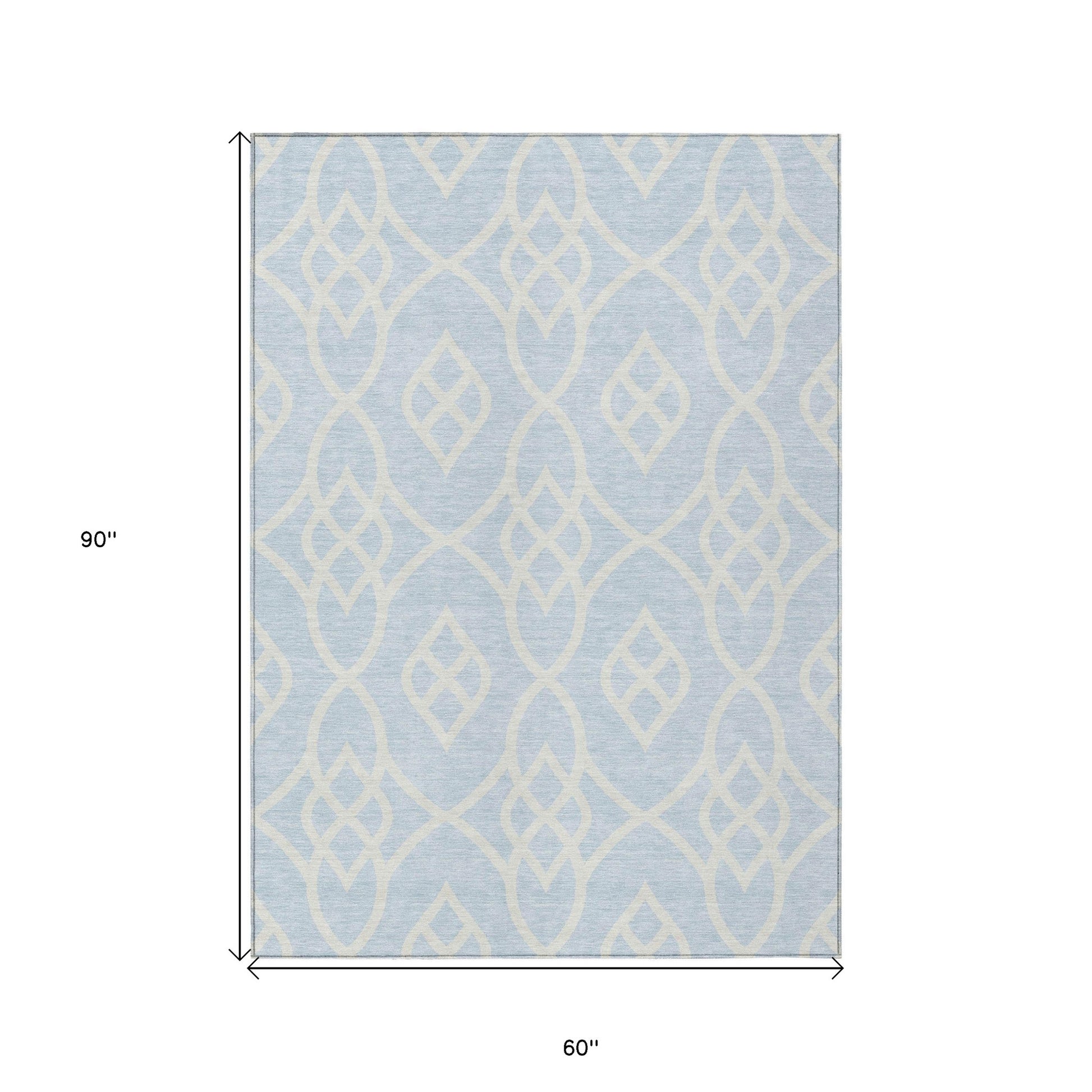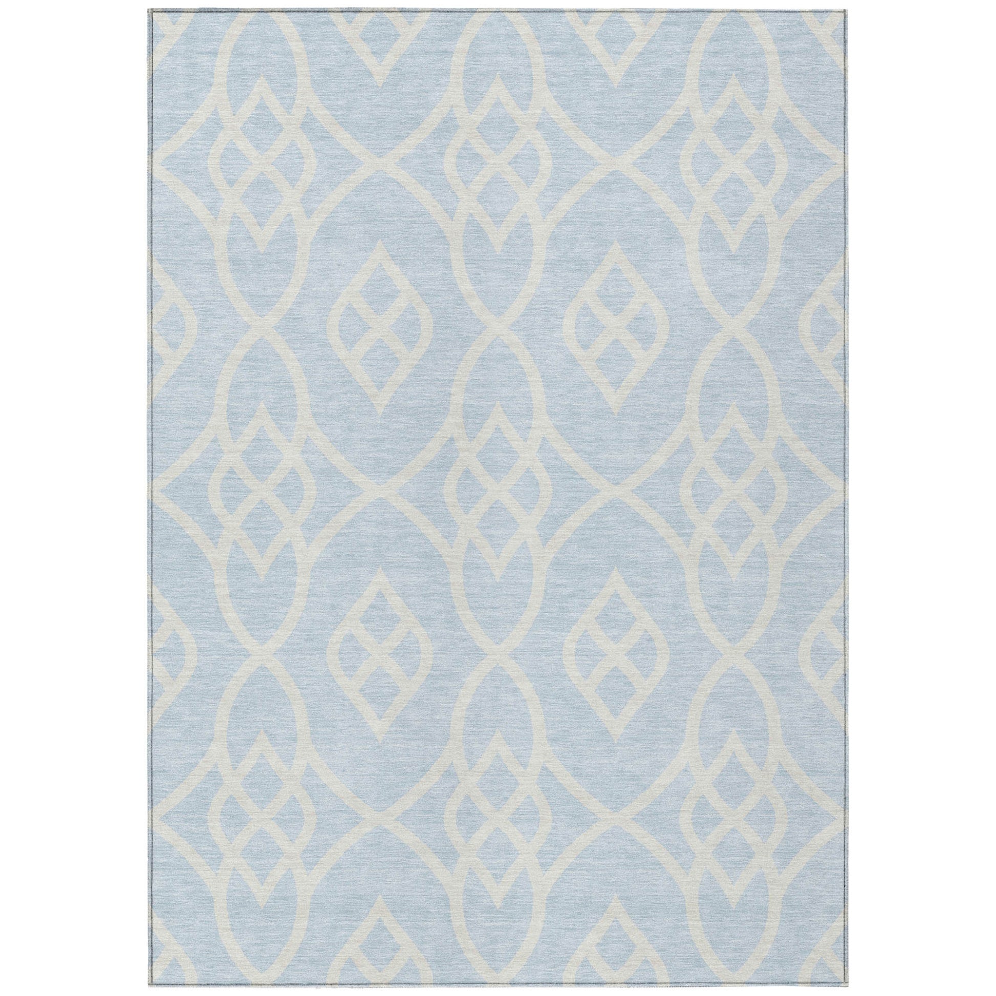 Tabselect Home Line 5' X 8' Sky Blue And Ivory Trellis Washable Indoor Outdoor Area Rug
