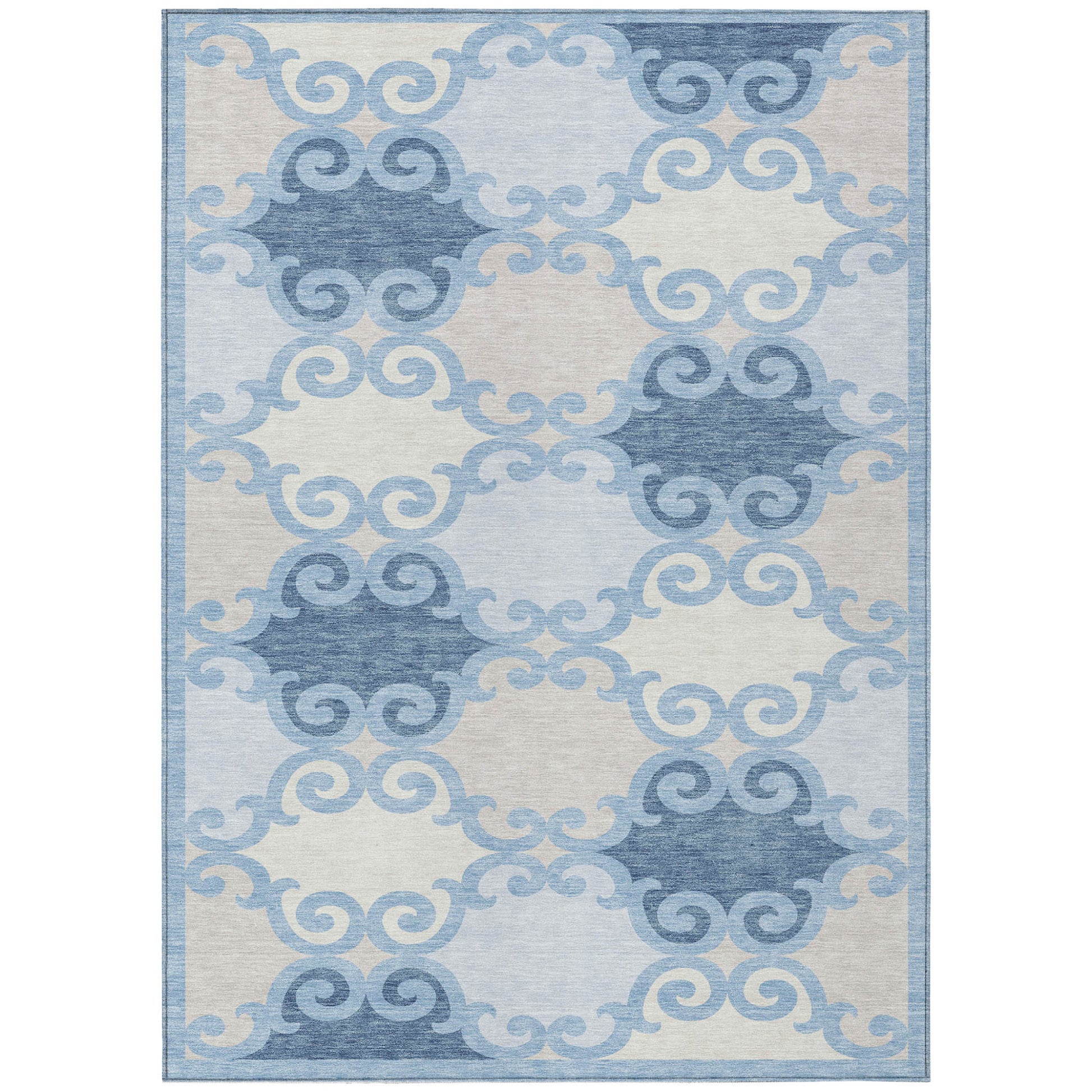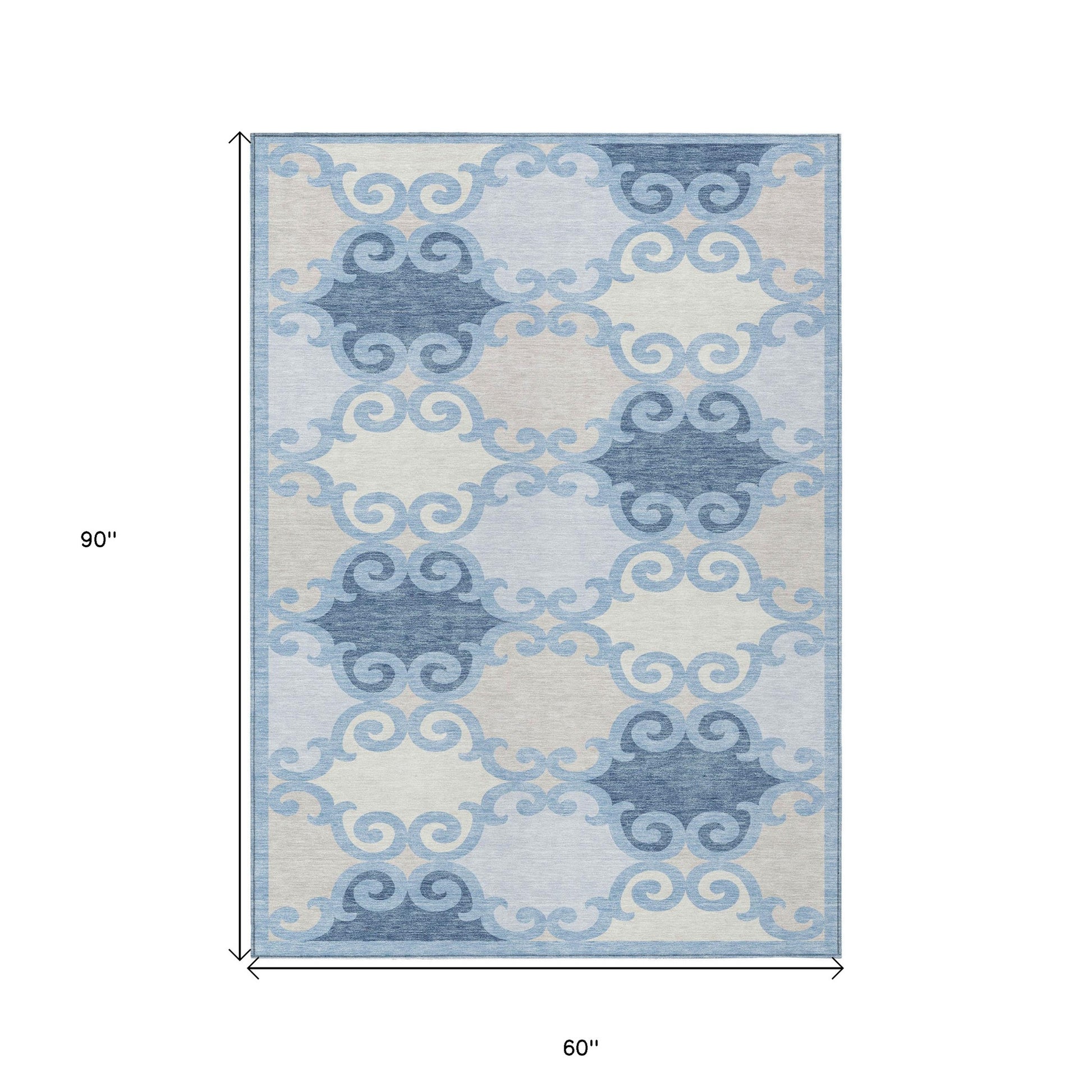 Tabselect Home Line 5' X 8' Sky Blue Gray And Ivory Trellis Washable Indoor Outdoor Area Rug
