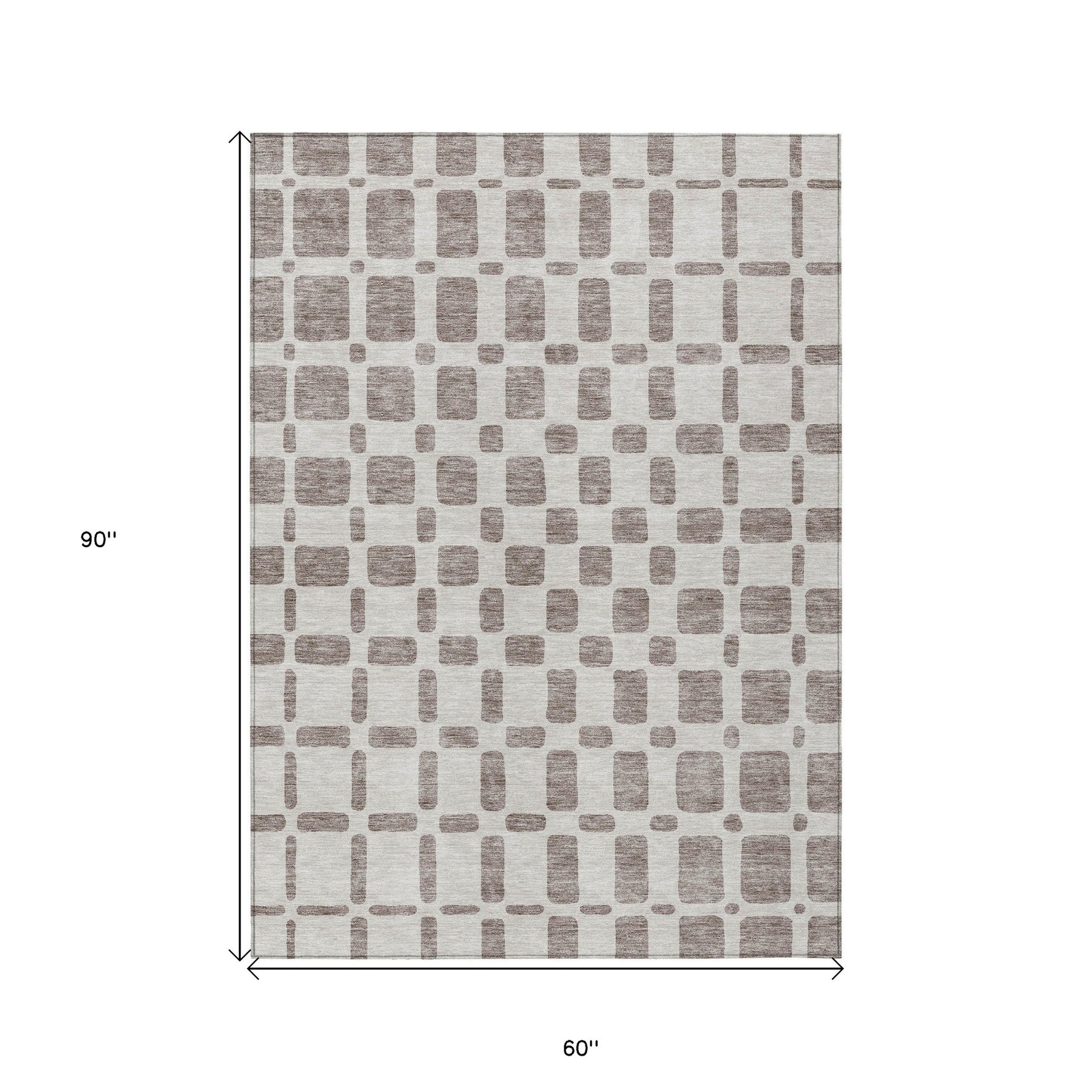 Tabselect Home Line 5' X 8' Taupe And Beige Geometric Washable Indoor Outdoor Area Rug