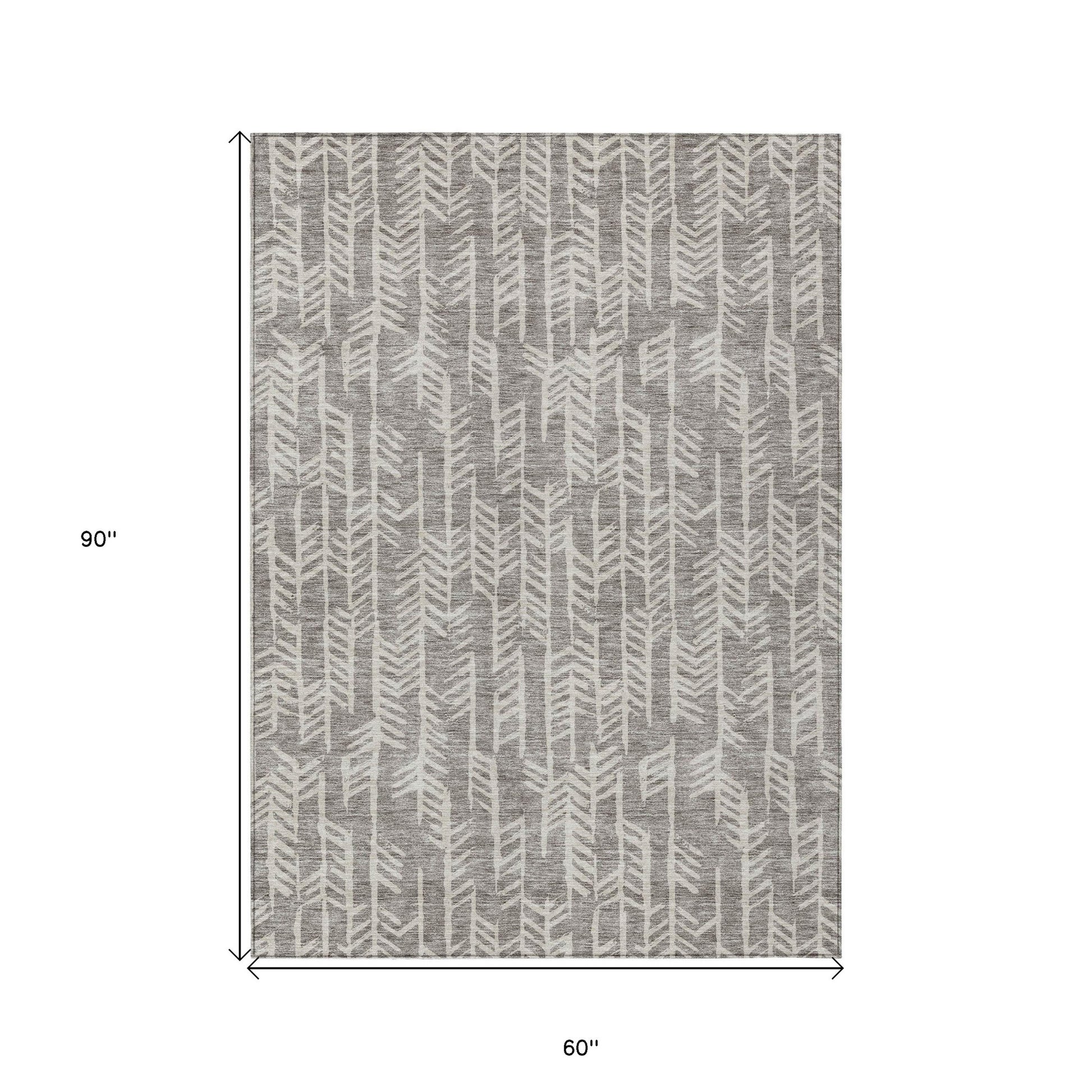 Tabselect Home Line 5' X 8' Taupe And Beige Tribal Washable Indoor Outdoor Area Rug