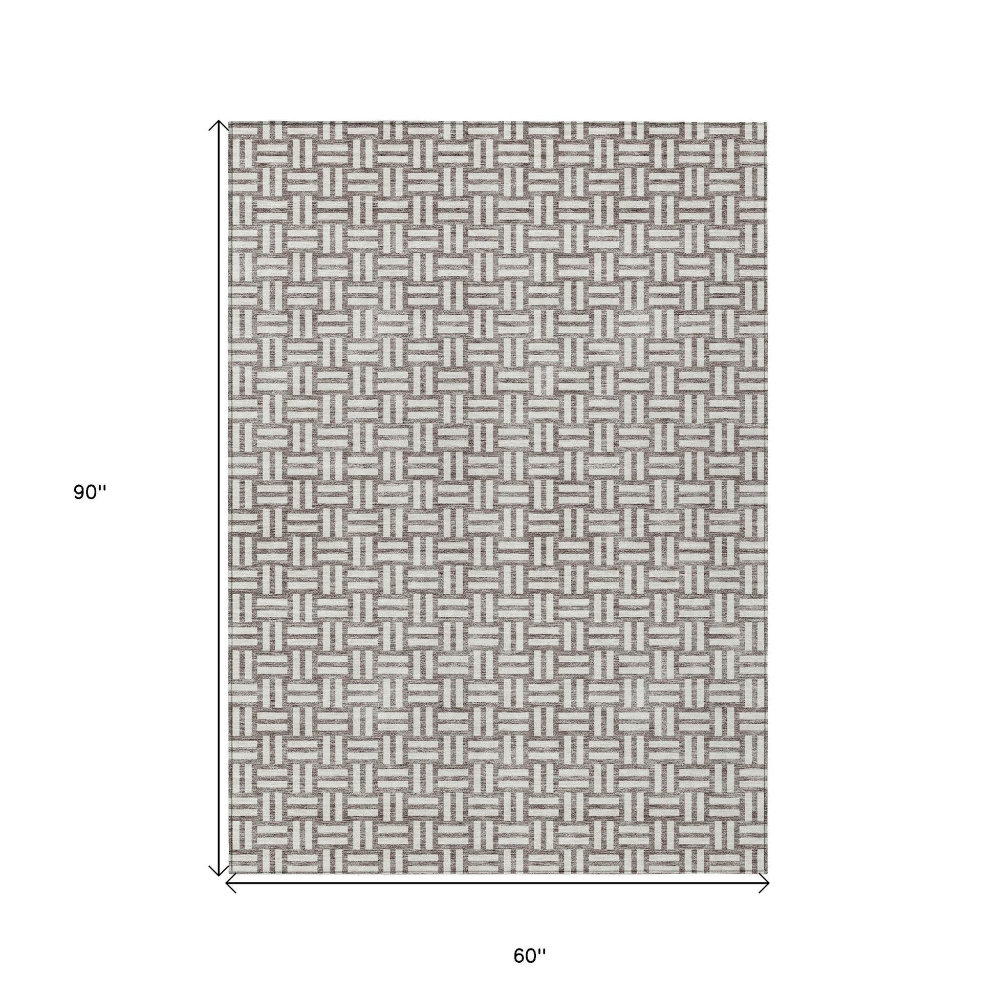 Tabselect Home Line 5' X 8' Taupe And Gray Geometric Washable Indoor Outdoor Area Rug