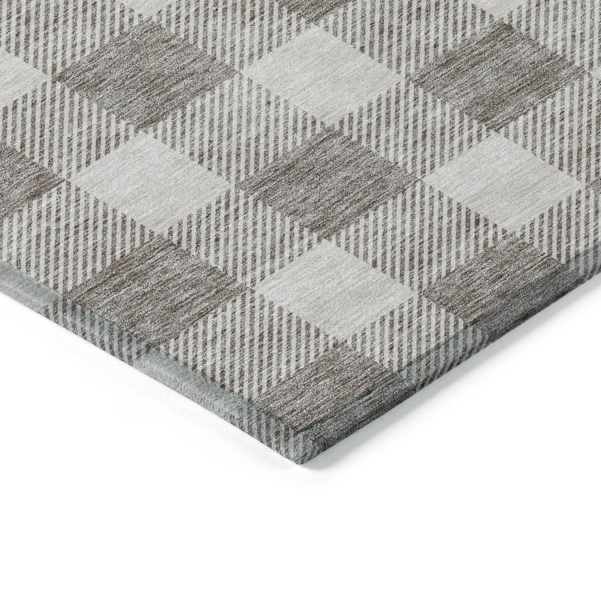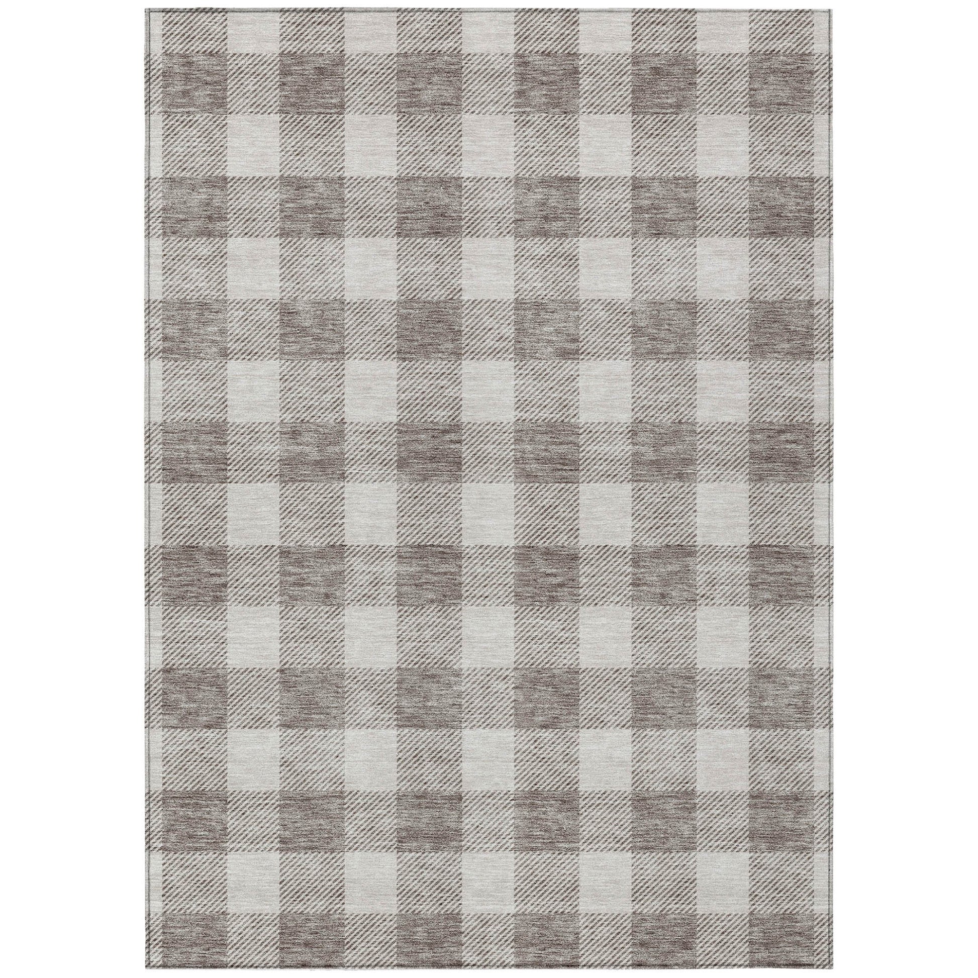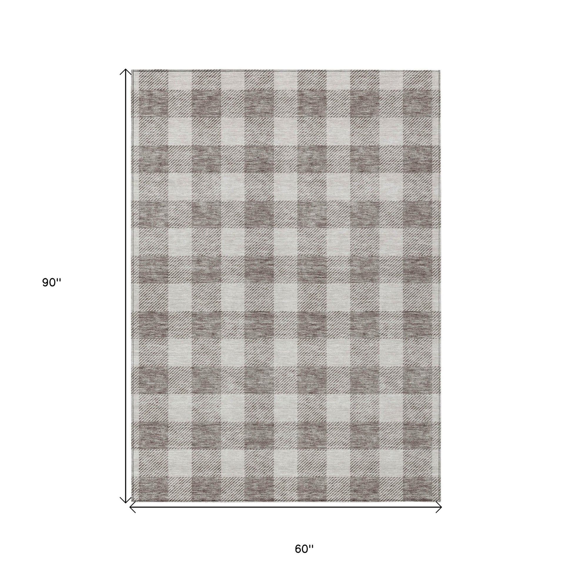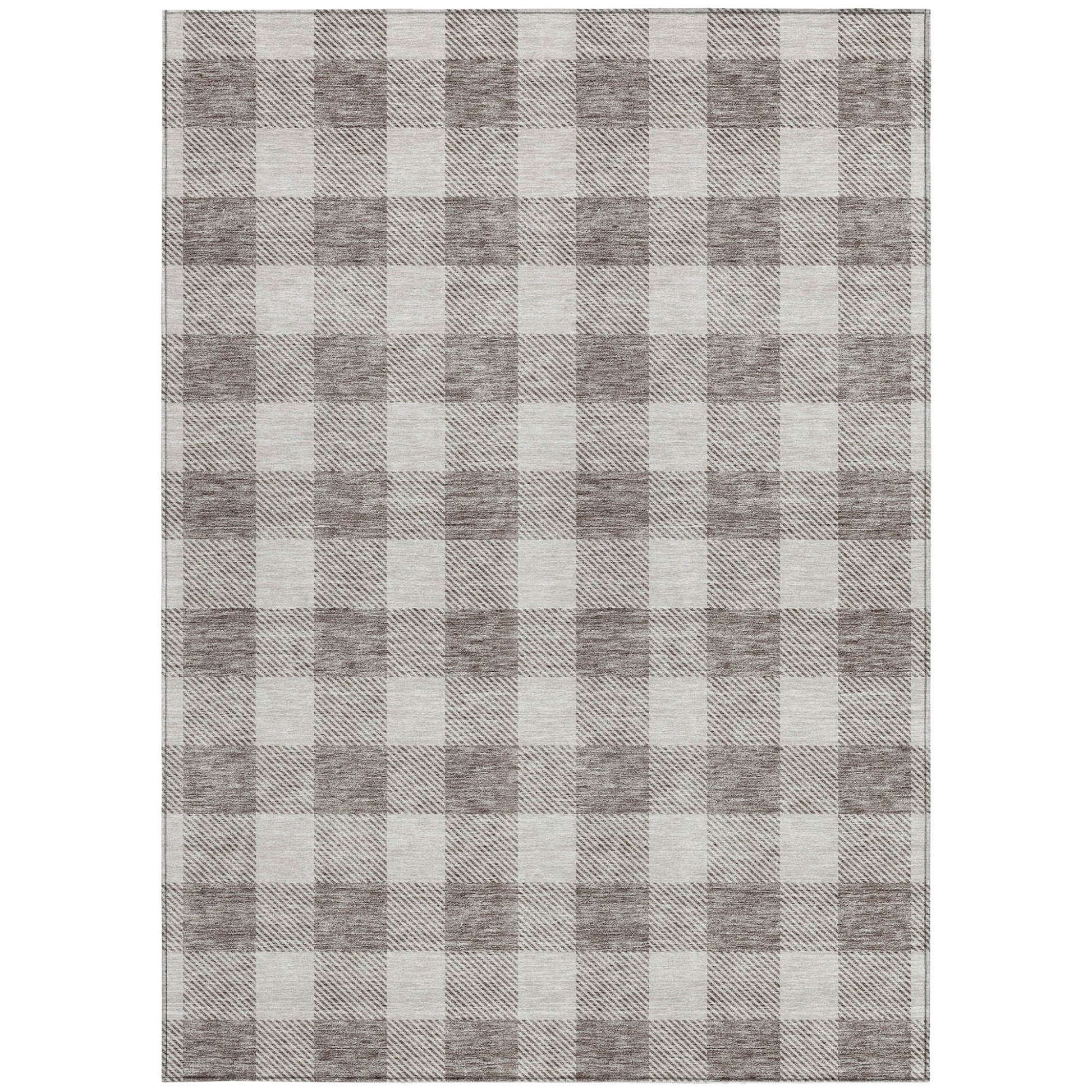 Tabselect Home Line 5' X 8' Taupe And Gray Plaid Washable Indoor Outdoor Area Rug