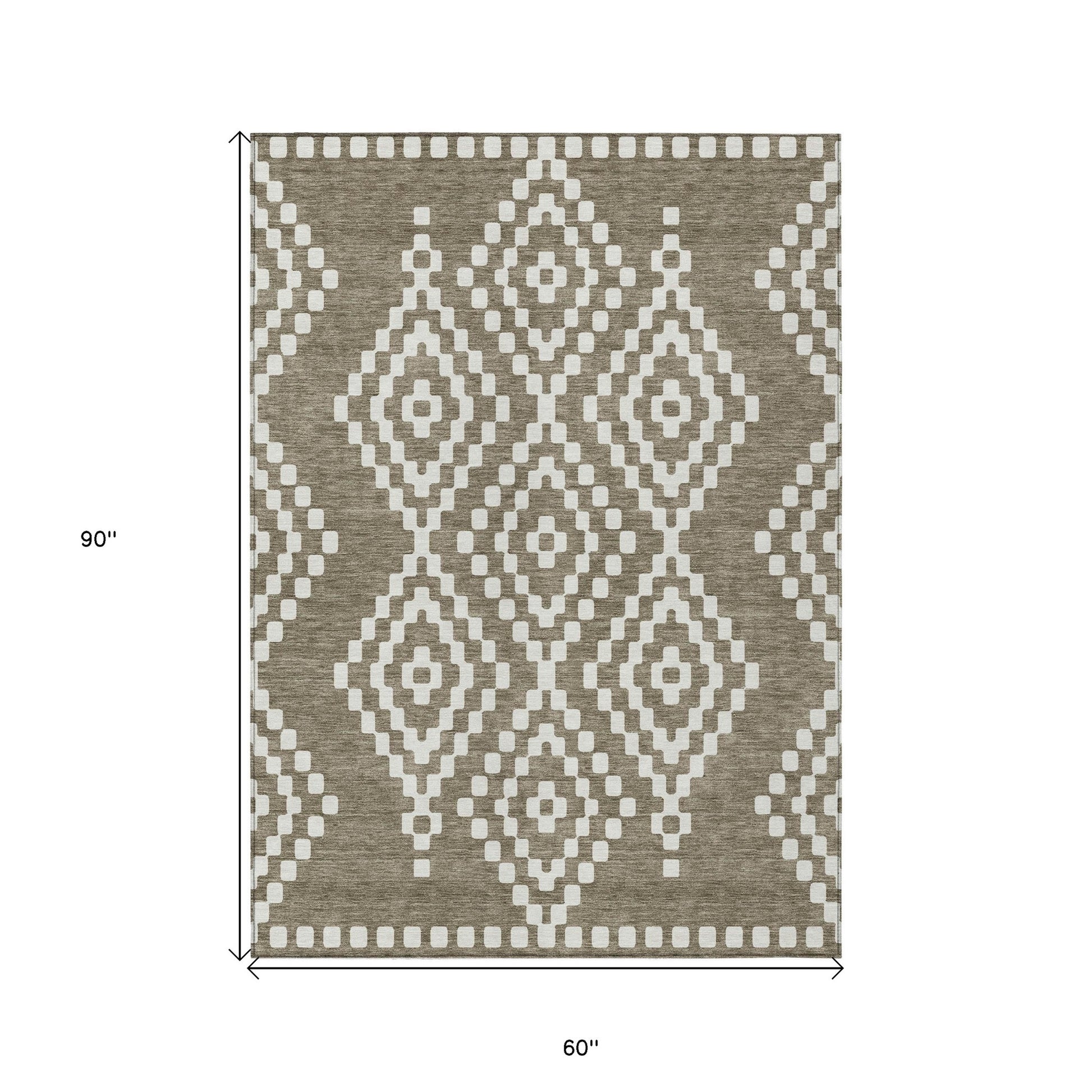 Tabselect Home Line 5' X 8' Taupe And Ivory Geometric Washable Indoor Outdoor Area Rug