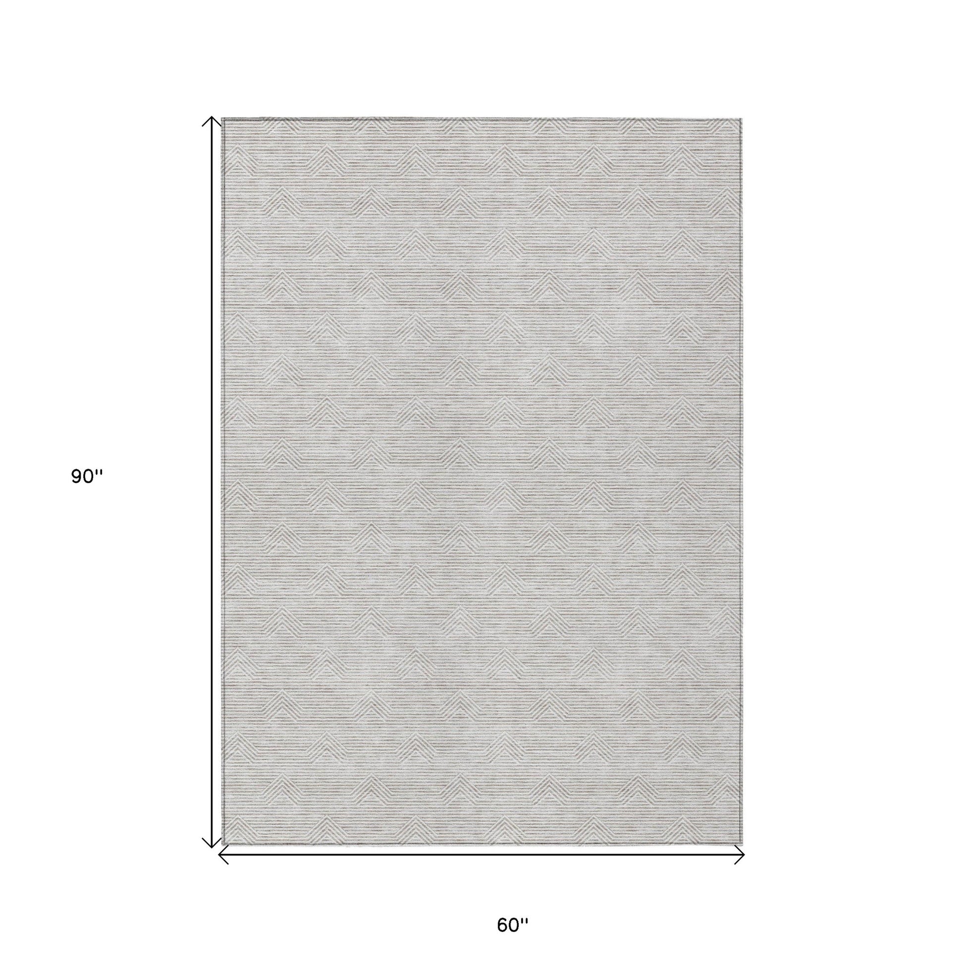 Tabselect Home Line 5' X 8' Taupe And Ivory Geometric Washable Indoor Outdoor Area Rug