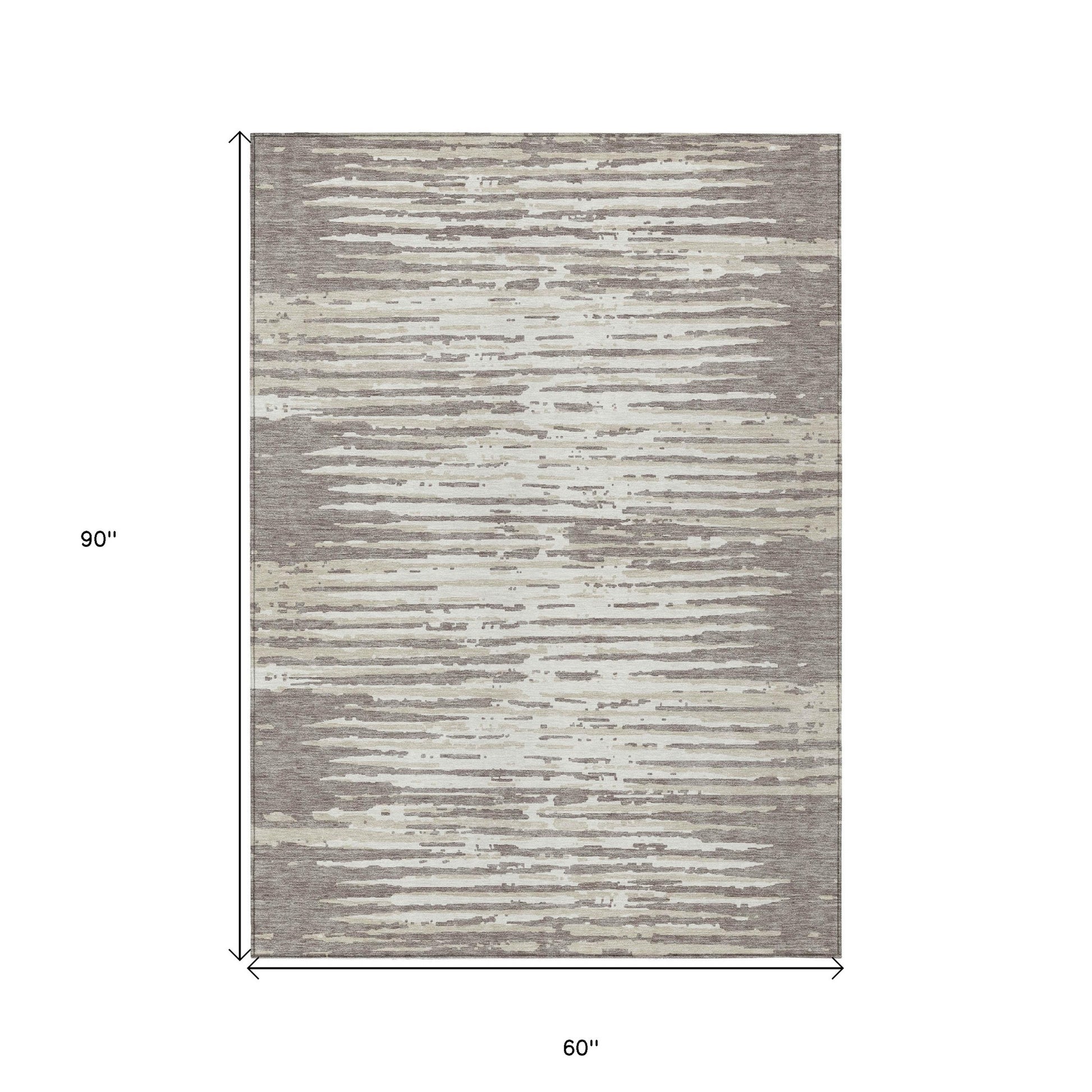 Tabselect Home Line 5' X 8' Taupe And Ivory Striped Washable Indoor Outdoor Area Rug