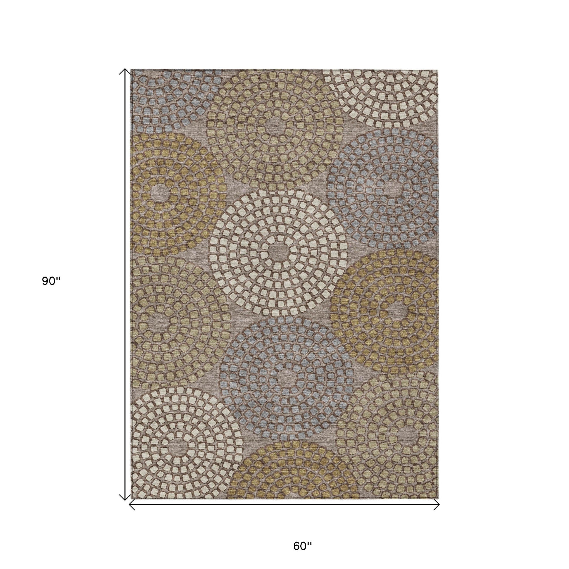 Tabselect Home Line 5' X 8' Taupe Beige And Green Geometric Washable Indoor Outdoor Area Rug