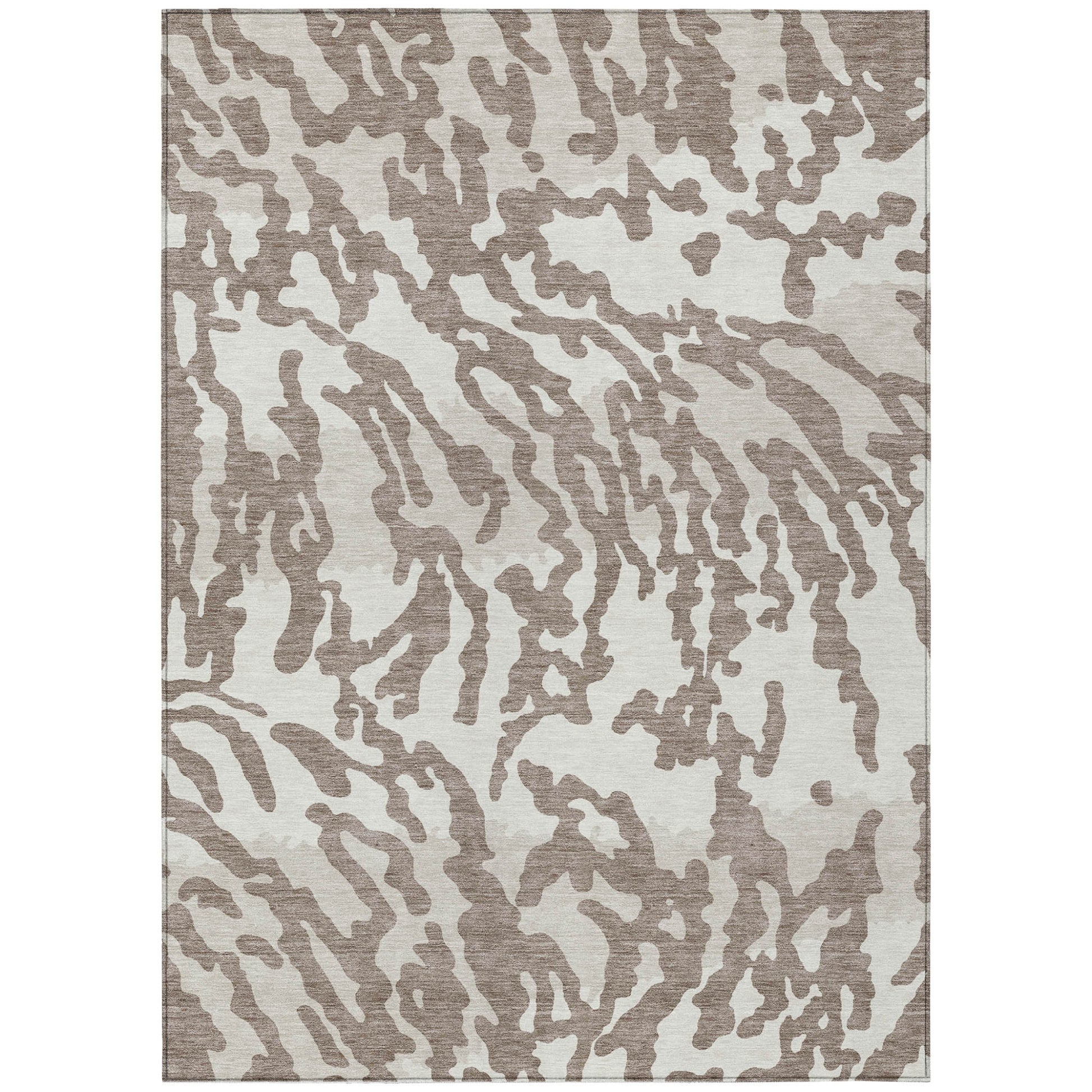 Tabselect Home Line 5' X 8' Taupe Brown And Ivory Animal Print Washable Indoor Outdoor Area Rug