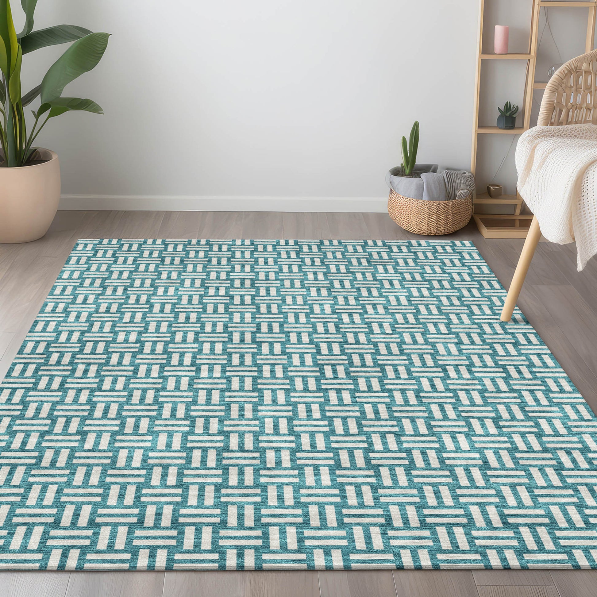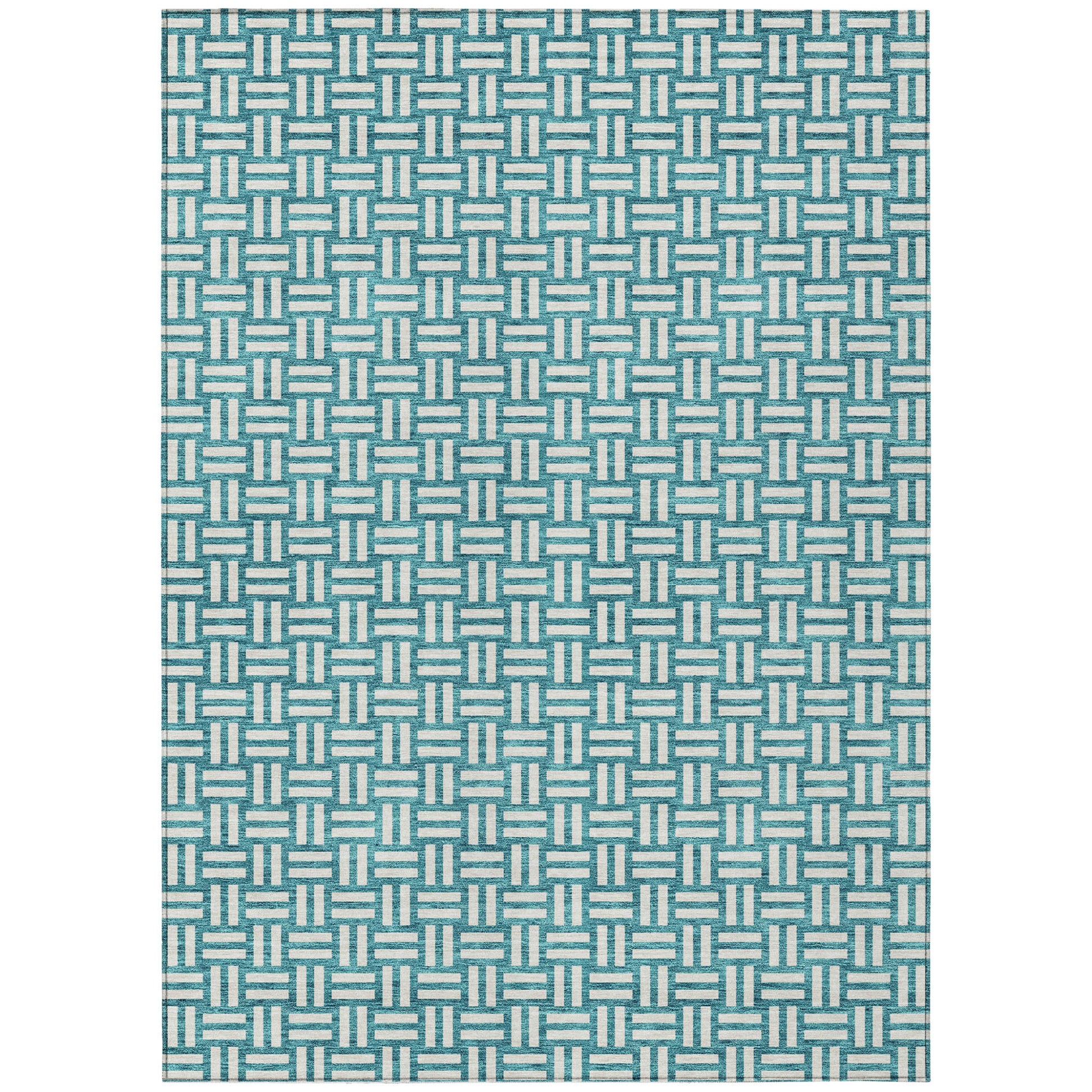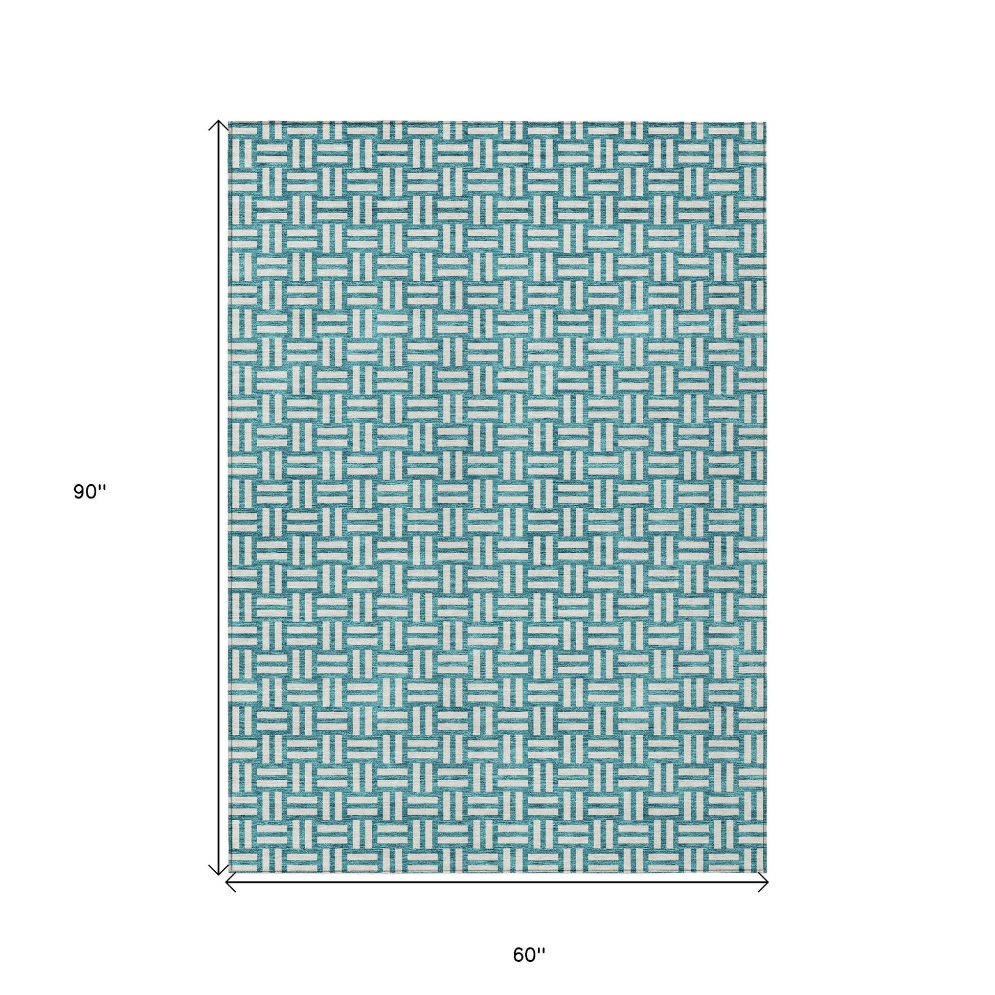 Tabselect Home Line 5' X 8' Teal Blue And Gray Geometric Washable Indoor Outdoor Area Rug