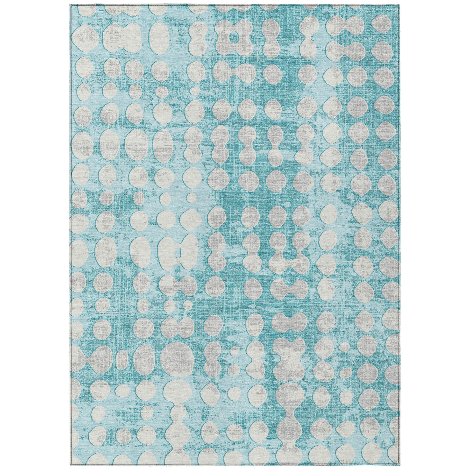 Tabselect Home Line 5' X 8' Teal Blue And Ivory Abstract Washable Indoor Outdoor Area Rug