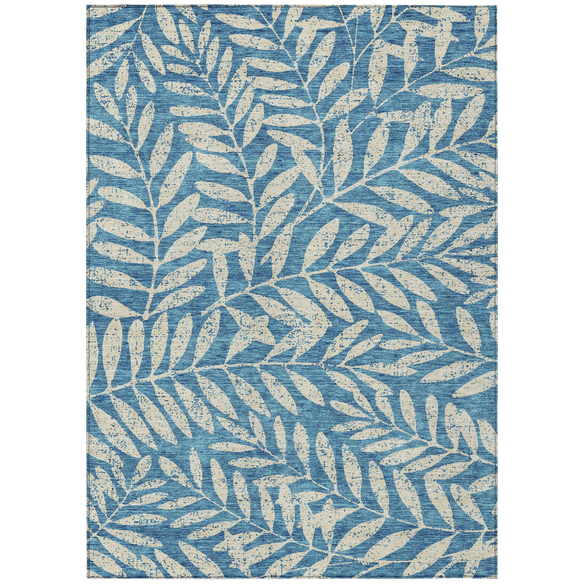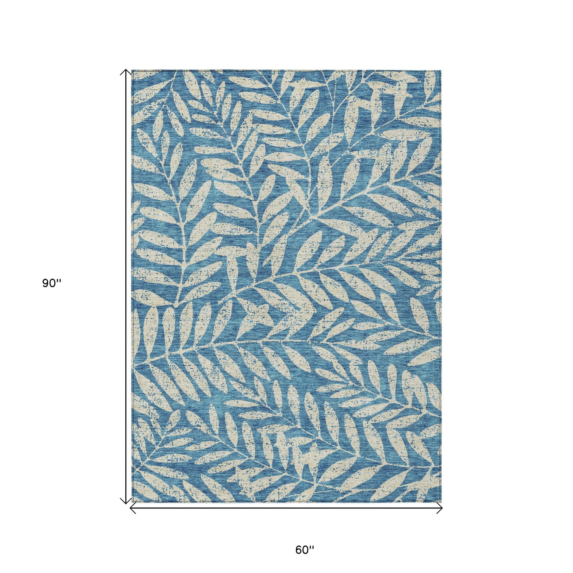 Tabselect Home Line 5' X 8' Teal Blue And Ivory Floral Washable Indoor Outdoor Area Rug
