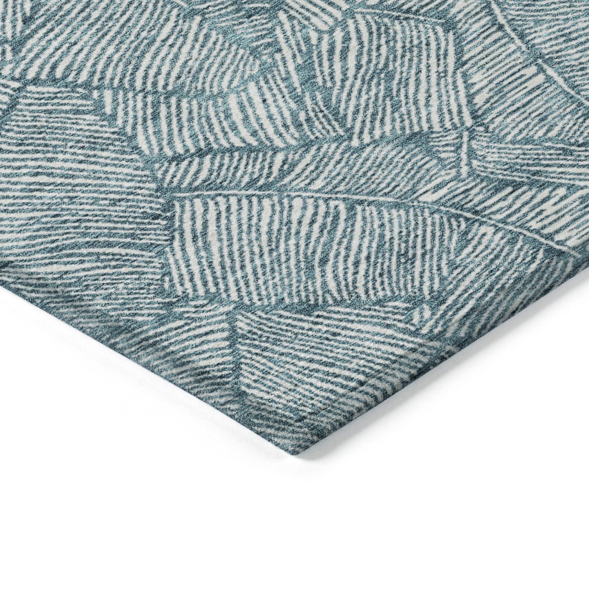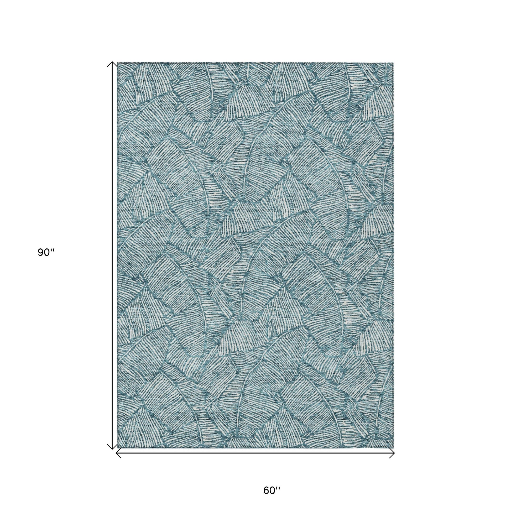 Tabselect Home Line 5' X 8' Teal Blue And Ivory Floral Washable Indoor Outdoor Area Rug