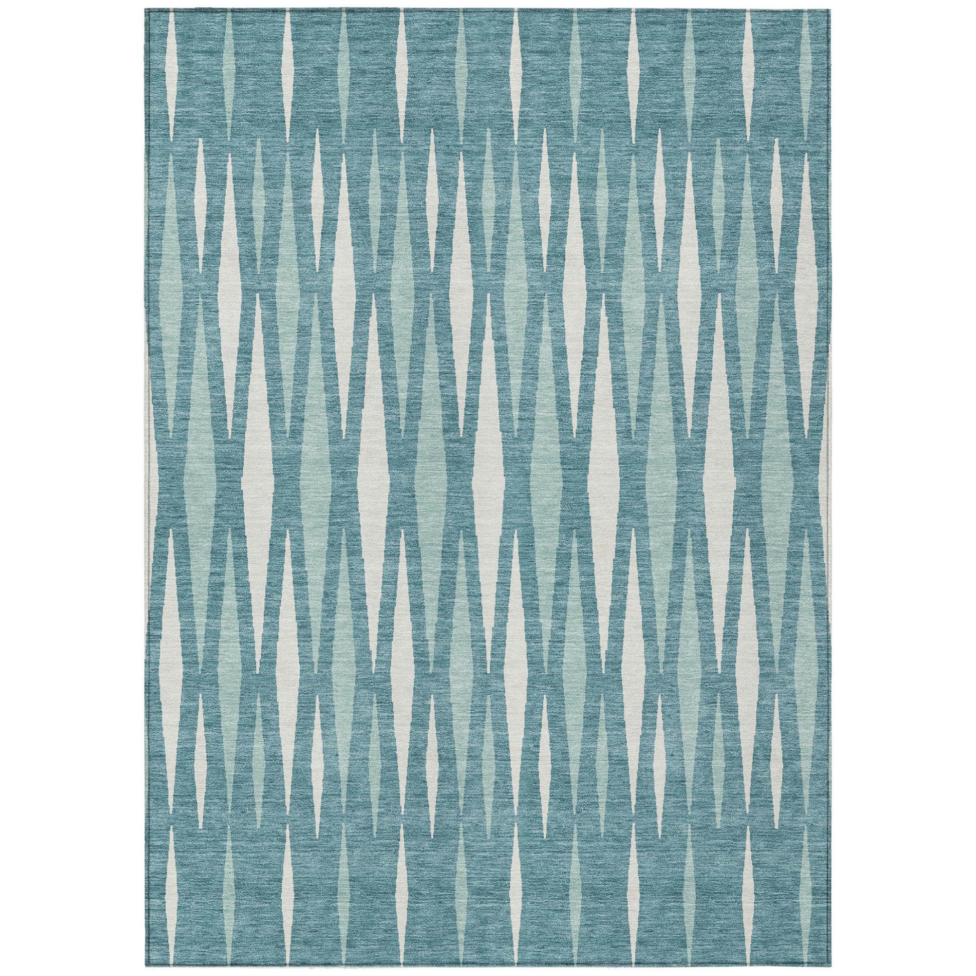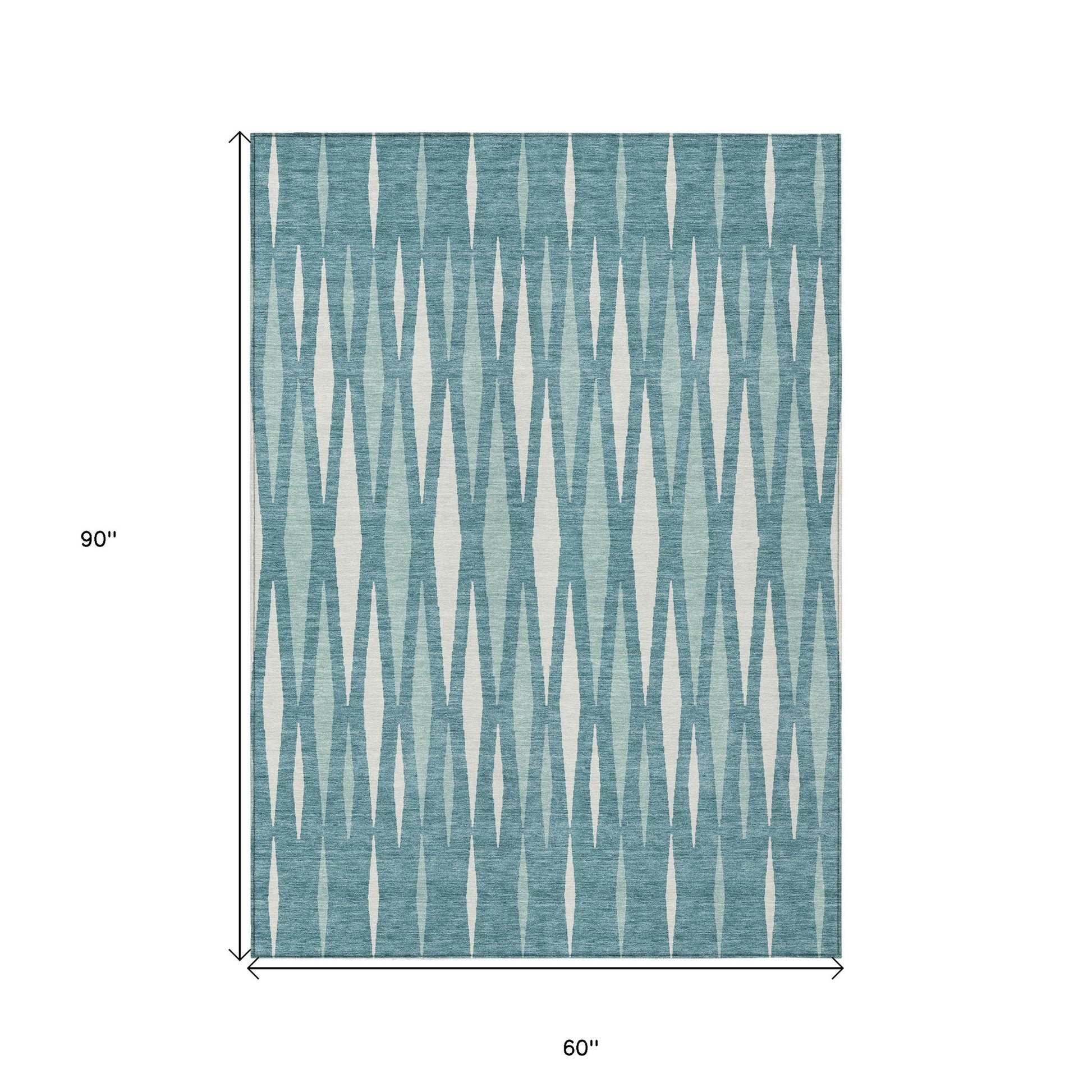 Tabselect Home Line 5' X 8' Teal Blue And Ivory Geometric Washable Indoor Outdoor Area Rug
