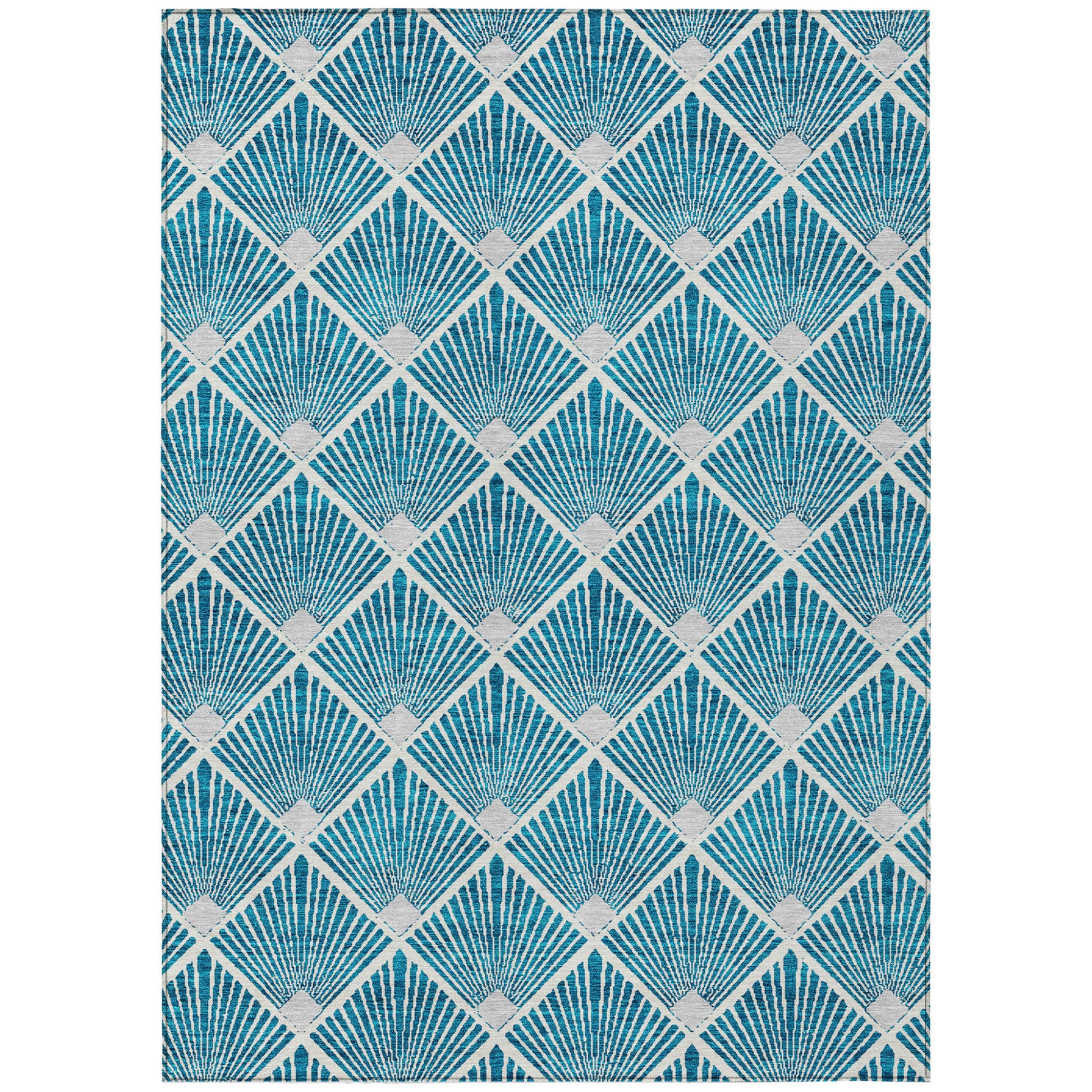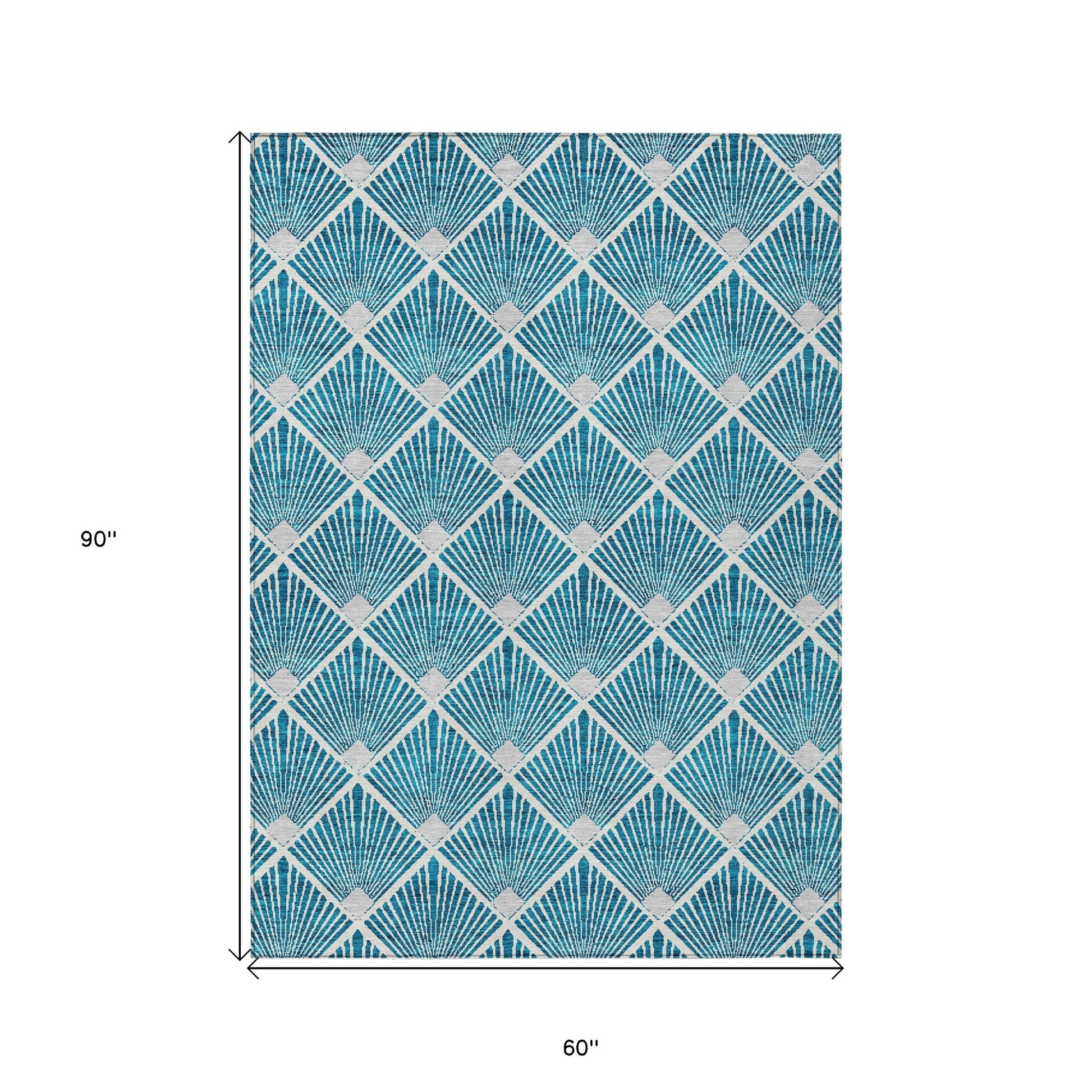 Tabselect Home Line 5' X 8' Teal Blue And Ivory Geometric Washable Indoor Outdoor Area Rug