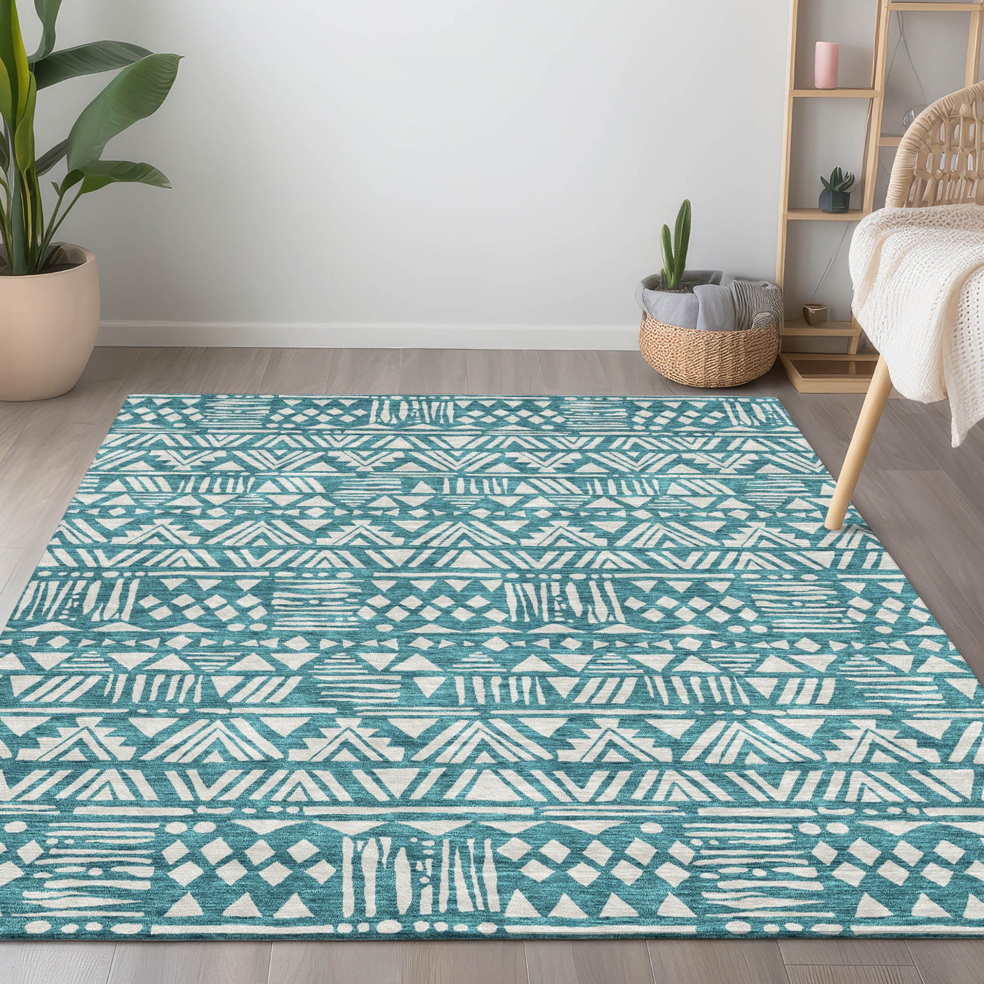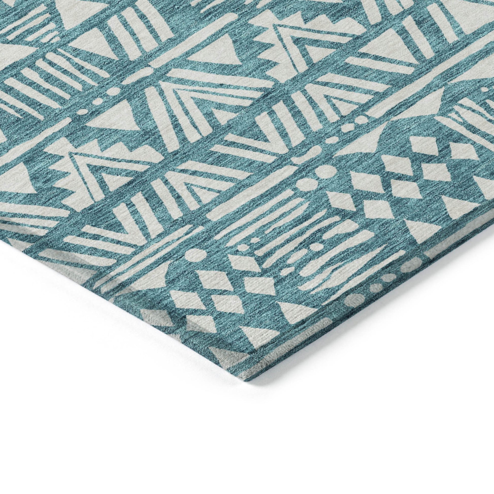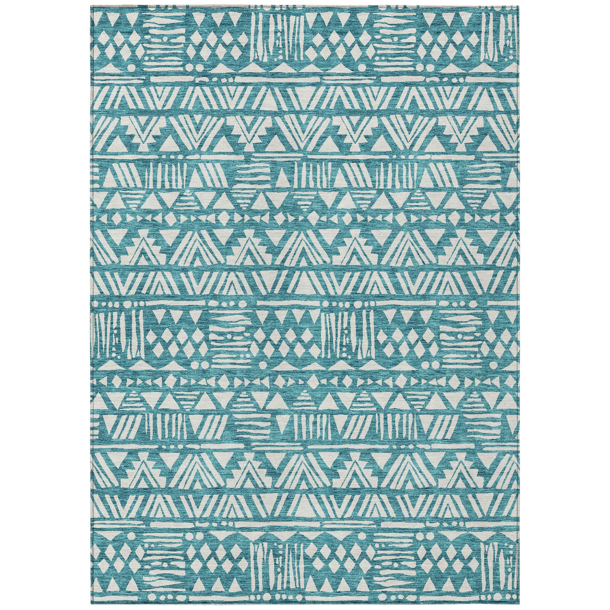 Tabselect Home Line 5' X 8' Teal Blue And Ivory Southwestern Washable Indoor Outdoor Area Rug
