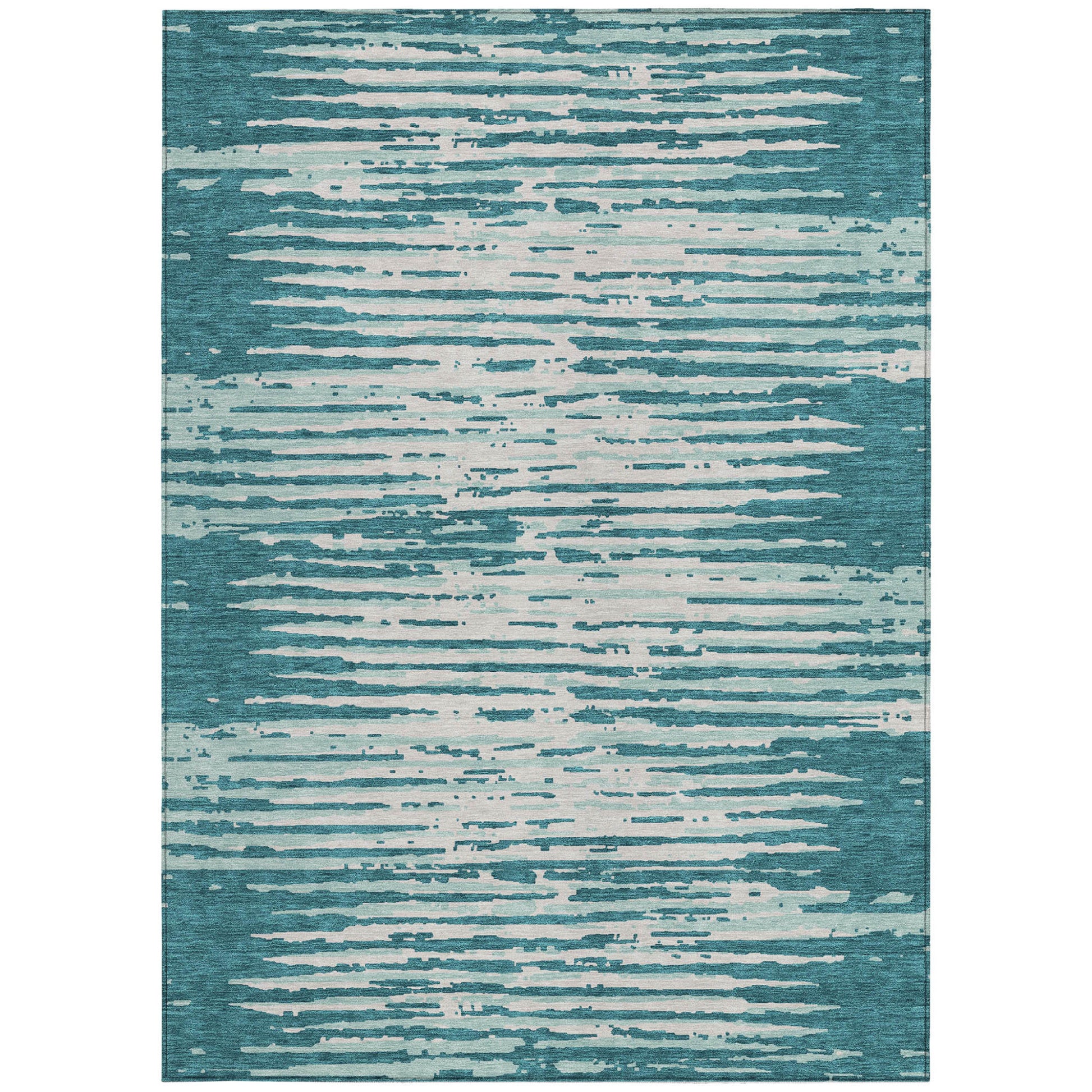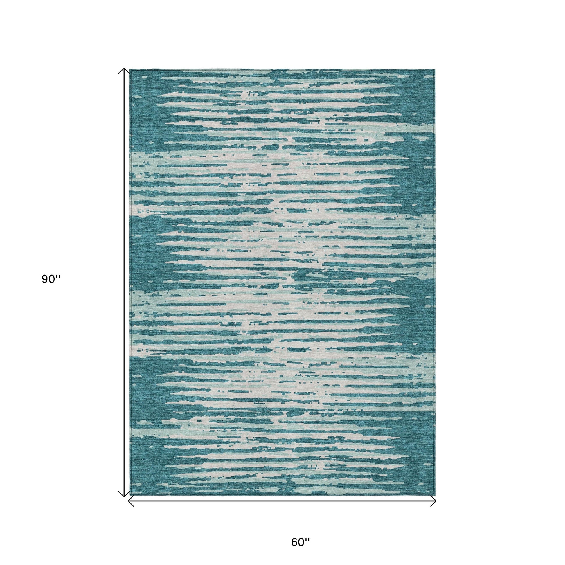 Tabselect Home Line 5' X 8' Teal Blue And Ivory Striped Washable Indoor Outdoor Area Rug