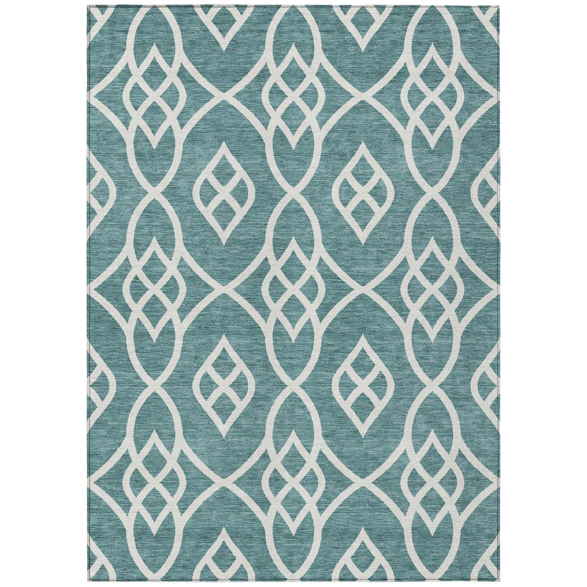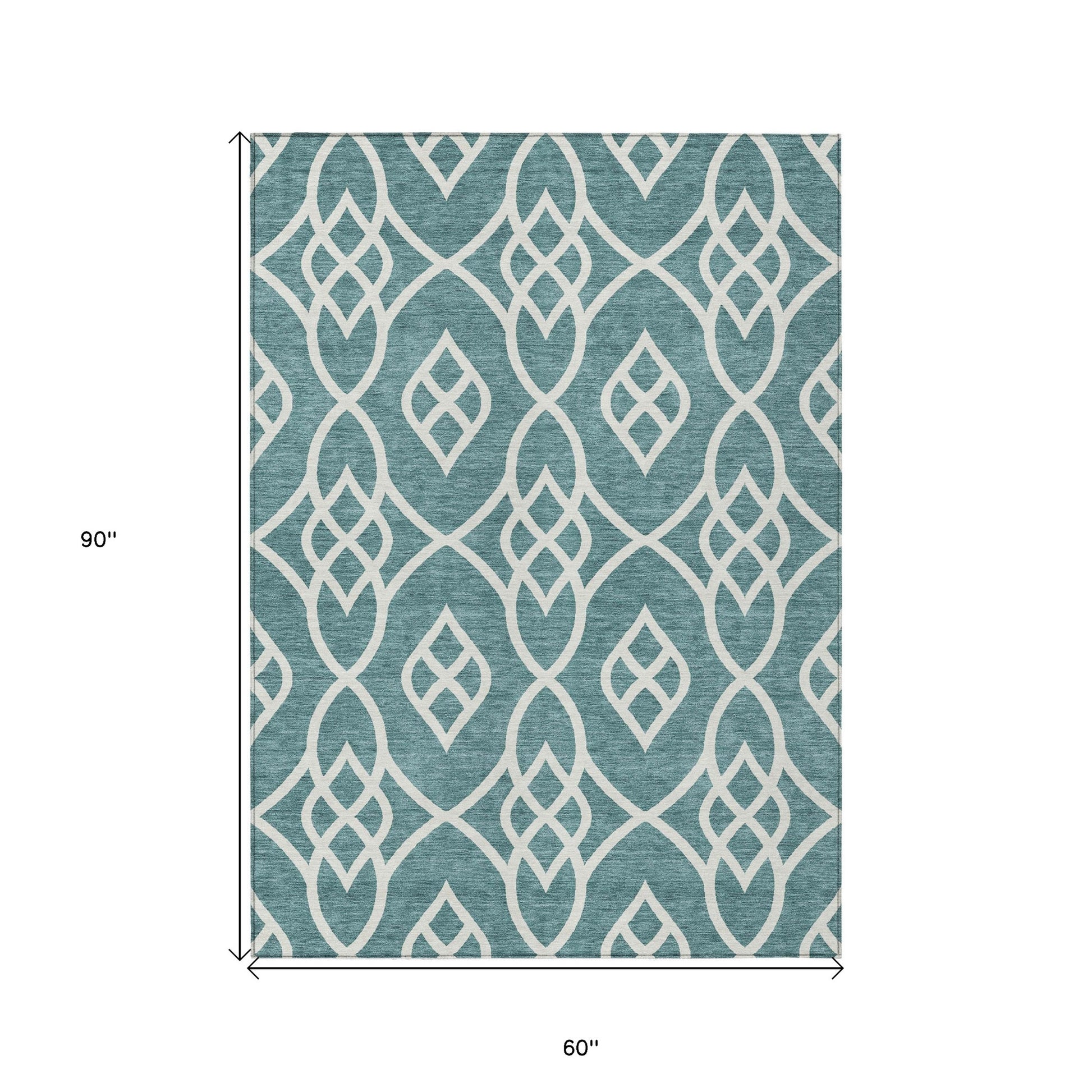 Tabselect Home Line 5' X 8' Teal Blue And Ivory Trellis Washable Indoor Outdoor Area Rug