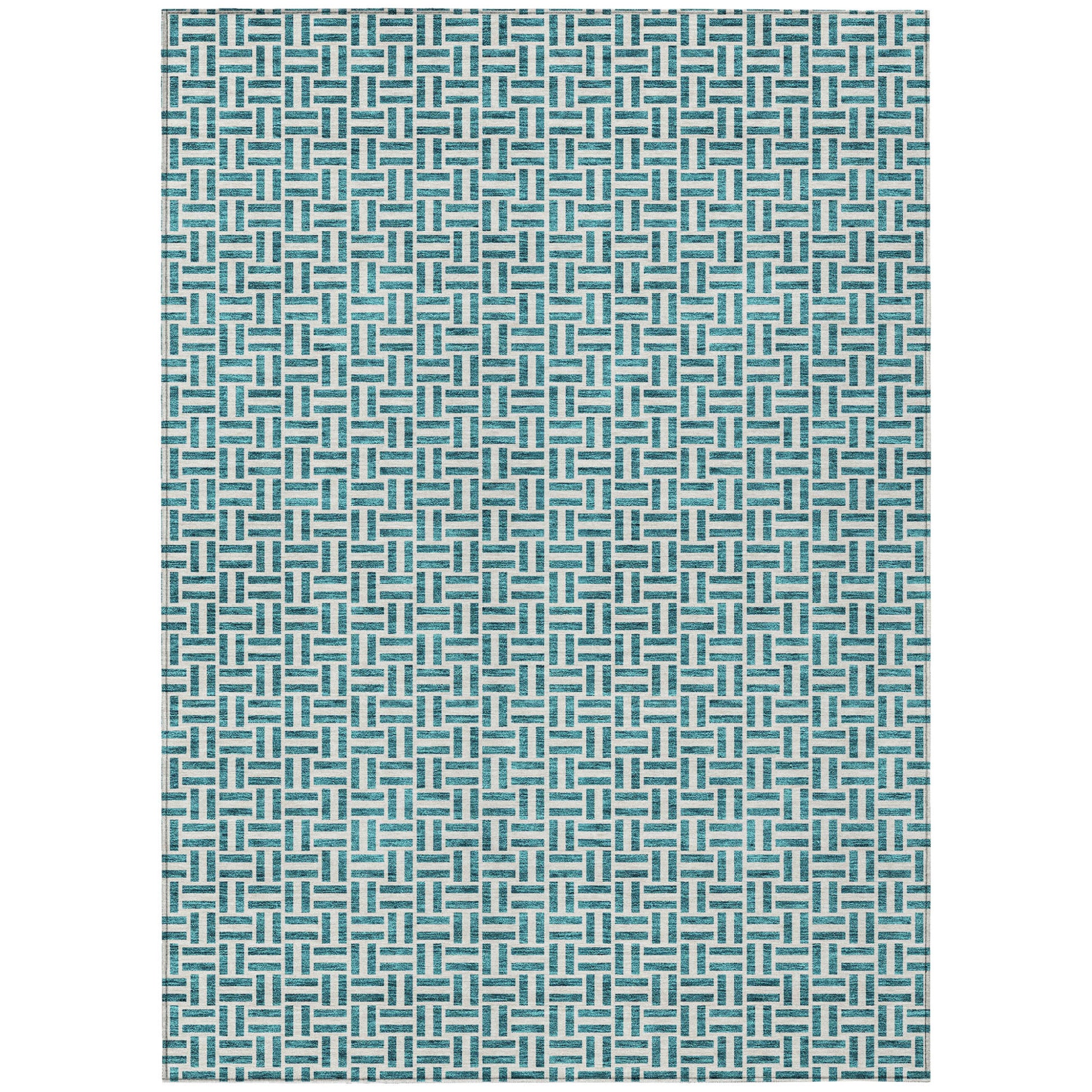 Tabselect Home Line 5' X 8' Teal Blue And Silver Geometric Washable Indoor Outdoor Area Rug