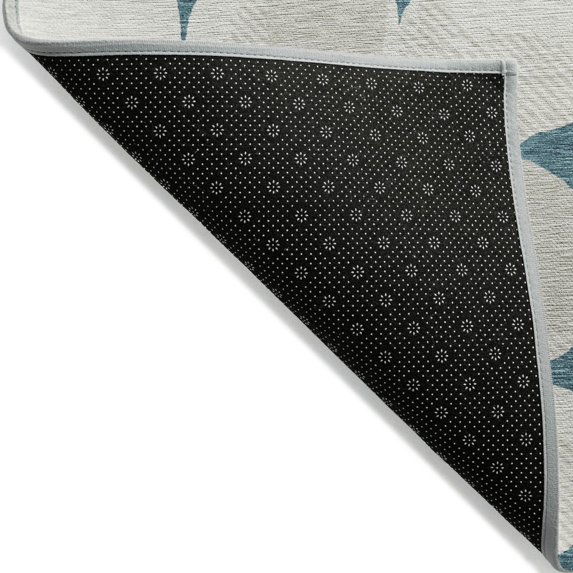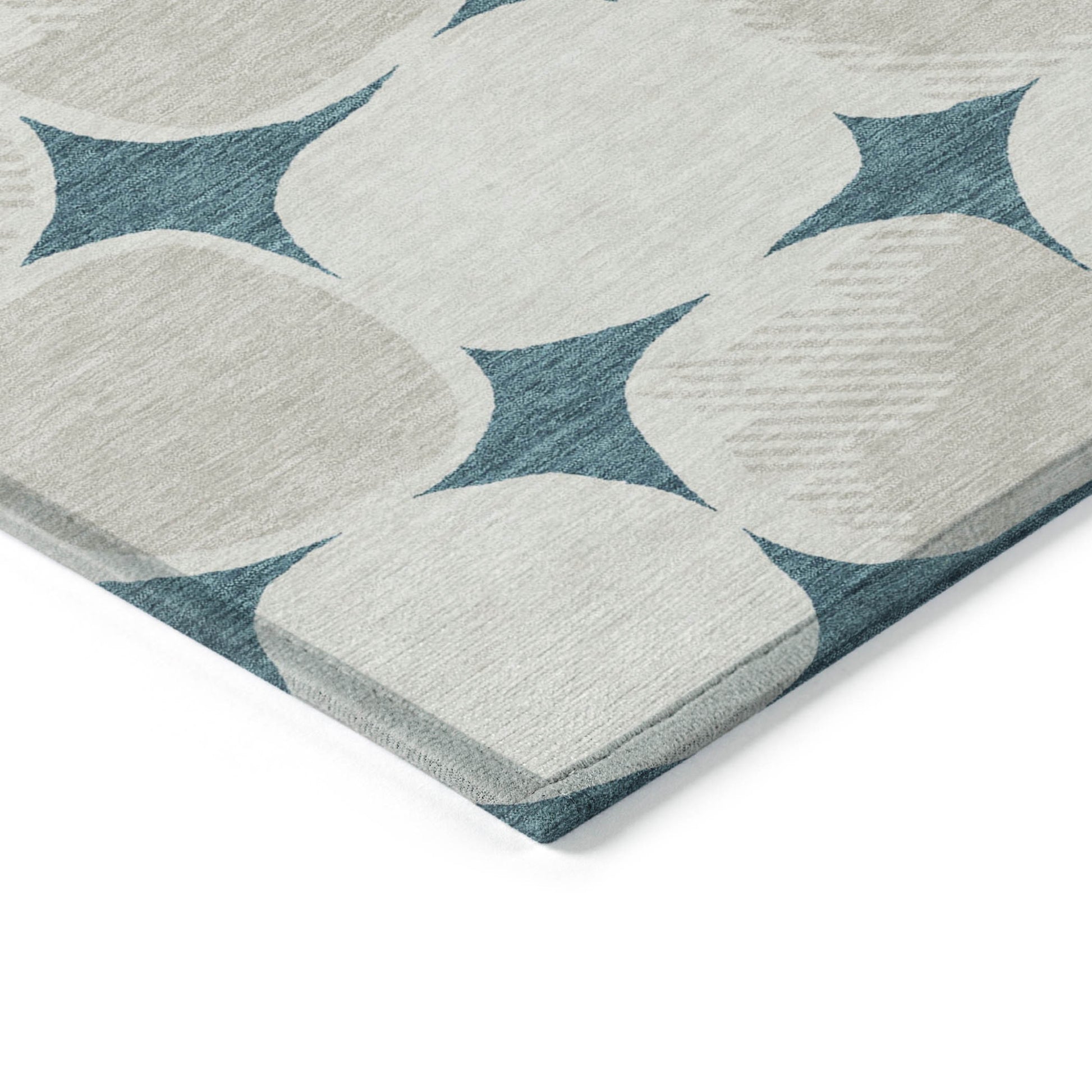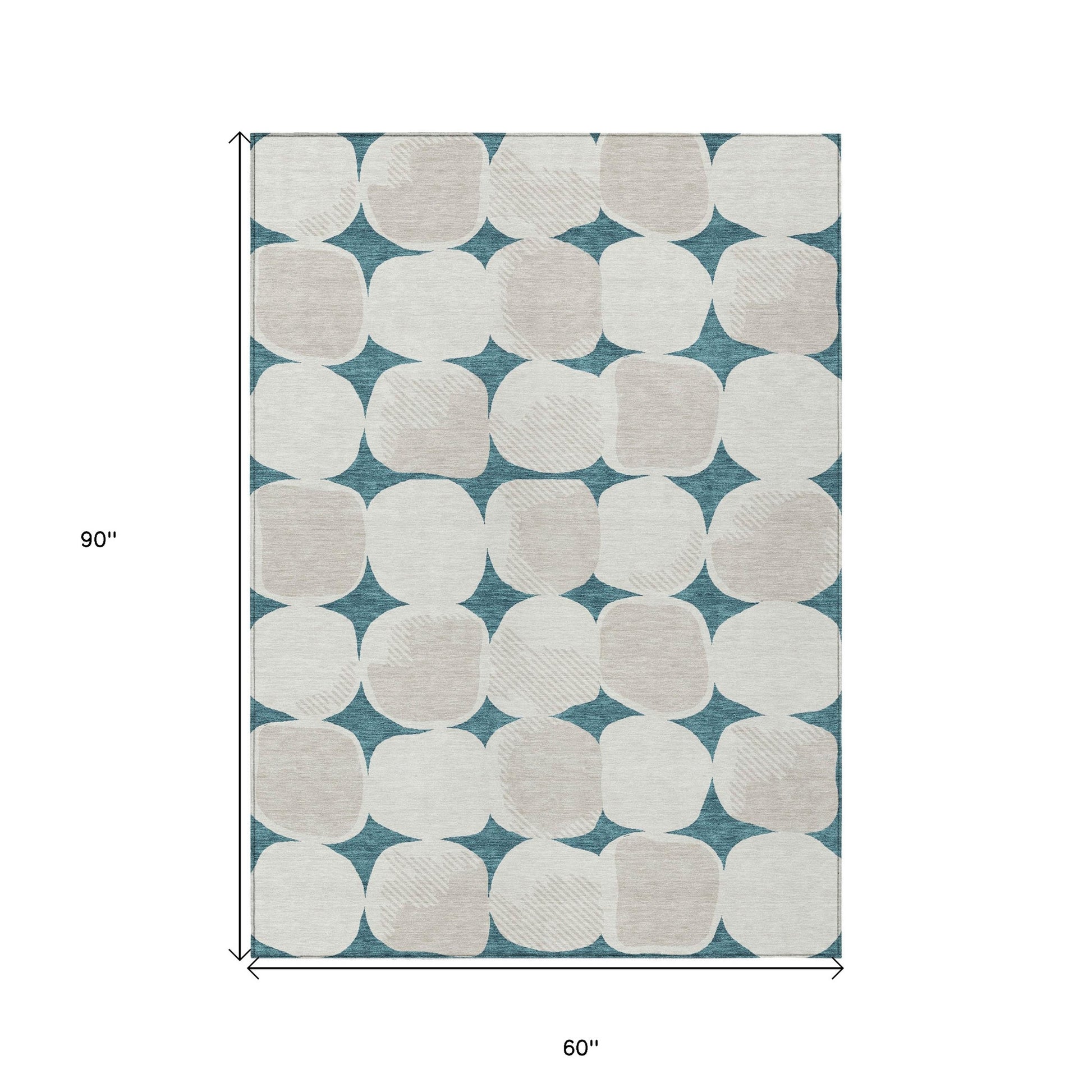 Tabselect Home Line 5' X 8' Teal Blue Beige And Ivory Abstract Washable Indoor Outdoor Area Rug