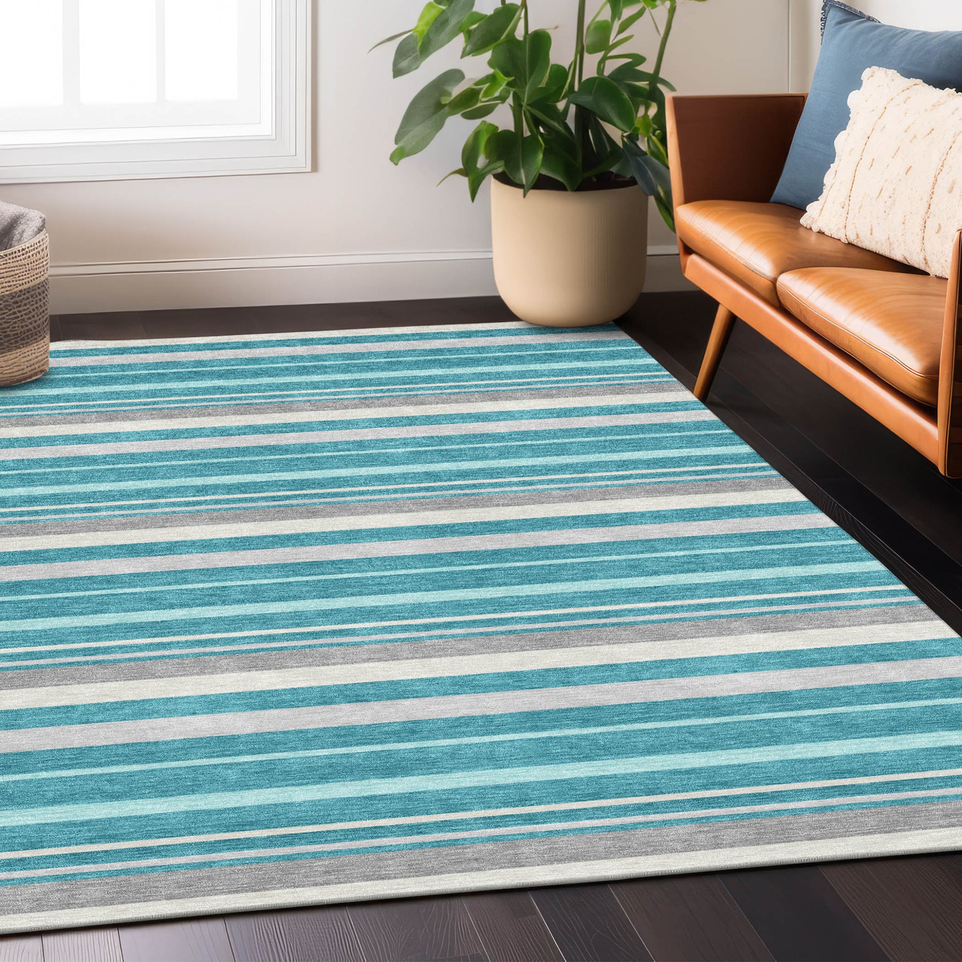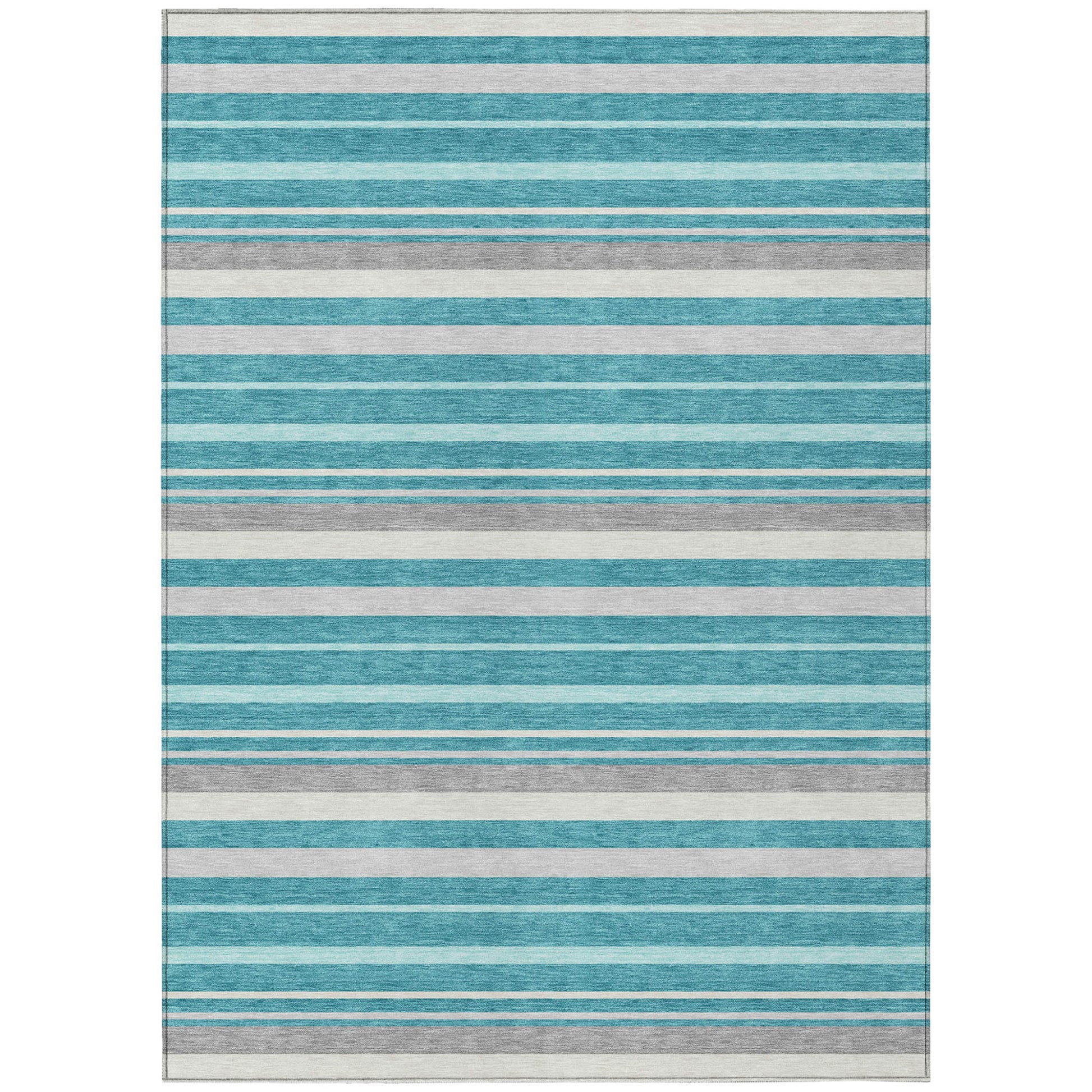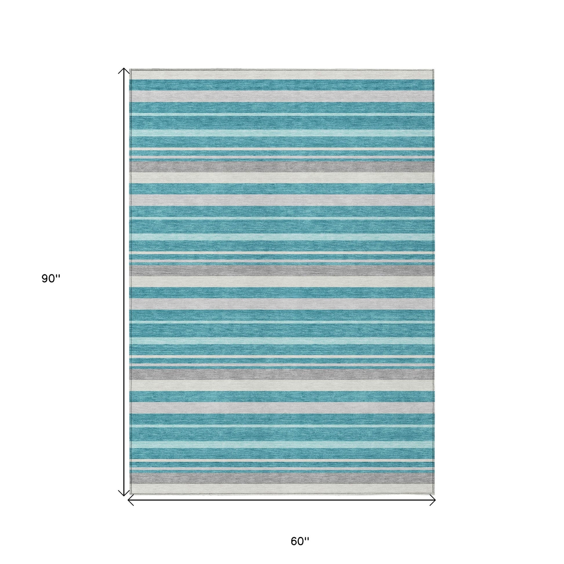 Tabselect Home Line 5' X 8' Teal Blue Gray And Ivory Striped Washable Indoor Outdoor Area Rug