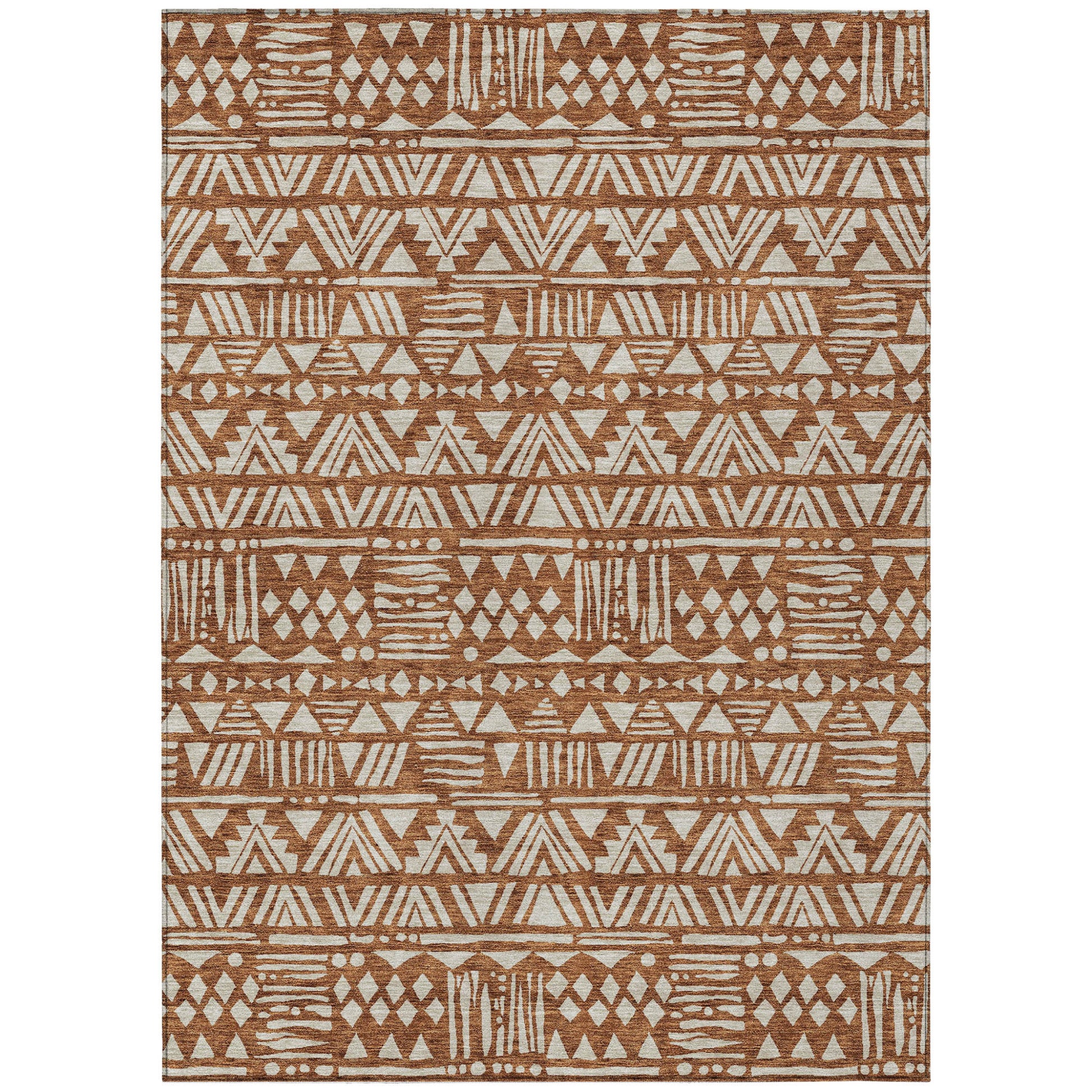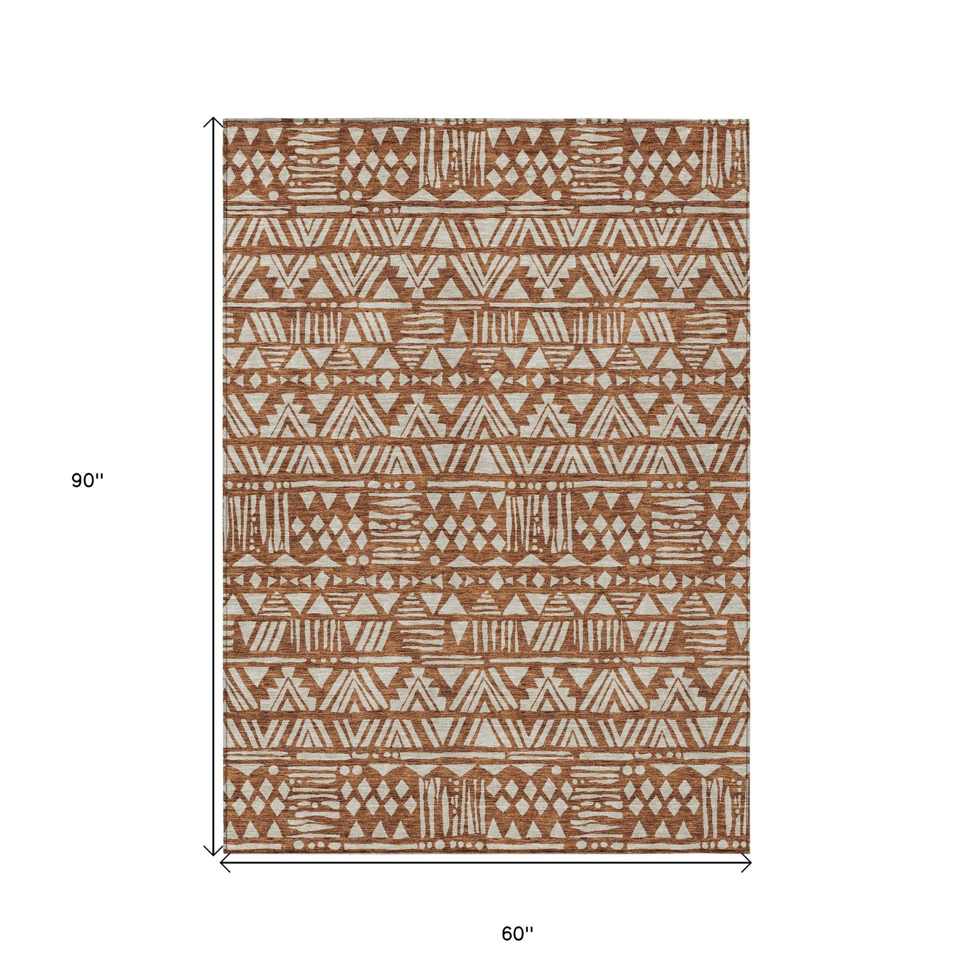 Tabselect Home Line 5' X 8' Terra Cotta And Beige Southwestern Washable Indoor Outdoor Area Rug