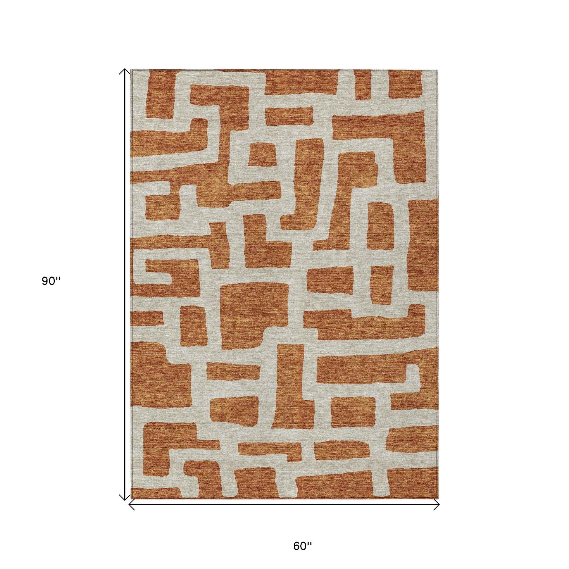 Tabselect Home Line 5' X 8' Terra Cotta And Gray Abstract Washable Indoor Outdoor Area Rug