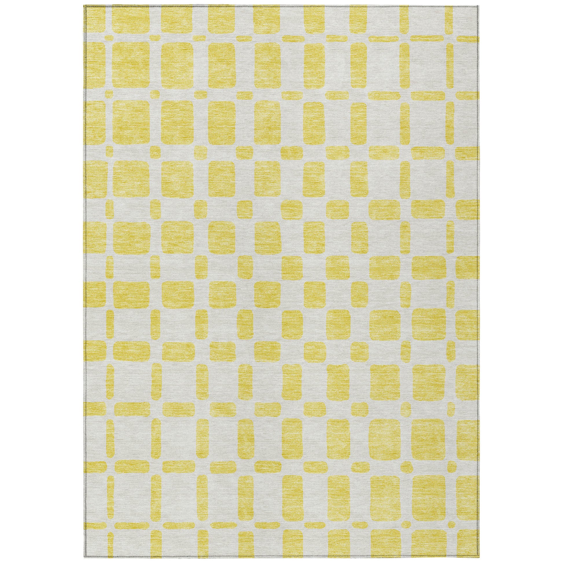Tabselect Home Line 5' X 8' Yellow And Gray Geometric Washable Indoor Outdoor Area Rug
