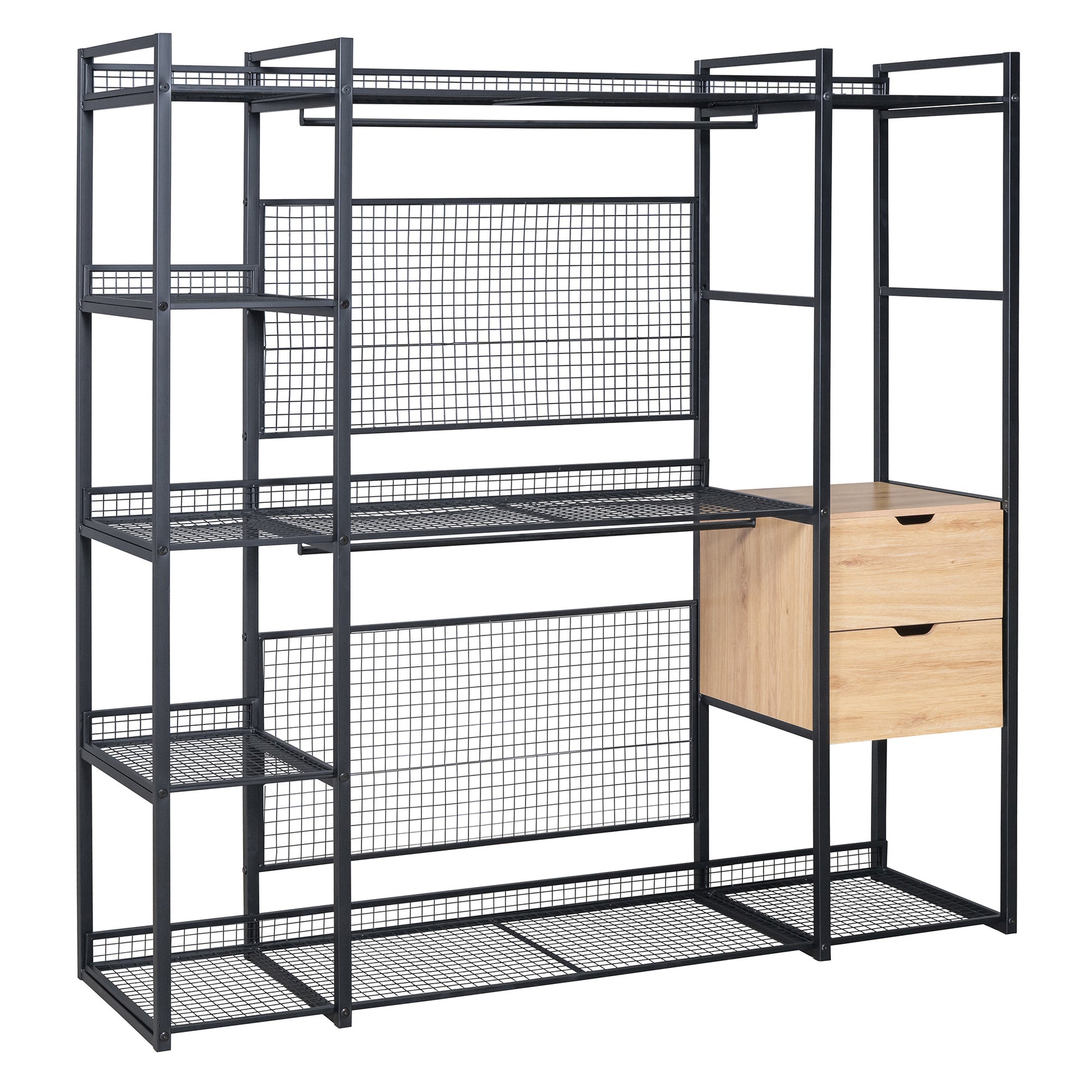 The 69-inch black metal closet system offers an innovative solution for your storage needs. Designed in a sleek rectangular shape, this organizer maximizes your closet space effectively. Crafted from durable metal, it promises longevity while adding a touch of industrial style to your interiors. The striking black color enhances its modern appeal, making it a perfect fit for contemporary homes. This versatile closet system allows you to easily organize clothes and accessories, providing both functionality and aesthetic charm. Its robust construction ensures it can handle various items, making it an essential addition to your home organization efforts. Enjoy the blend of practicality and style with this impressive closet organizer. 70-inch h x 69-inch w x 20-inch d.