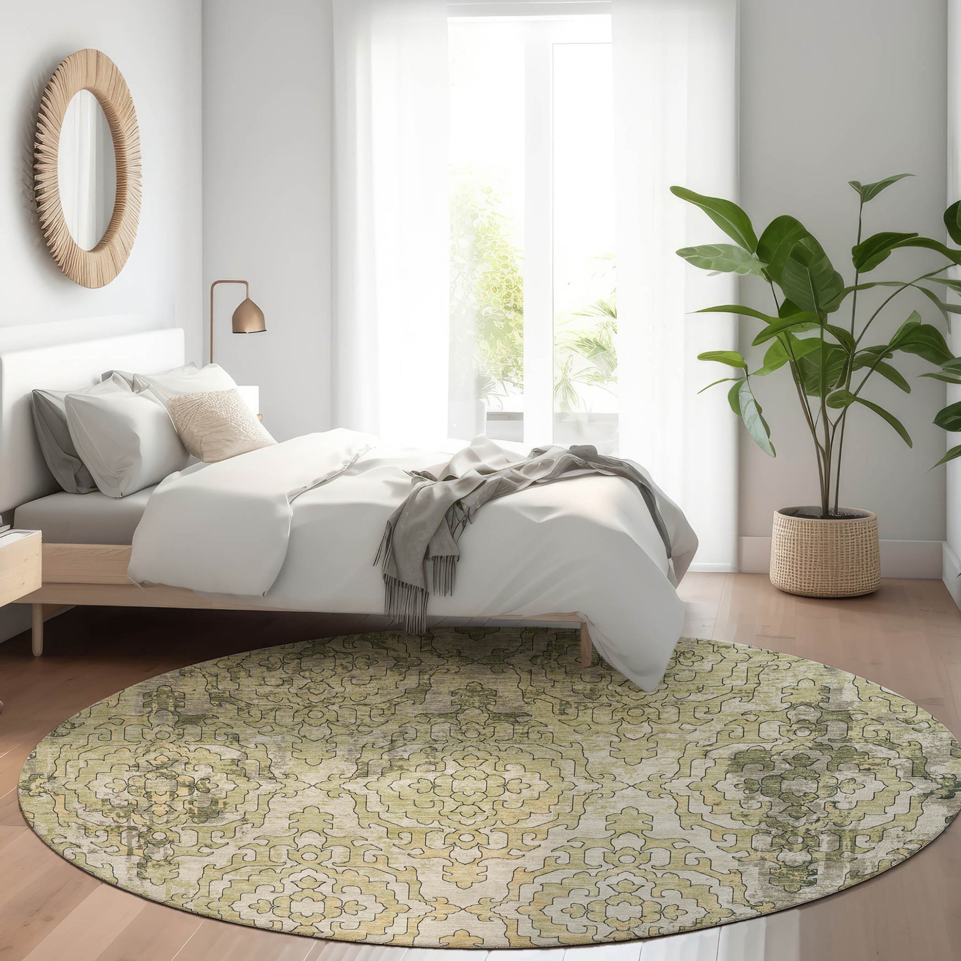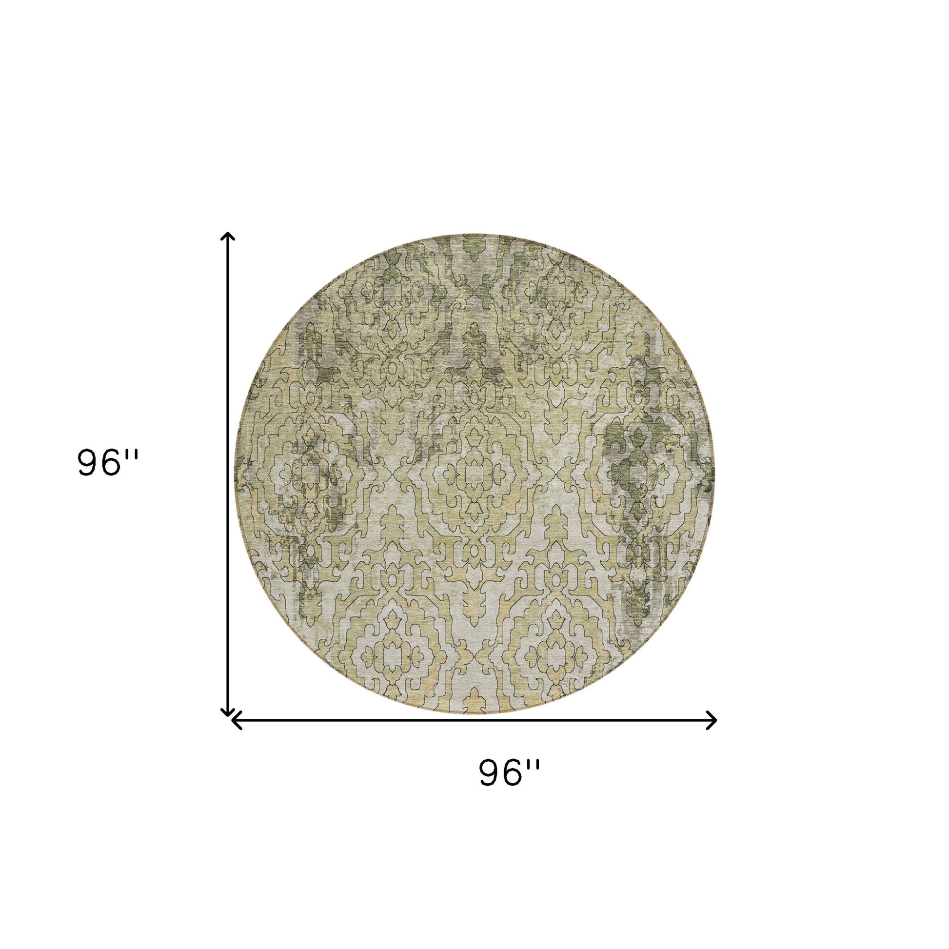 Tabselect Home Line 8' Artichoke Green And Beige Round Medallion Washable Indoor Outdoor Area Rug