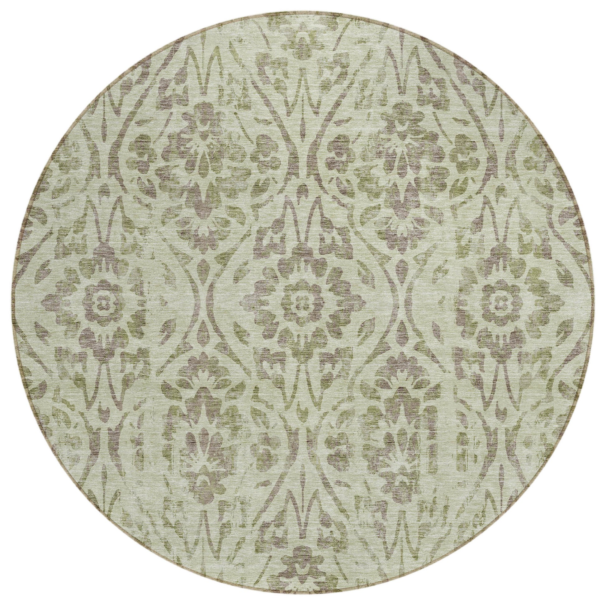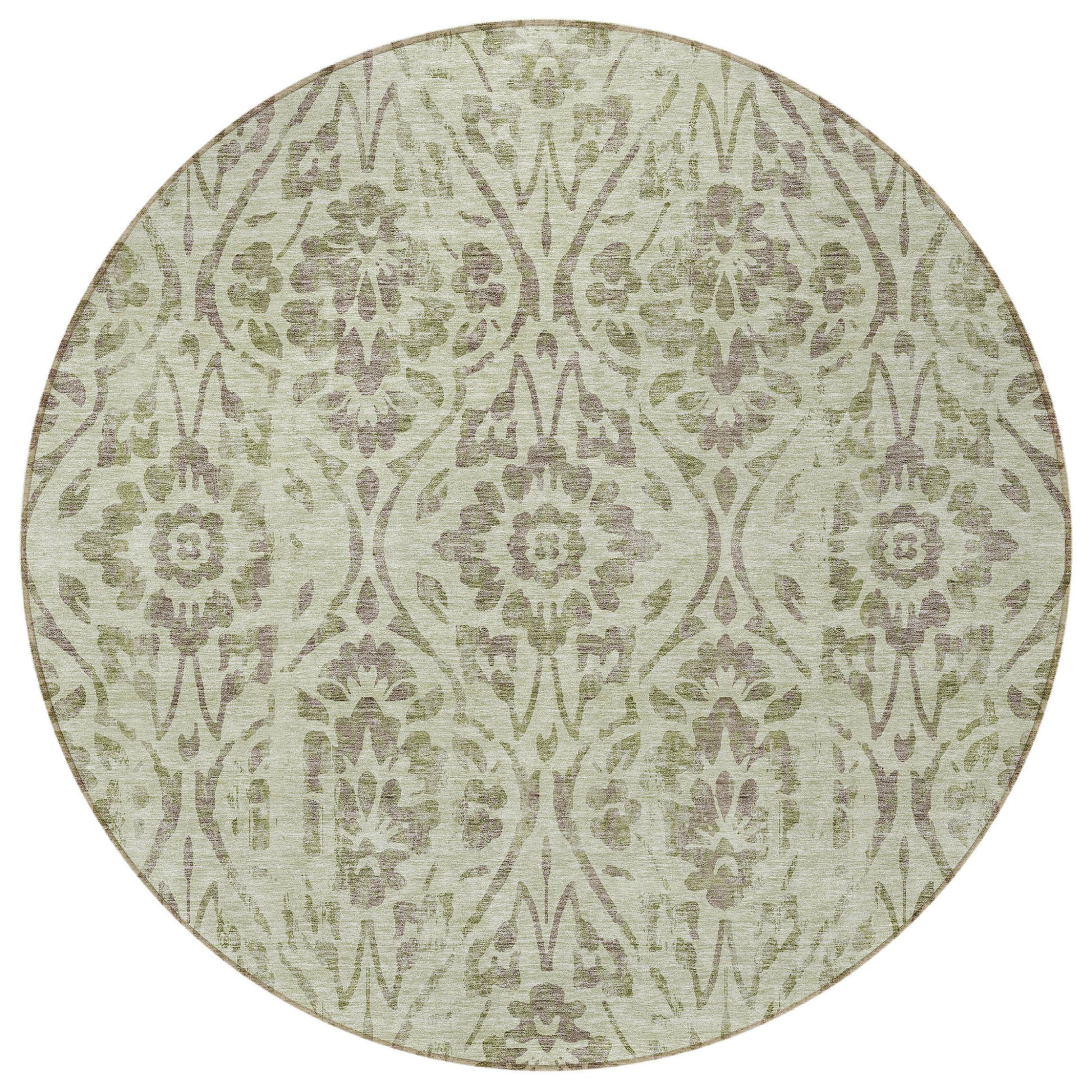 Tabselect Home Line 8' Artichoke Green And Brown Round Floral Washable Indoor Outdoor Area Rug