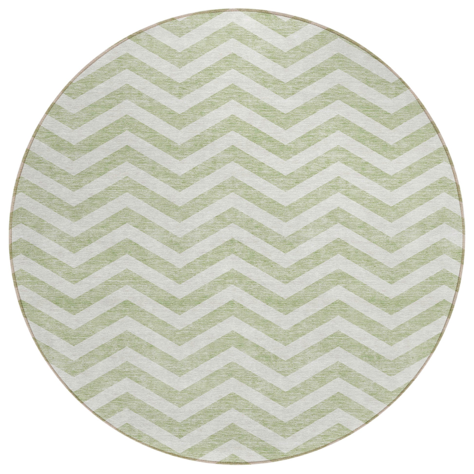 Tabselect Home Line 8' Artichoke Green And Ivory Round Chevron Washable Indoor Outdoor Area Rug
