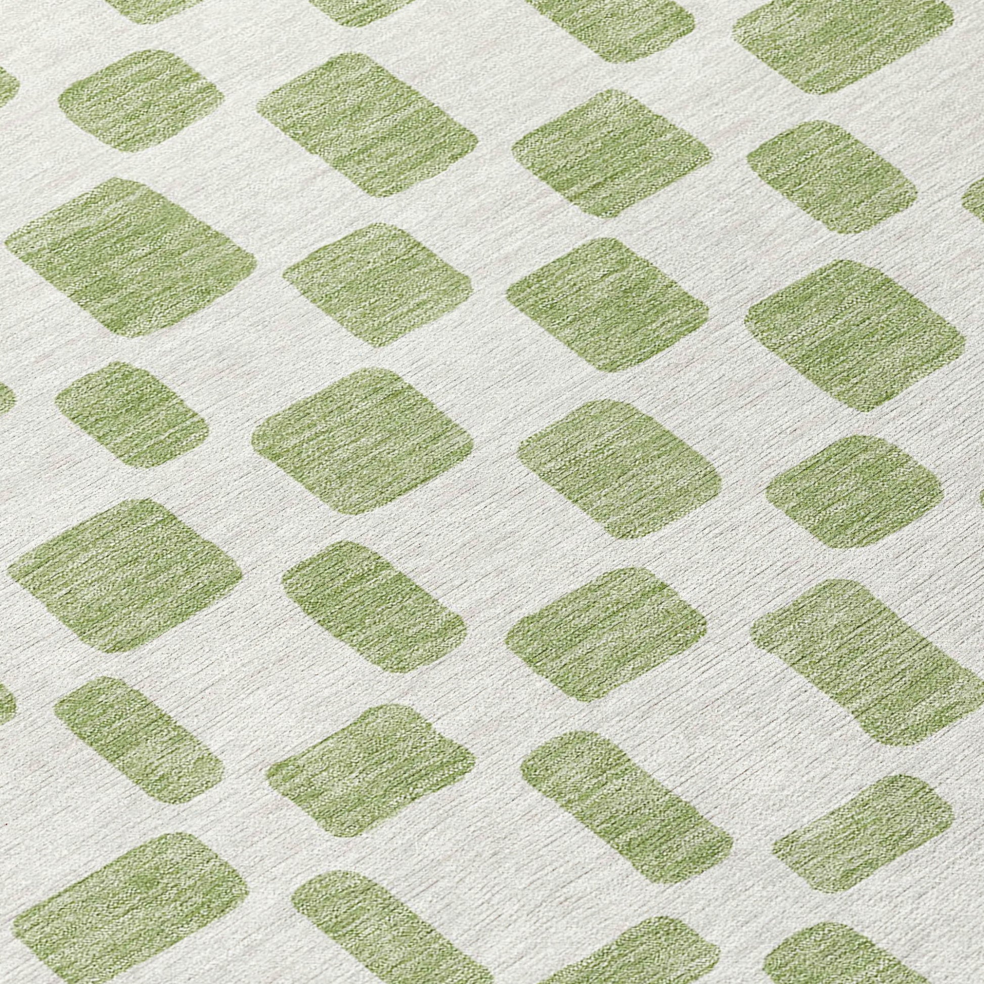 Add some artistry to your room with this 8-foot artichoke green and ivory round geometric washable indoor outdoor area rug. This geometric round shaped rug features a geometric pattern in artichoke green and ivory that combines a good looking print with a unique and updated shape. The mix of shape, color, and design gives this rug refreshing visual interest. Ideal for outdoor spaces or high traffic areas with kids and pets, this rug is made from heavy duty polyester that is stain resistant to help repel water, dirt, and stains. Makes a great way to dress up your patio, porch, or poolside, but also works well as a durable and easy to maintain option in the kitchen, family room, or mudroom. 96-inch h x 96-inch w x 0.19-inch d.