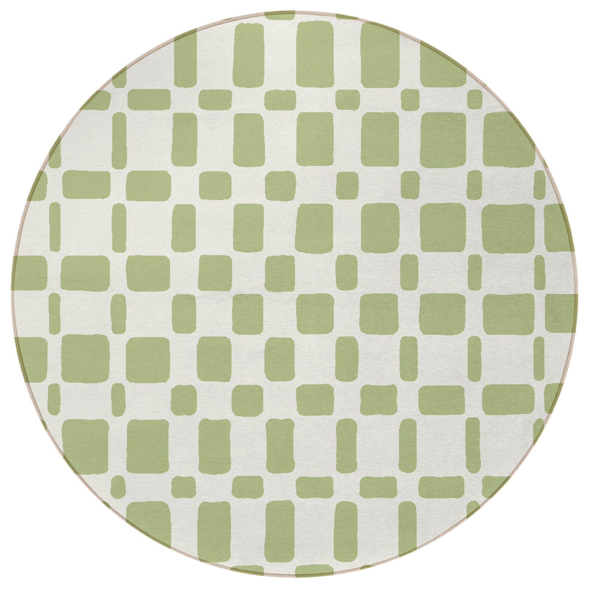 Tabselect Home Line 8' Artichoke Green And Ivory Round Geometric Washable Indoor Outdoor Area Rug