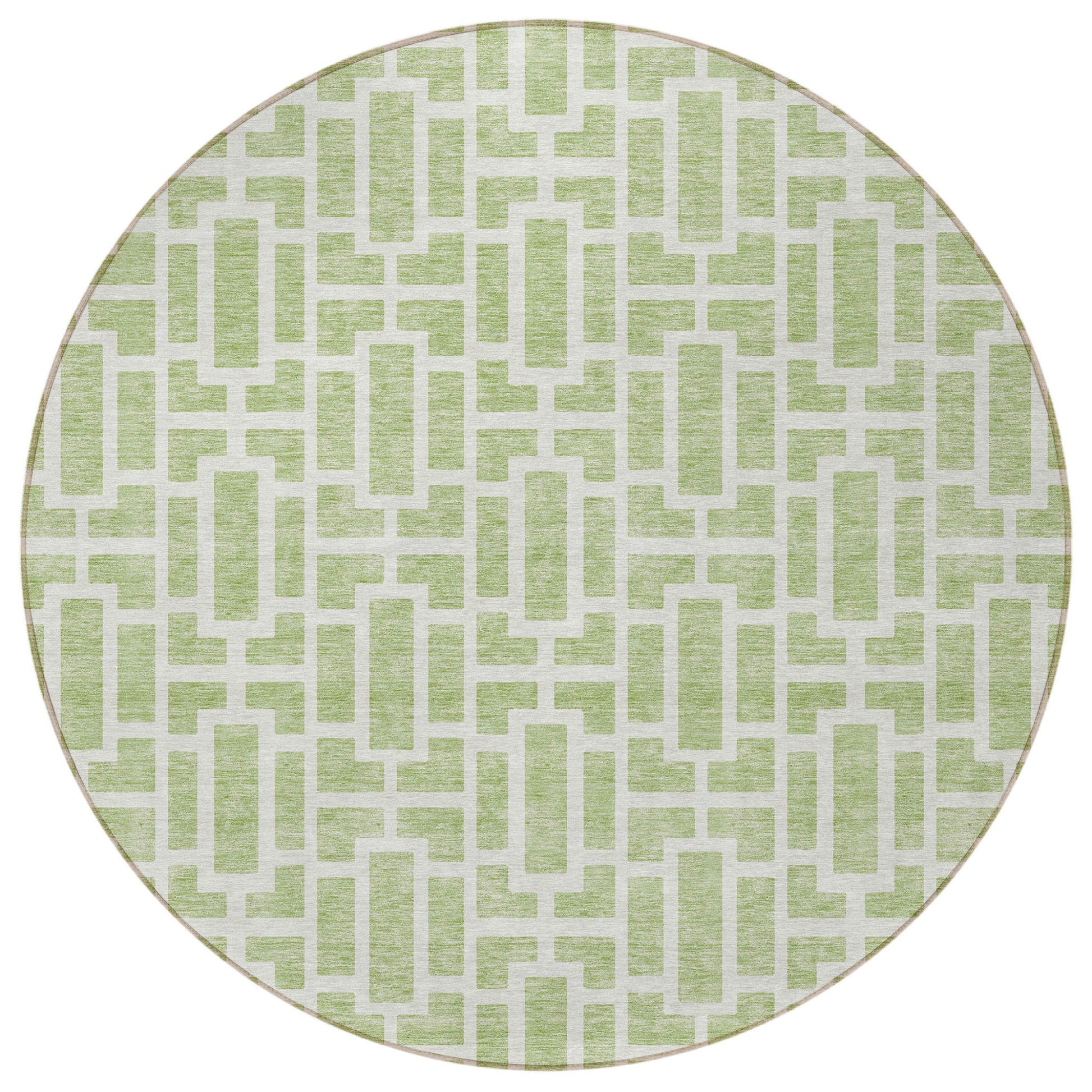 Tabselect Home Line 8' Artichoke Green And Ivory Round Geometric Washable Indoor Outdoor Area Rug