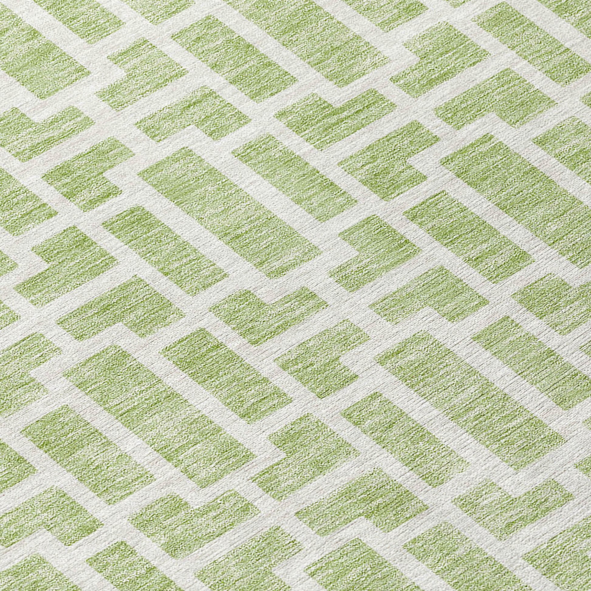 Add some artistry to your room with this 8-foot artichoke green and ivory round geometric washable indoor outdoor area rug. This geometric round shaped rug features a geometric pattern in artichoke green and ivory that combines a good looking print with a unique and updated shape. The mix of shape, color, and design gives this rug refreshing visual interest. Ideal for outdoor spaces or high traffic areas with kids and pets, this rug is made from heavy duty polyester that is stain resistant to help repel water, dirt, and stains. Makes a great way to dress up your patio, porch, or poolside, but also works well as a durable and easy to maintain option in the kitchen, family room, or mudroom. 96-inch h x 96-inch w x 0.19-inch d.