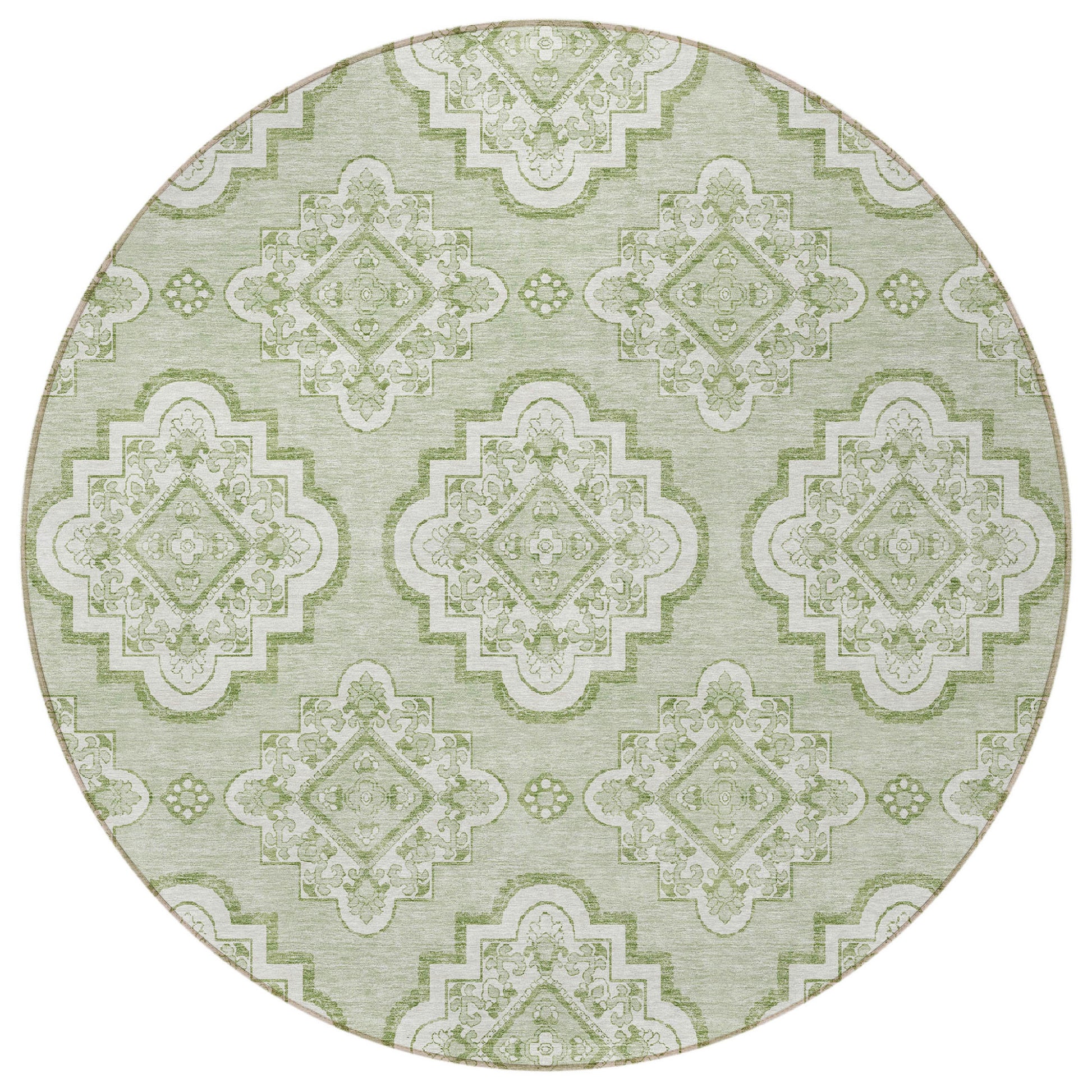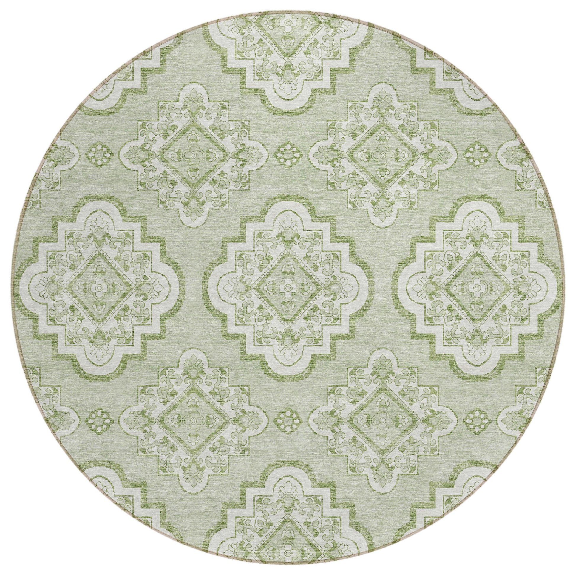 Tabselect Home Line 8' Artichoke Green And Ivory Round Medallion Washable Indoor Outdoor Area Rug