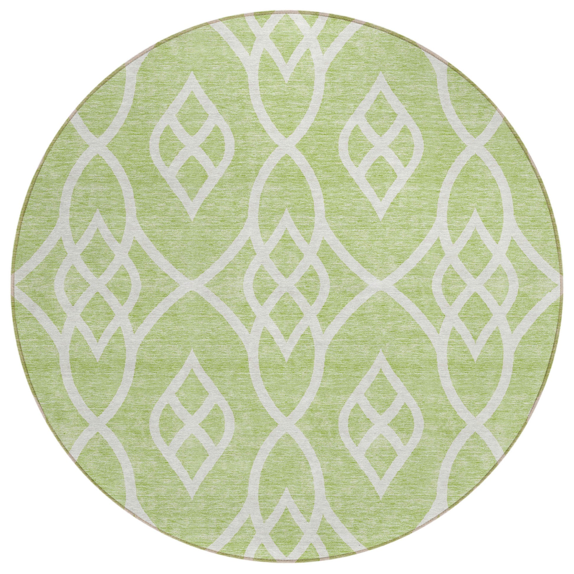 Tabselect Home Line 8' Artichoke Green And Ivory Round Trellis Washable Indoor Outdoor Area Rug