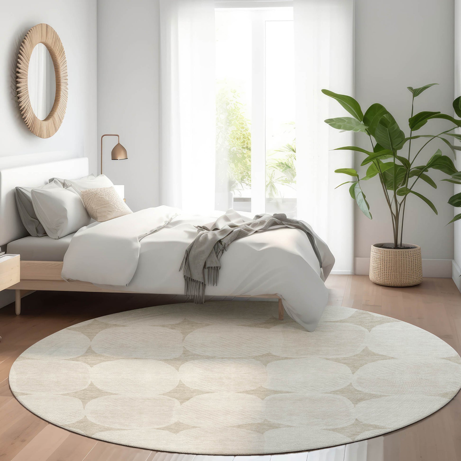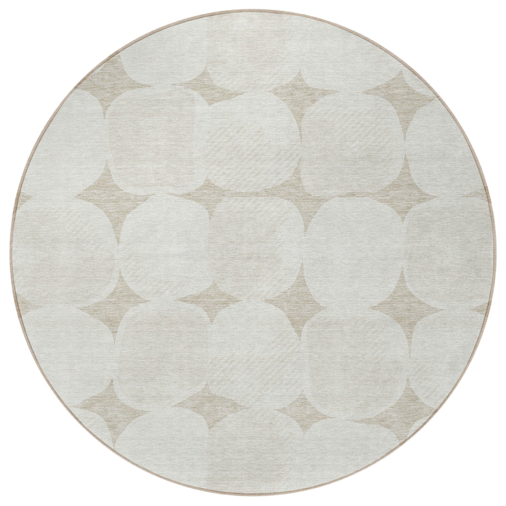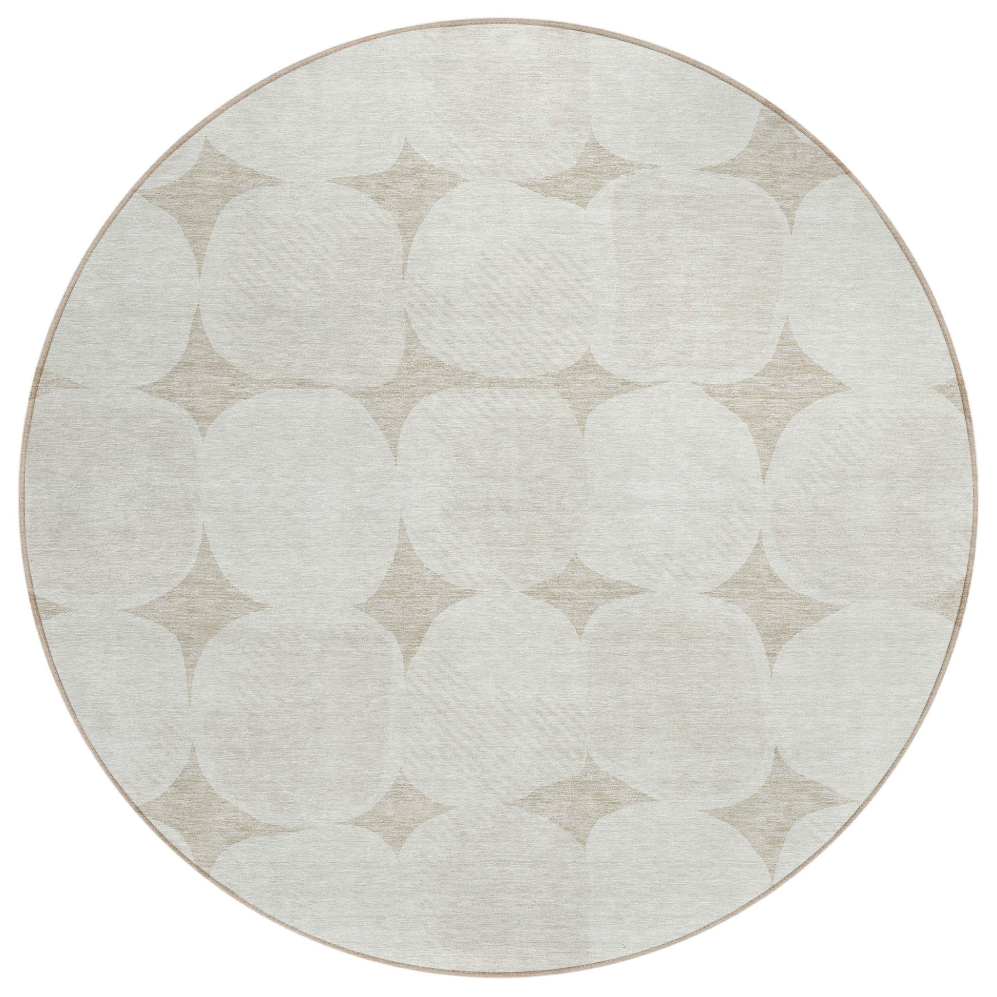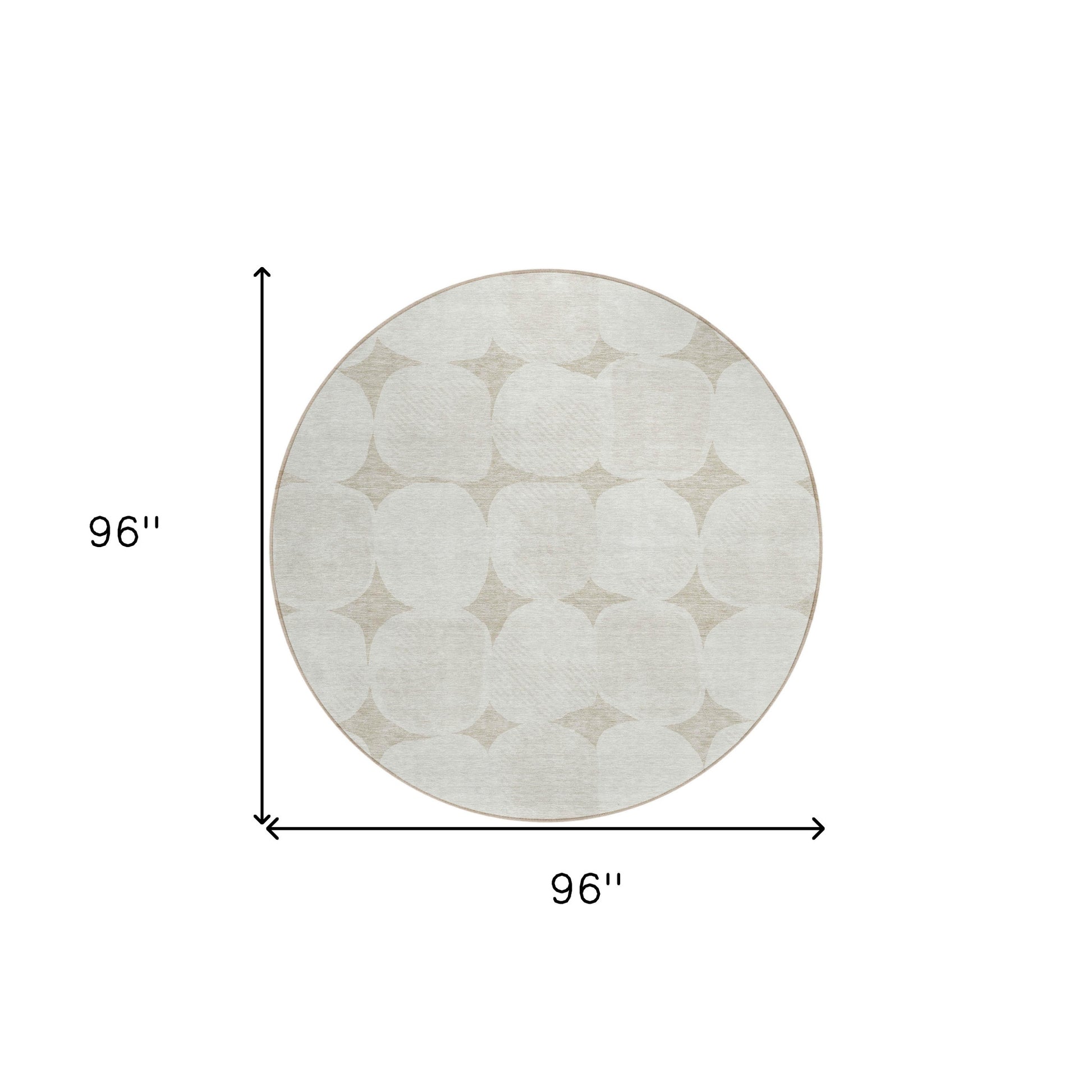 Tabselect Home Line 8' Beige And Brown Round Abstract Washable Indoor Outdoor Area Rug