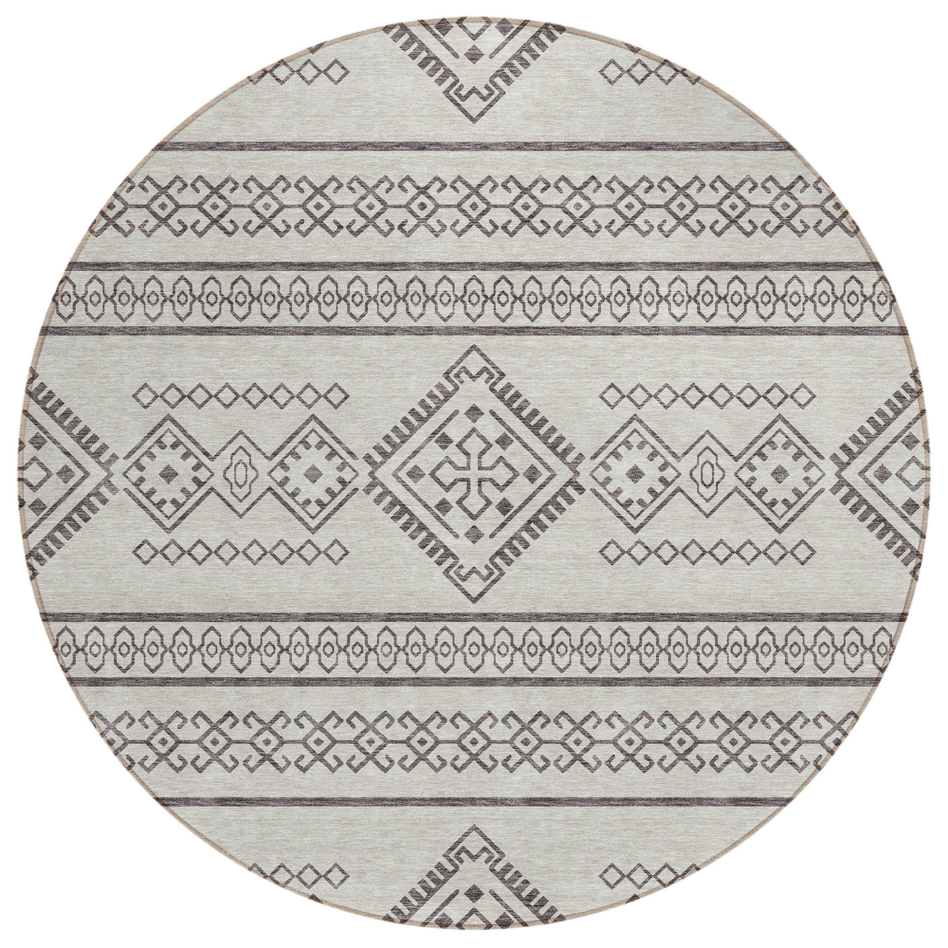 Tabselect Home Line 8' Beige And Brown Round Southwestern Washable Indoor Outdoor Area Rug