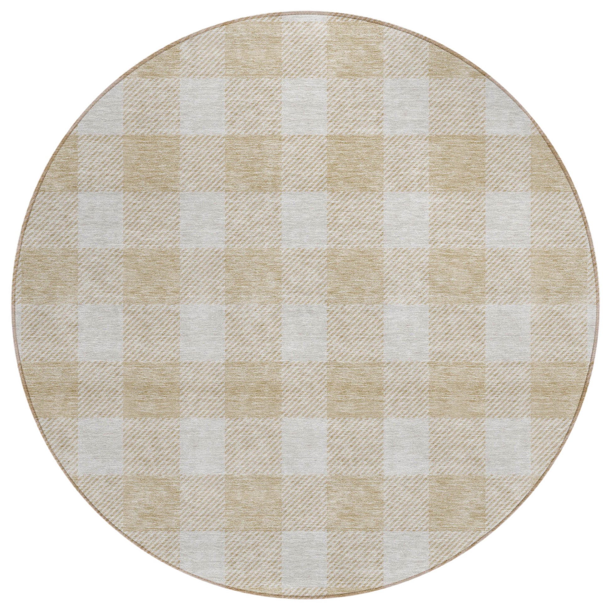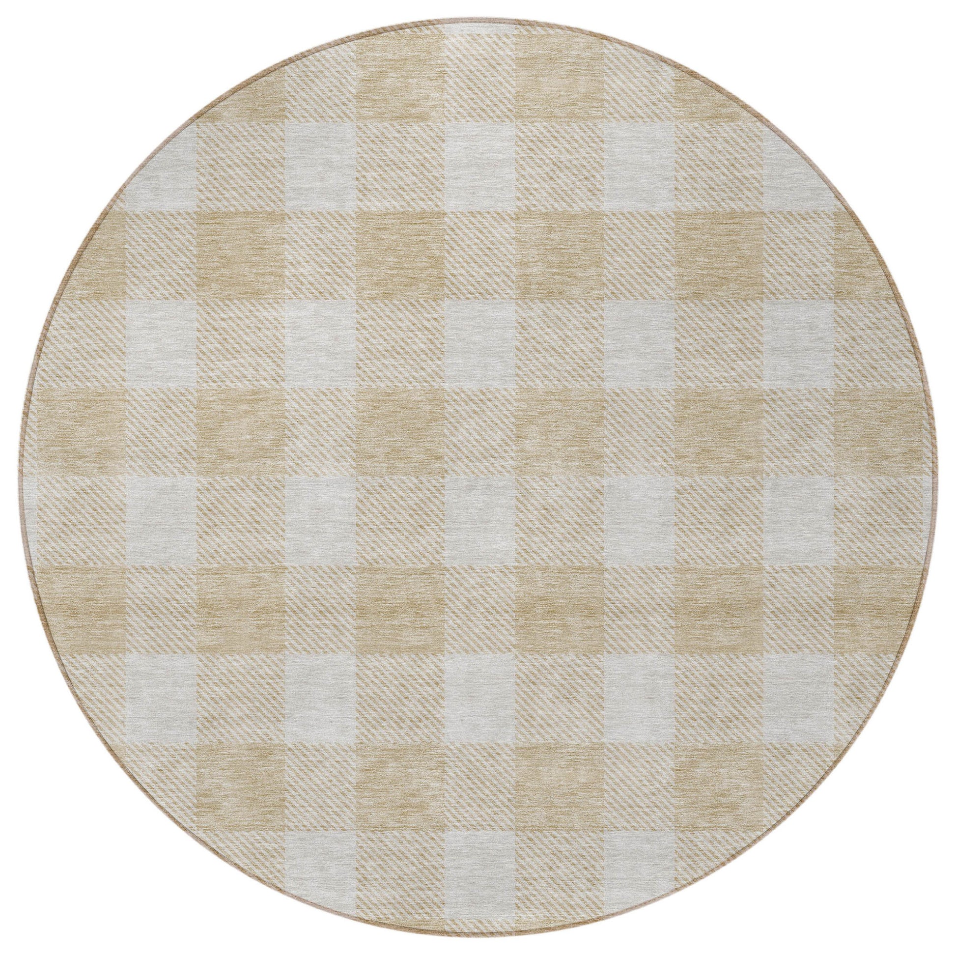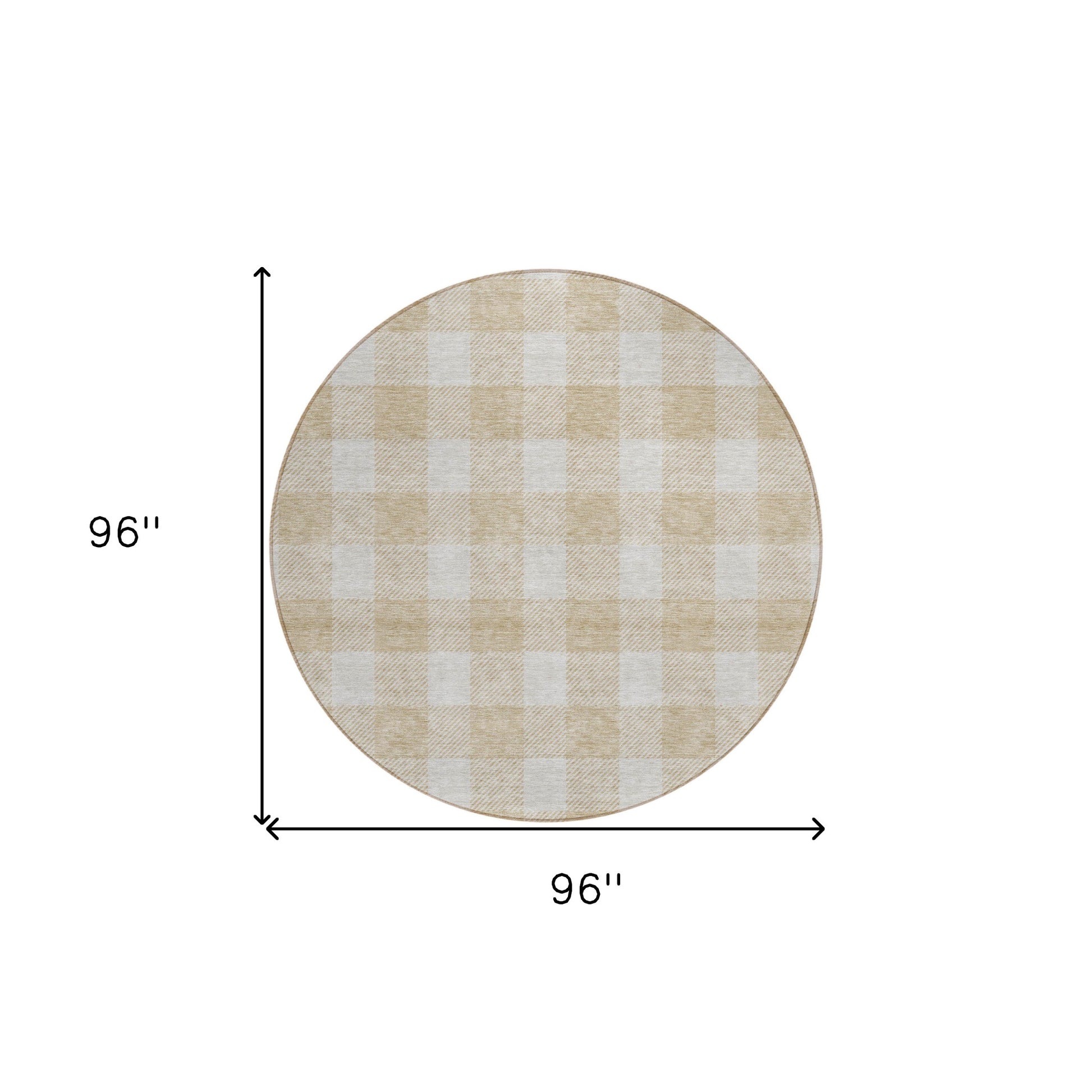Tabselect Home Line 8' Beige And Gray Round Plaid Washable Indoor Outdoor Area Rug