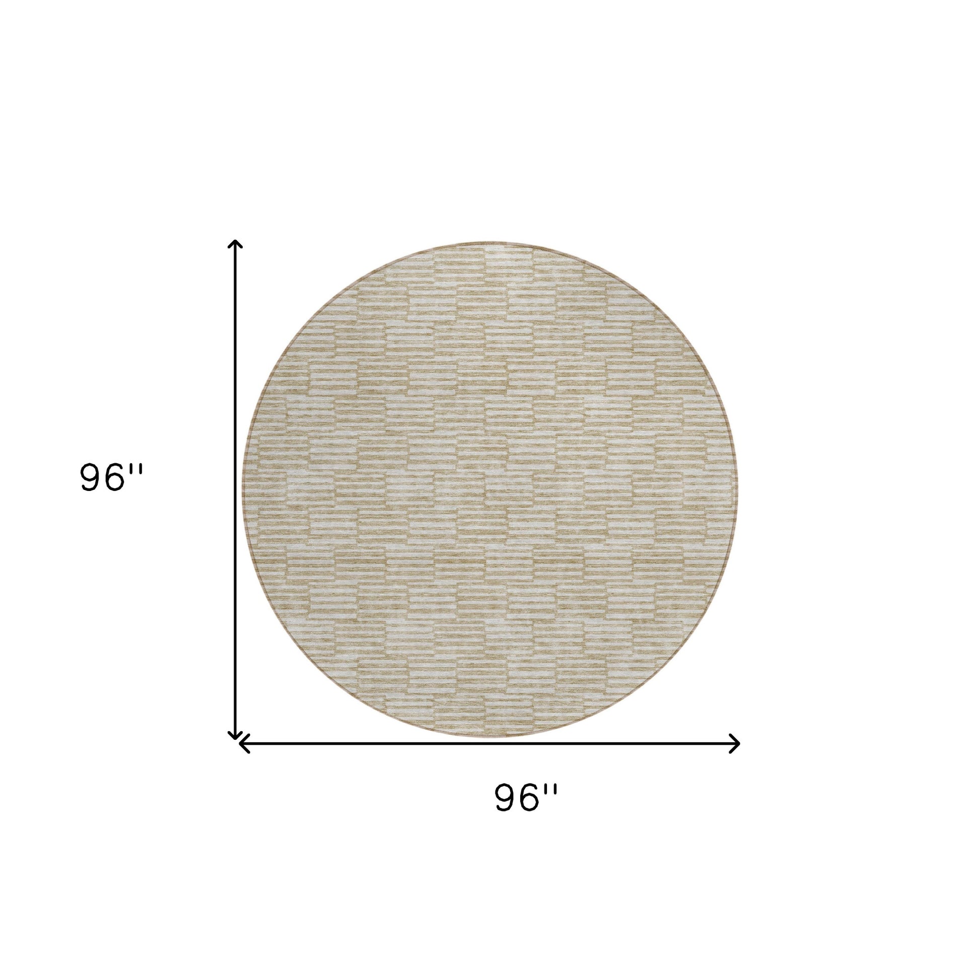 Tabselect Home Line 8' Beige And Ivory Round Geometric Washable Indoor Outdoor Area Rug