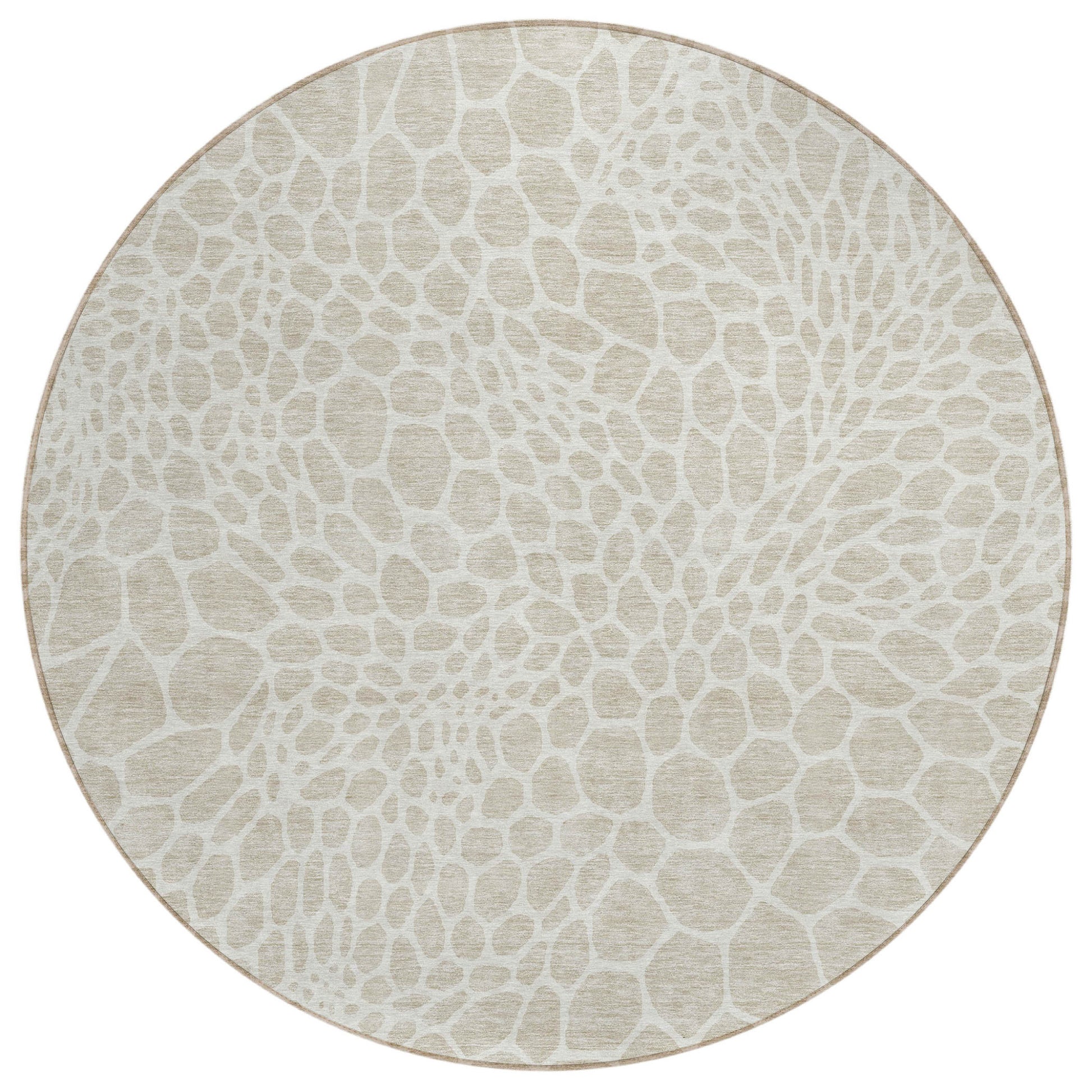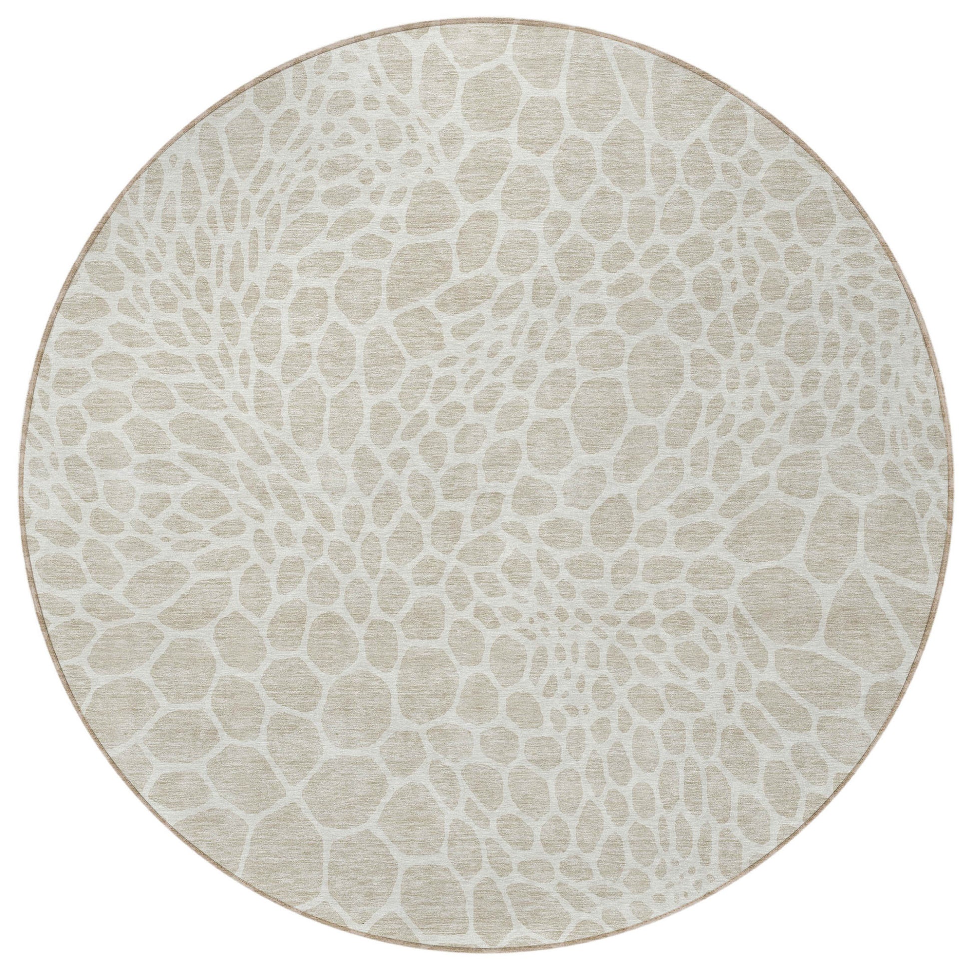 Tabselect Home Line 8' Beige And Ivory Round Geometric Washable Indoor Outdoor Area Rug