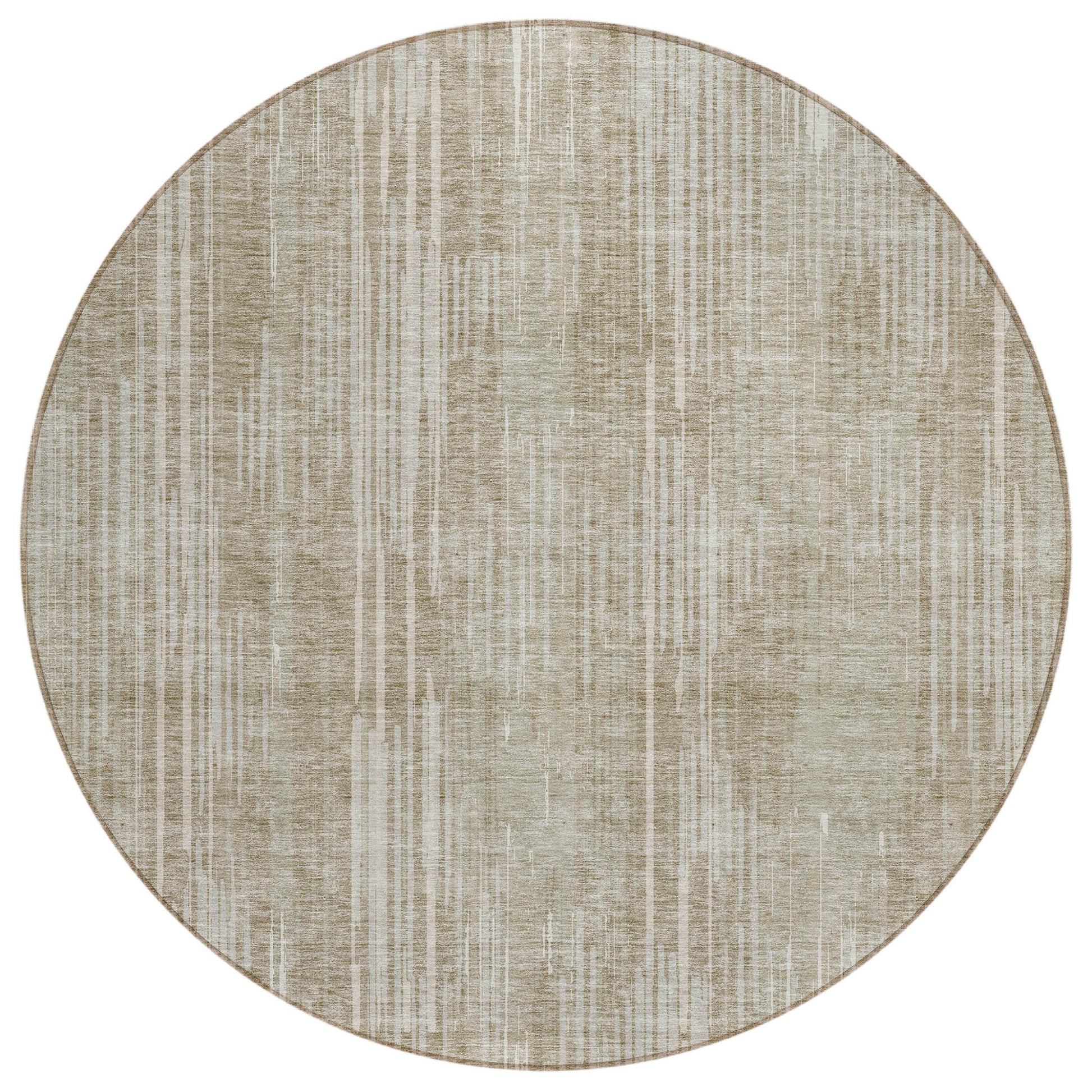Tabselect Home Line 8' Beige And Ivory Round Striped Washable Indoor Outdoor Area Rug