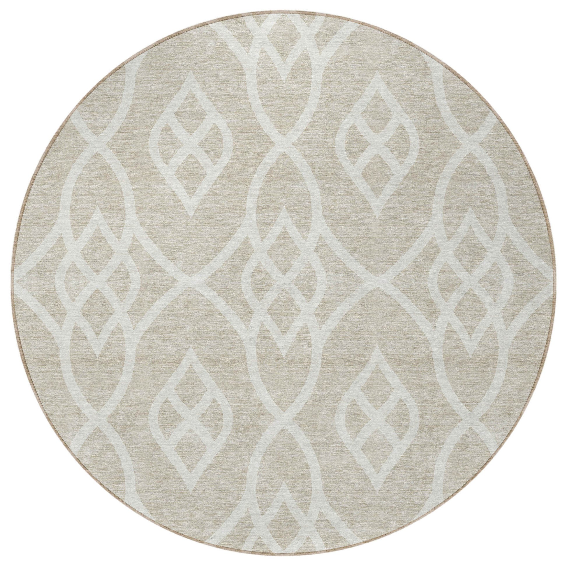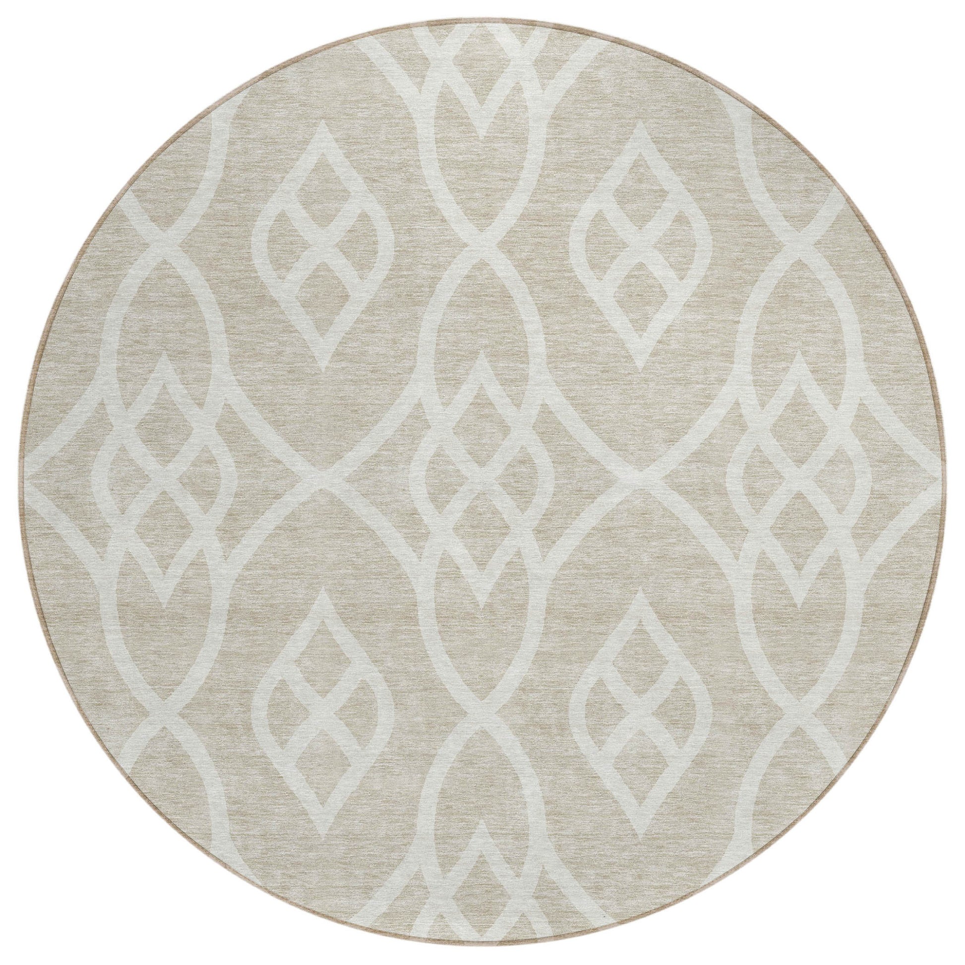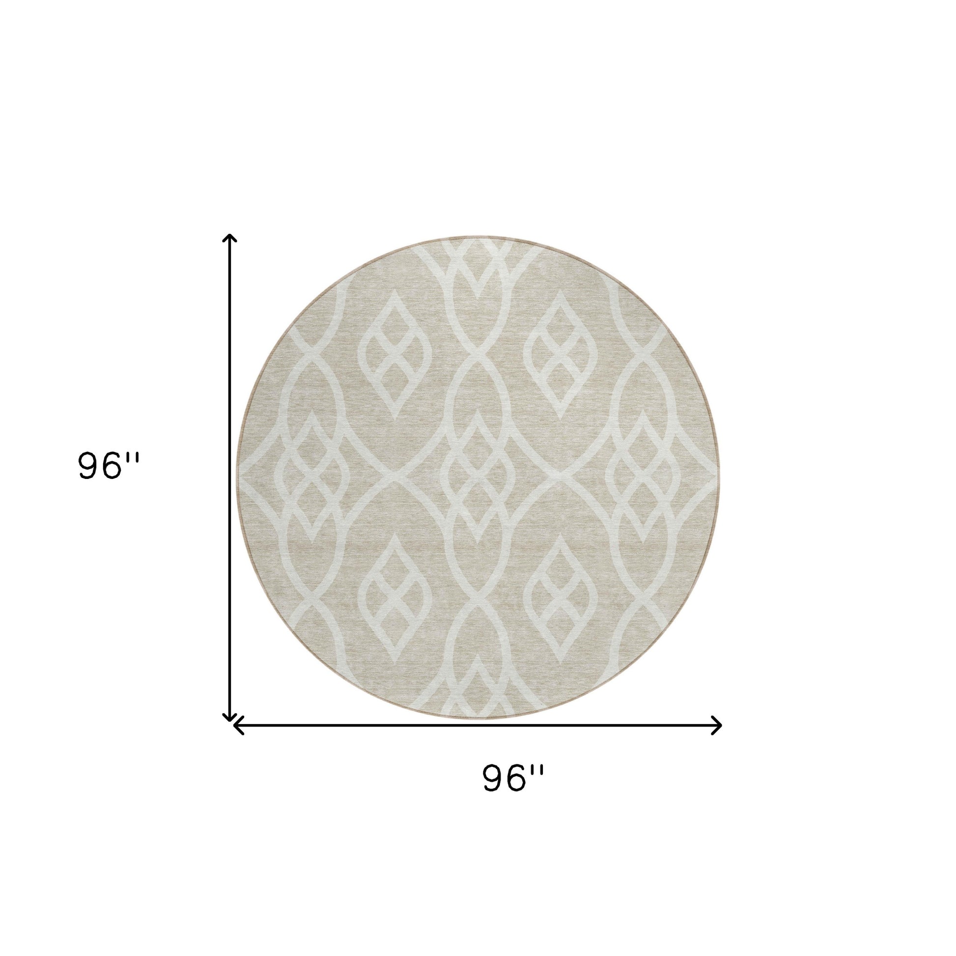 Tabselect Home Line 8' Beige And Ivory Round Trellis Washable Indoor Outdoor Area Rug