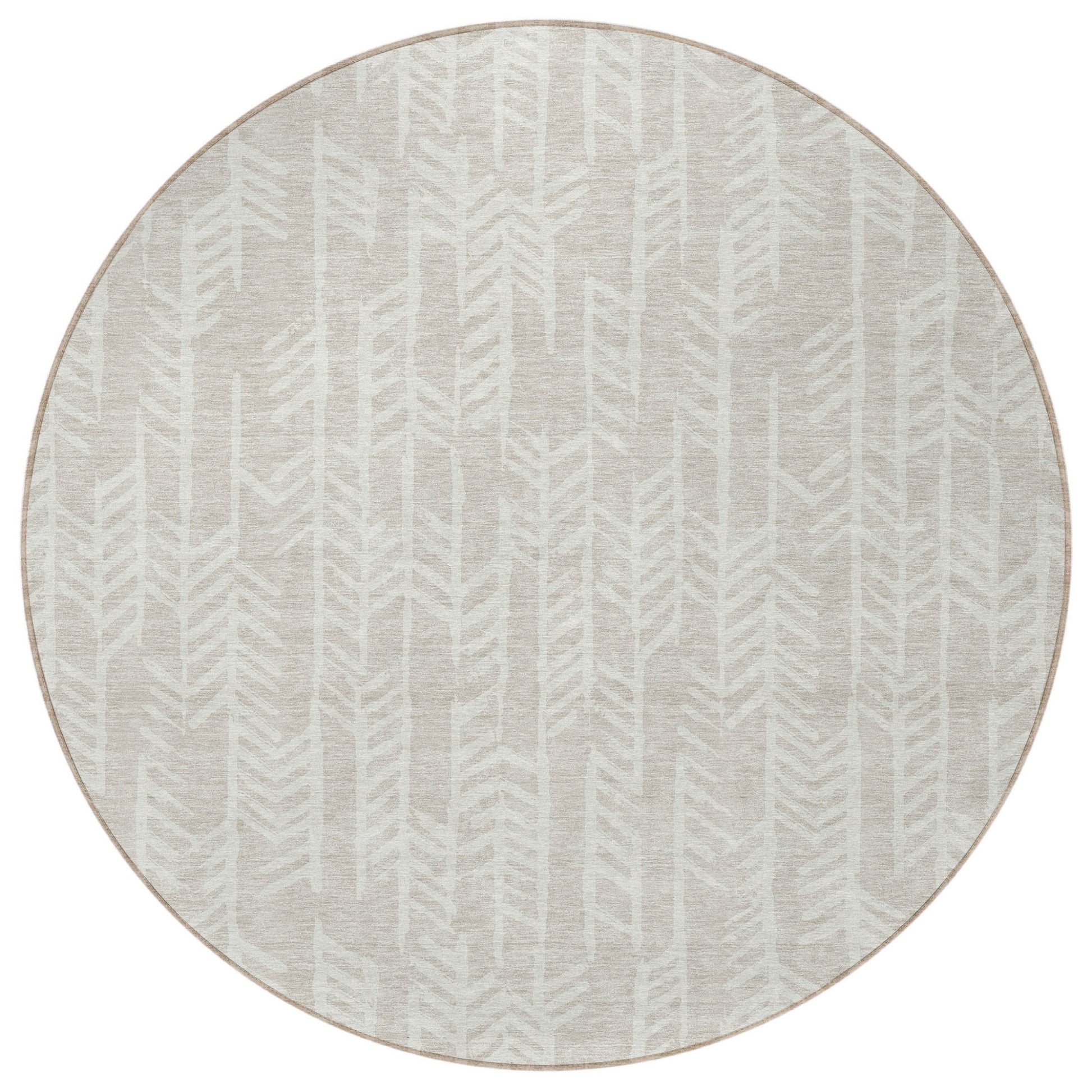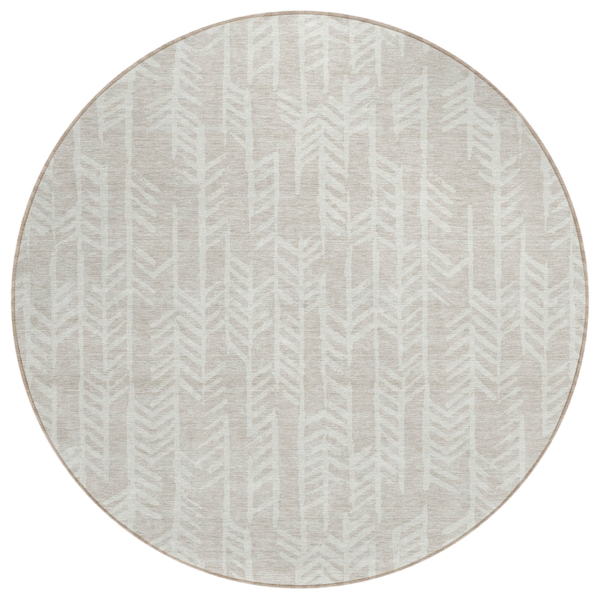 Tabselect Home Line 8' Beige And Ivory Round Tribal Washable Indoor Outdoor Area Rug