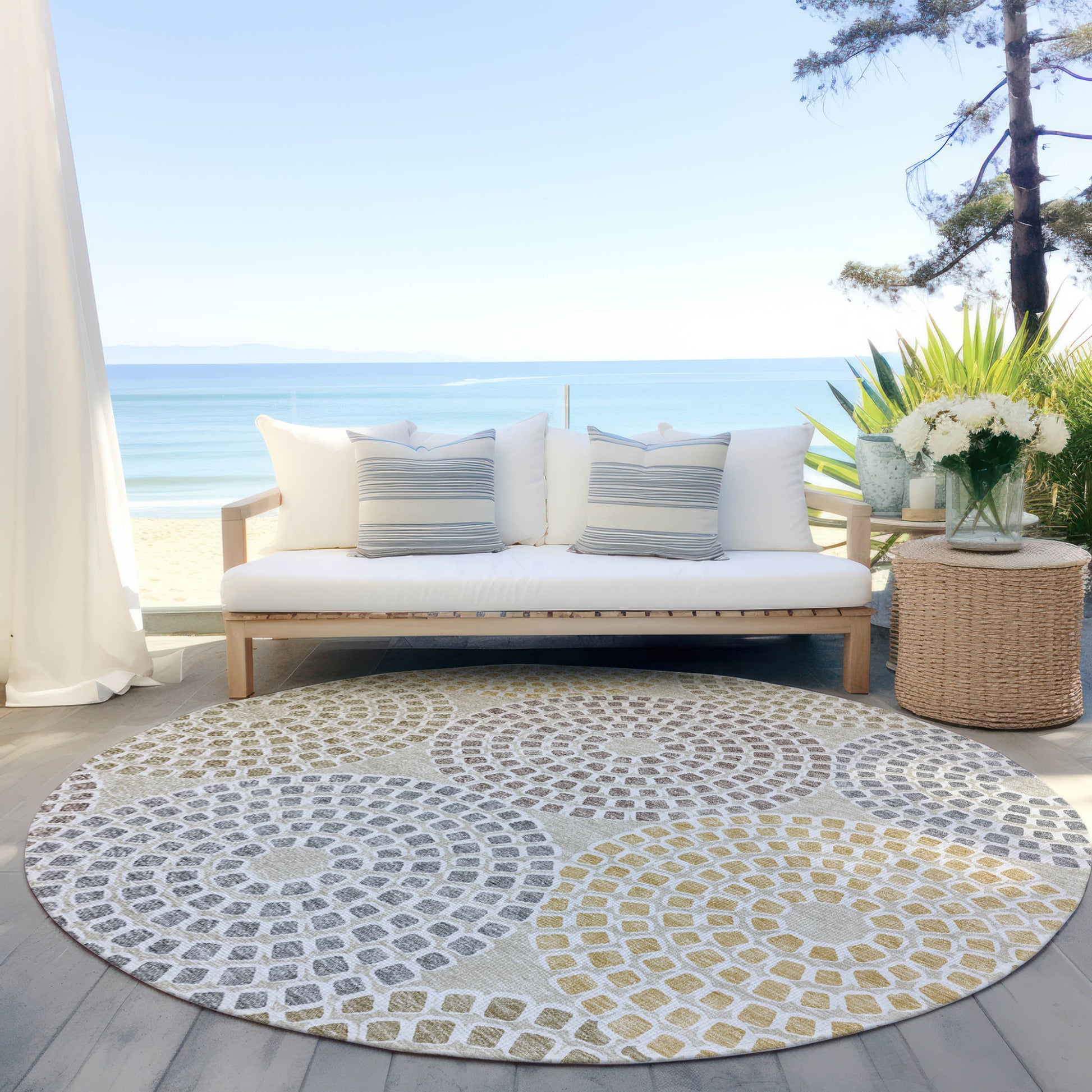 Tabselect Home Line 8' Beige Brown And Gray Round Geometric Washable Indoor Outdoor Area Rug