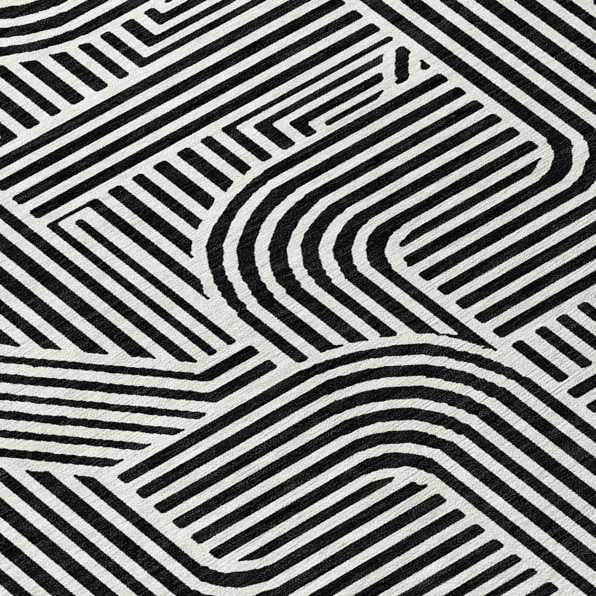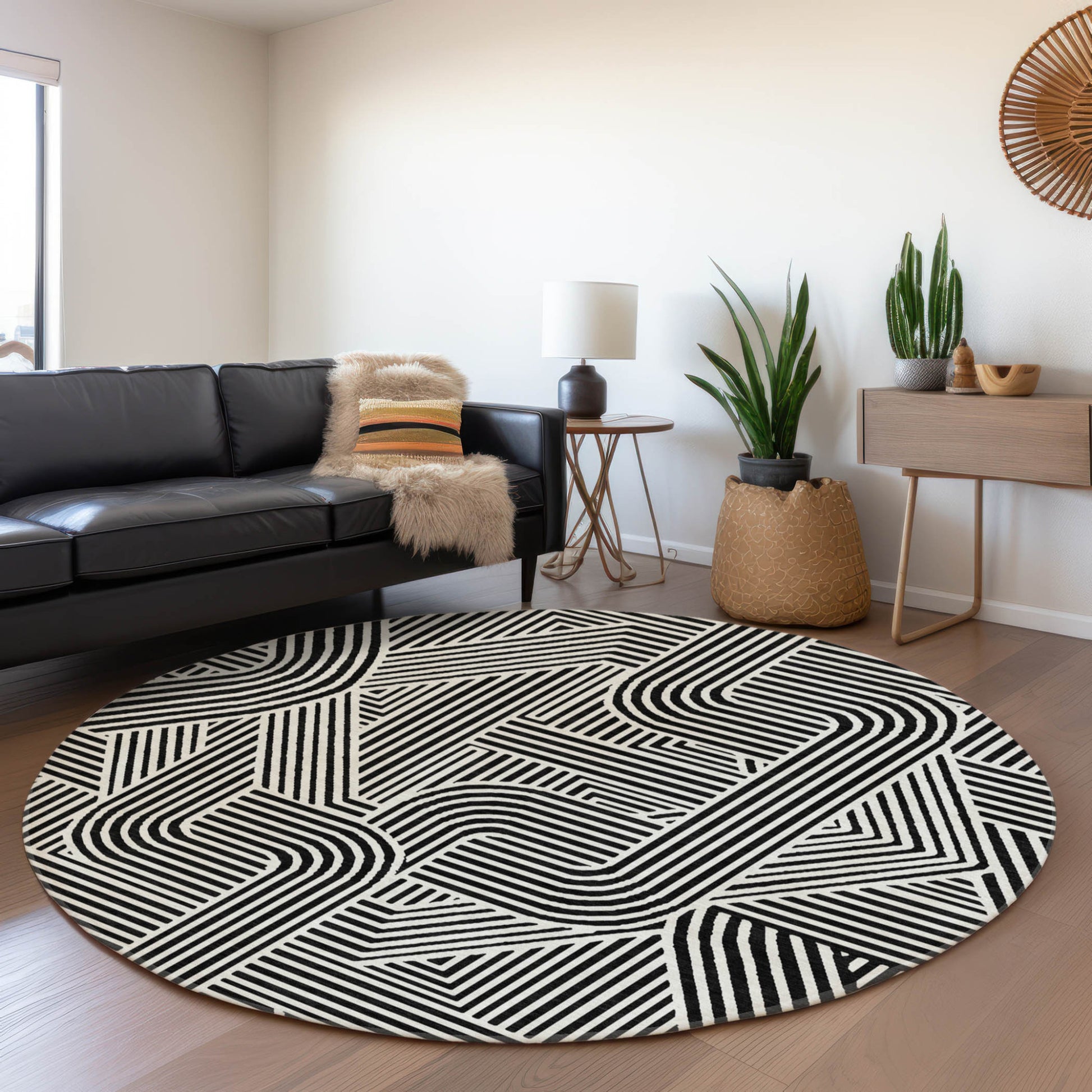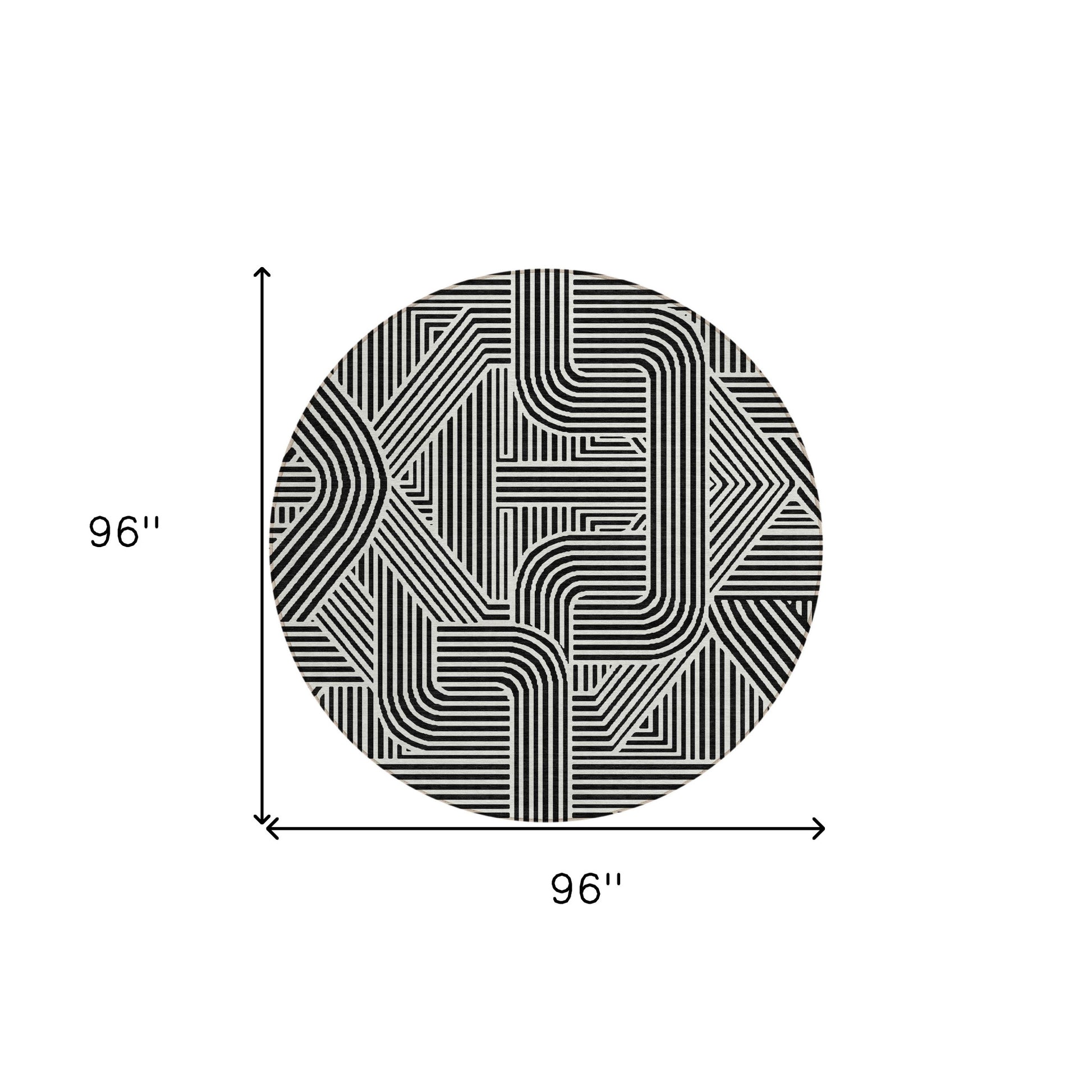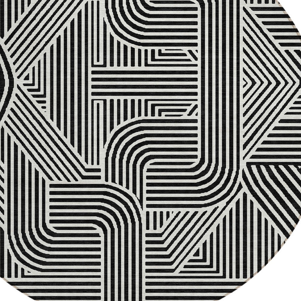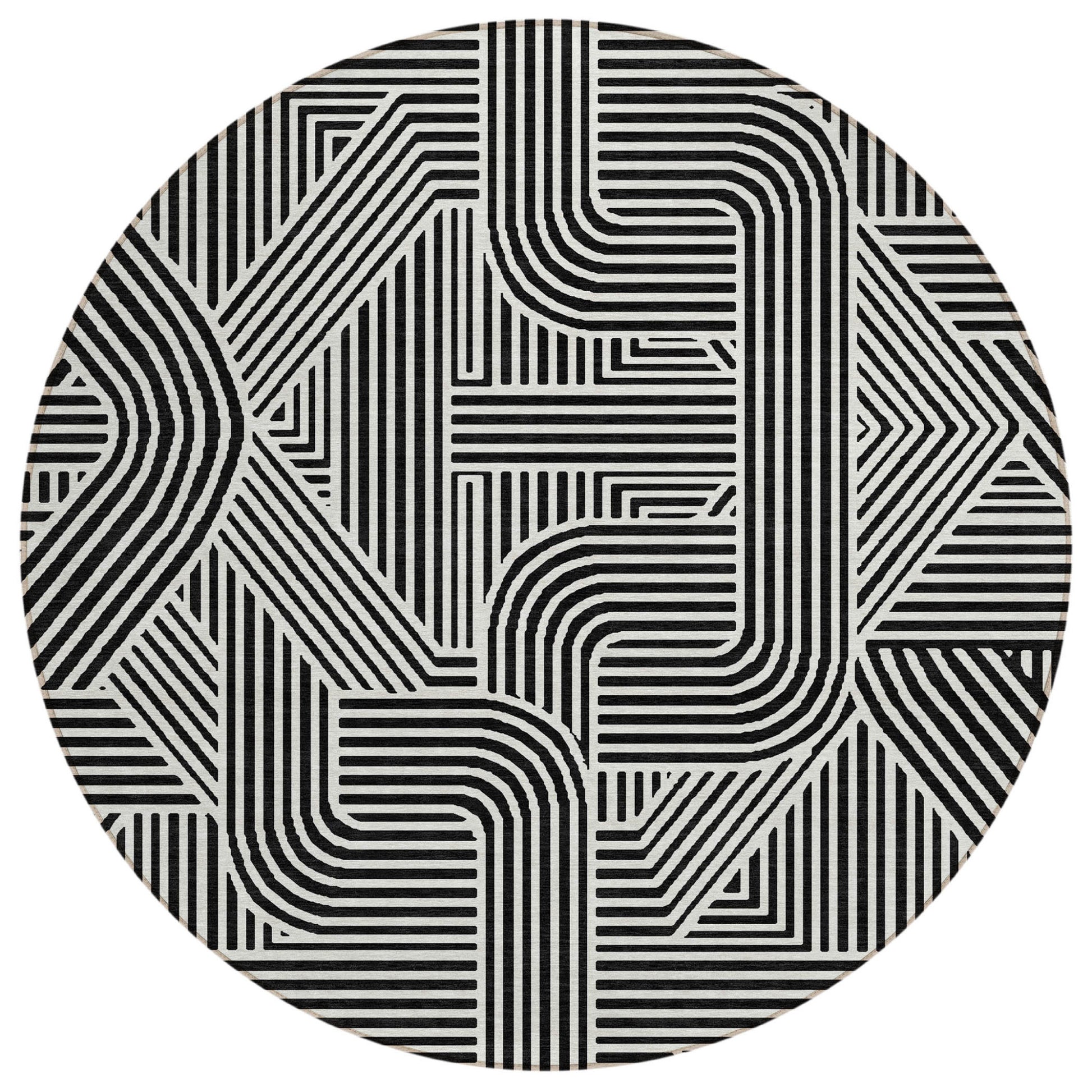 Tabselect Home Line 8' Black And Ivory Round Abstract Washable Indoor Outdoor Area Rug