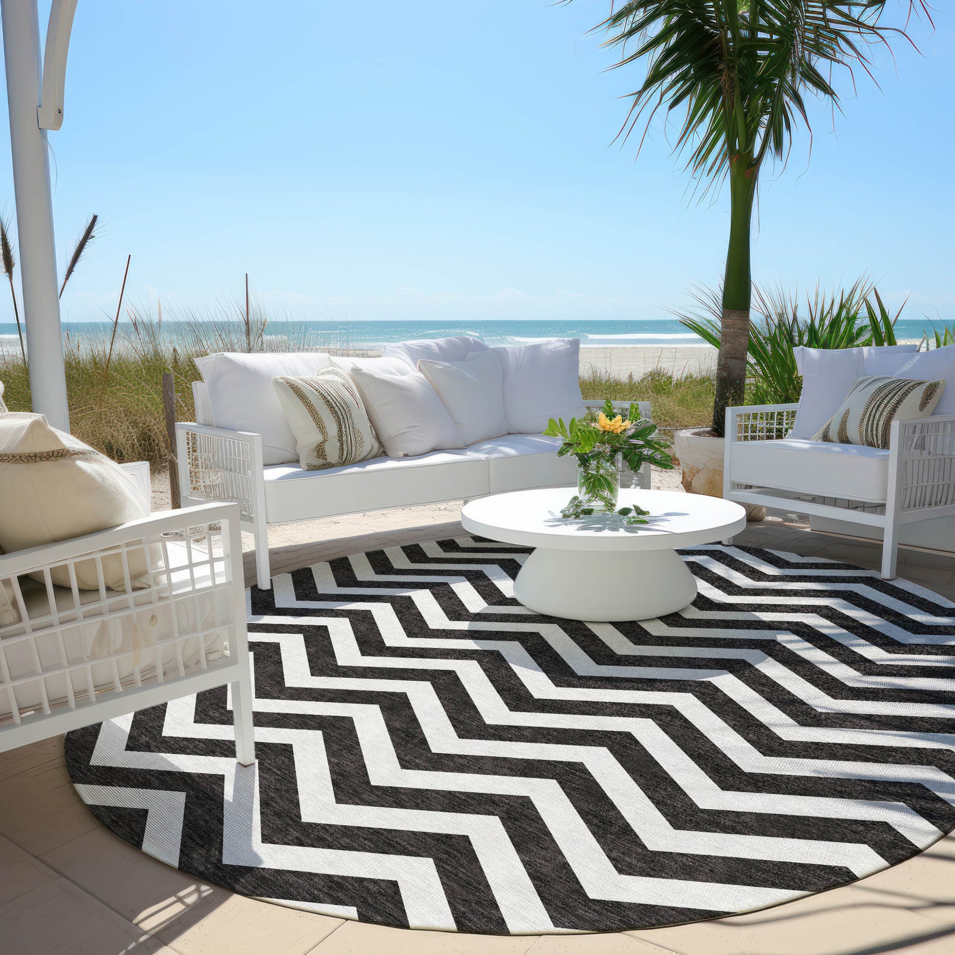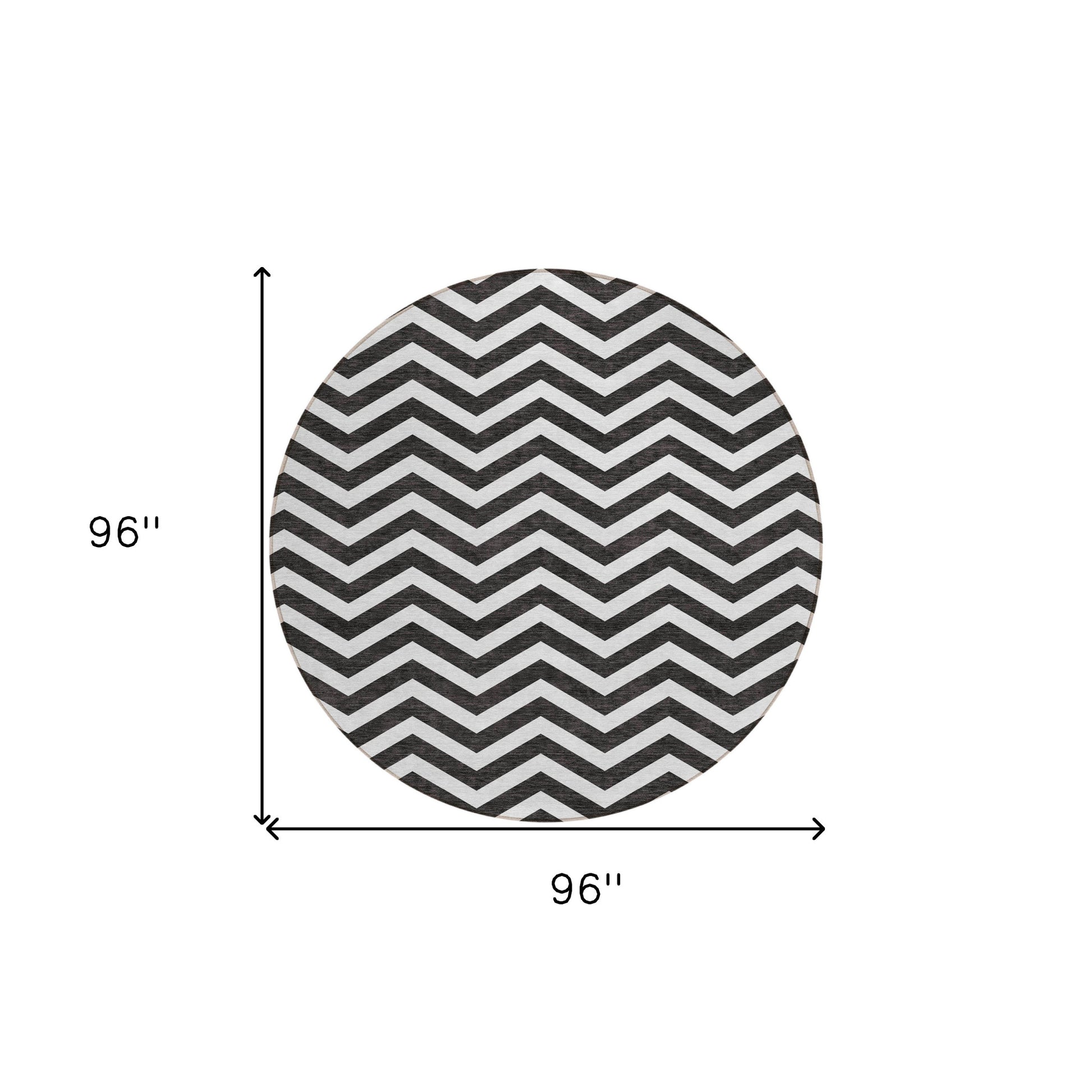 Tabselect Home Line 8' Black And Ivory Round Chevron Washable Indoor Outdoor Area Rug
